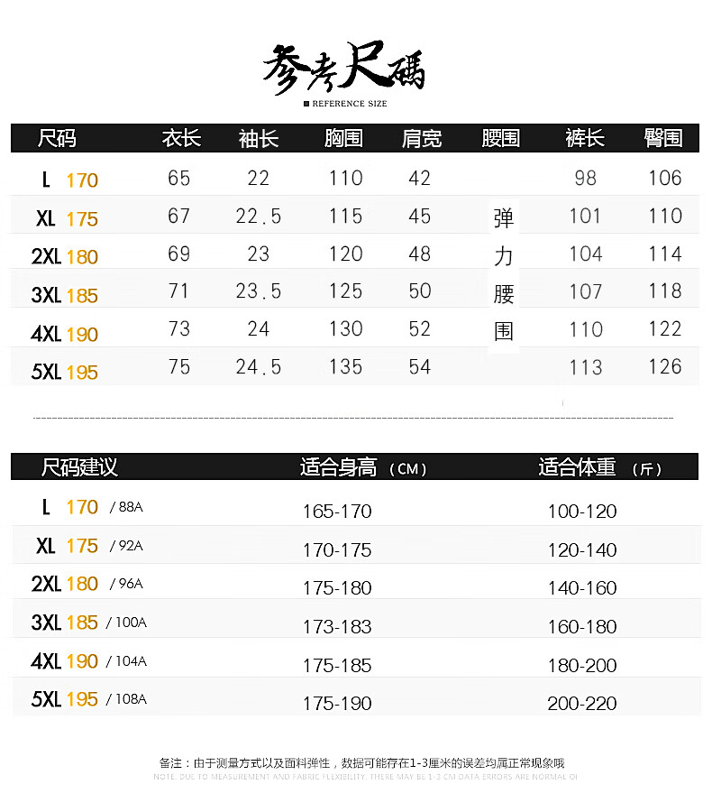 China (cm) 165 / 88-90 170 / 96-98 175 / 108-110 180 / 118-122 185 / 126-130