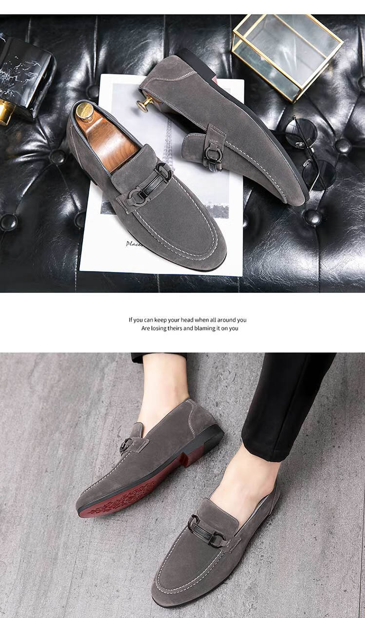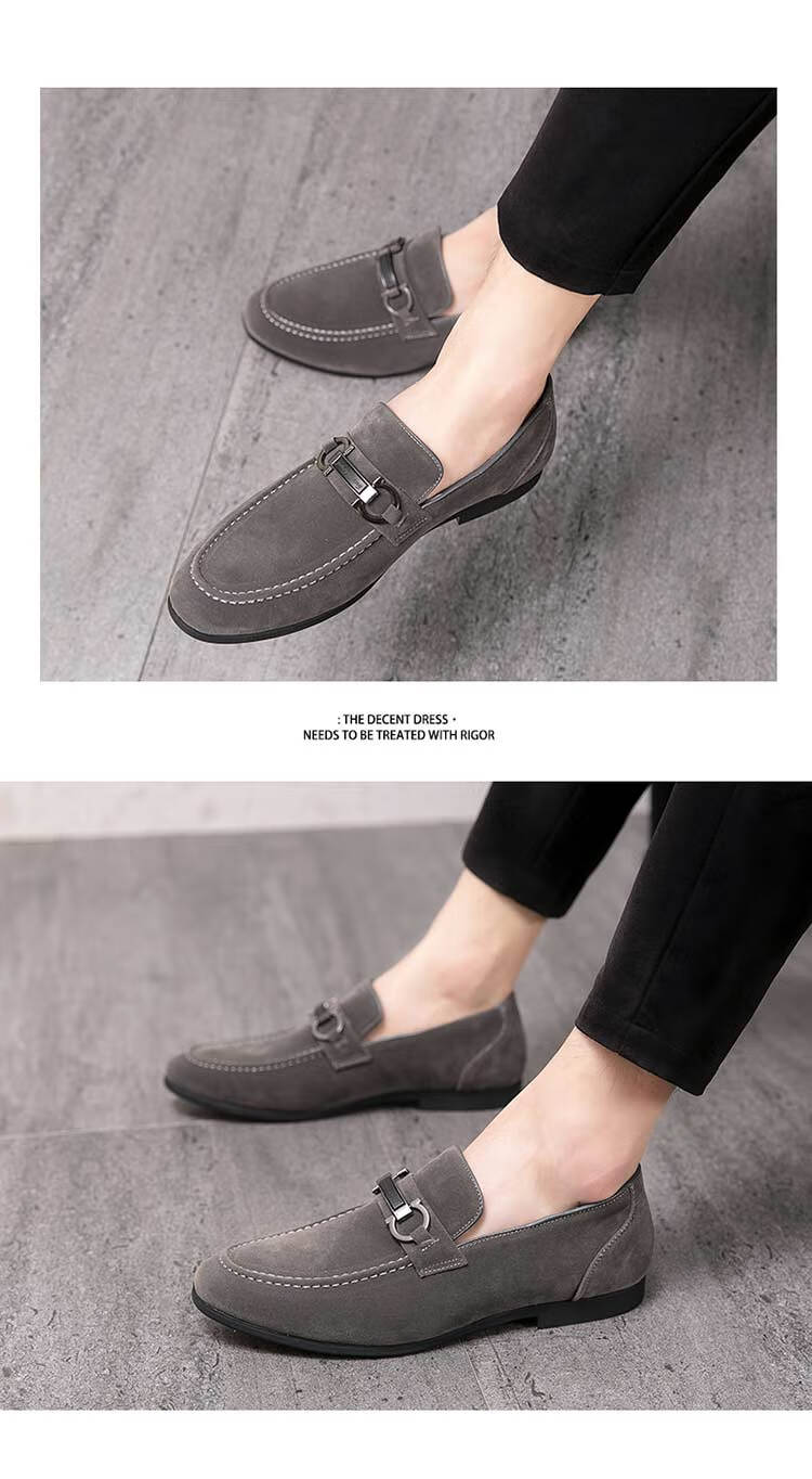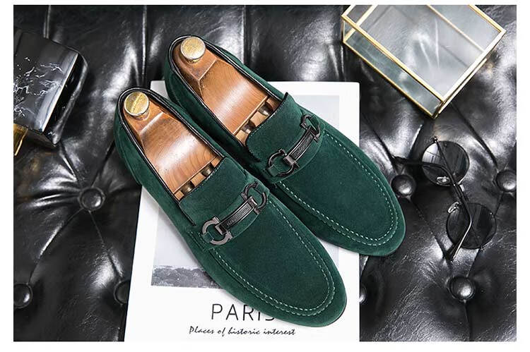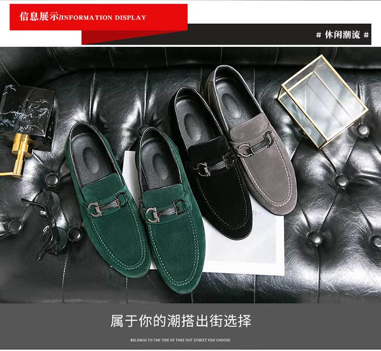 Woodpecker 2025 Nueva primavera Slip-on Lazy Beanie Shoes Zapatos de cuero casuales puntiagudos británicos para hombres Zapatos de moda de cuero nobuck M866 Terciopelo negro Estilo 40