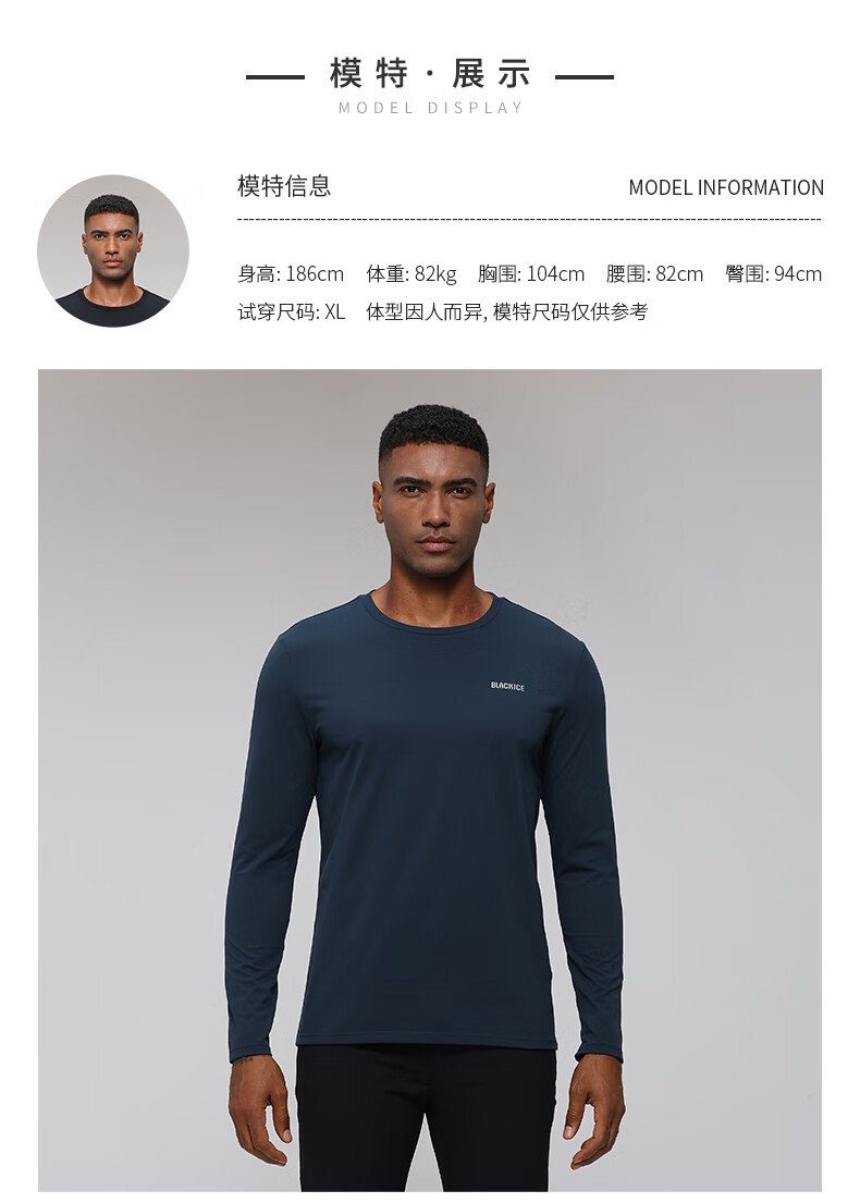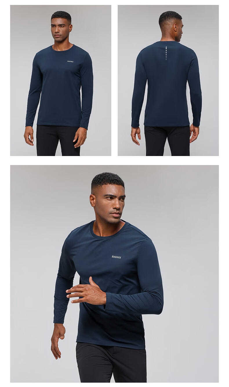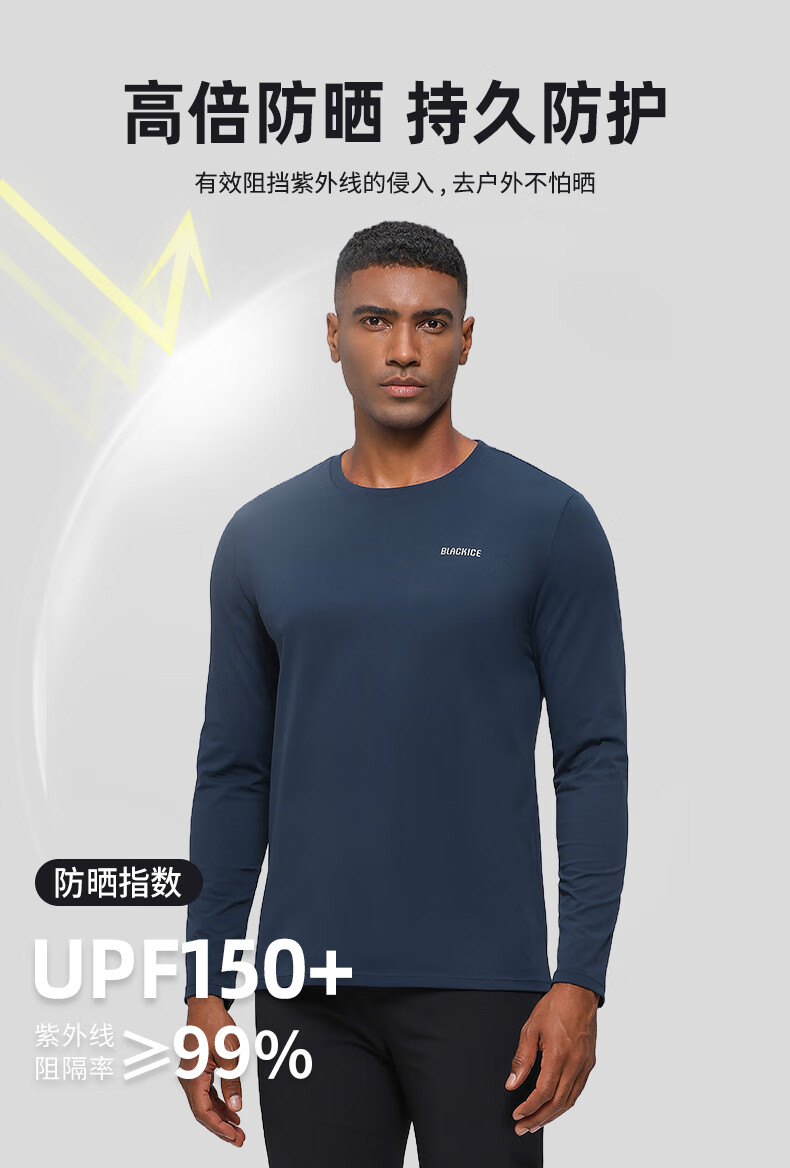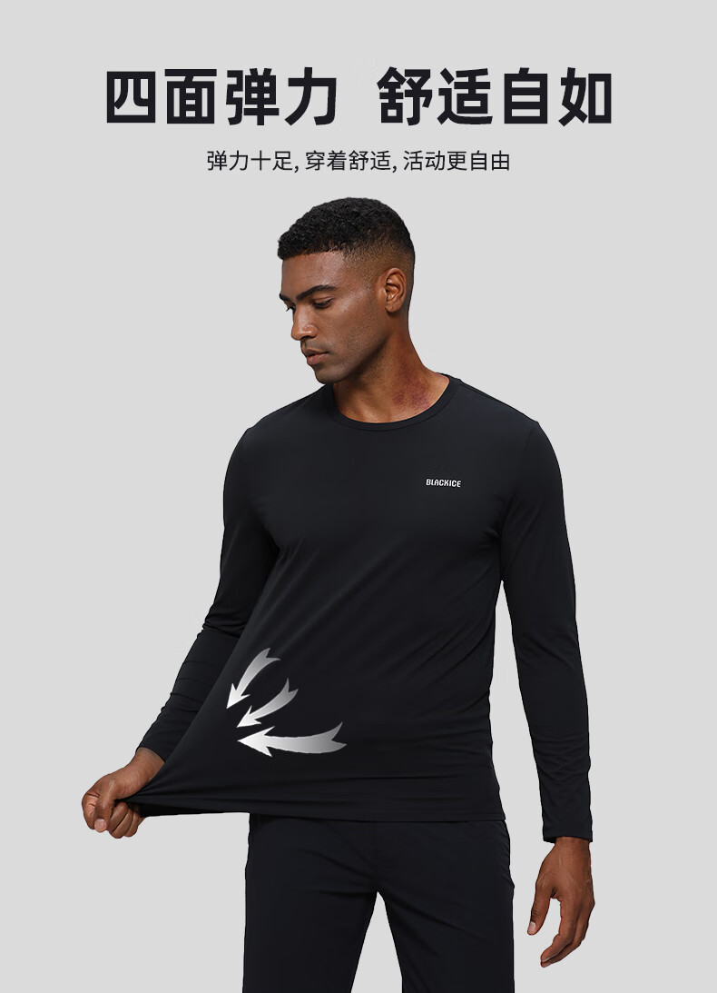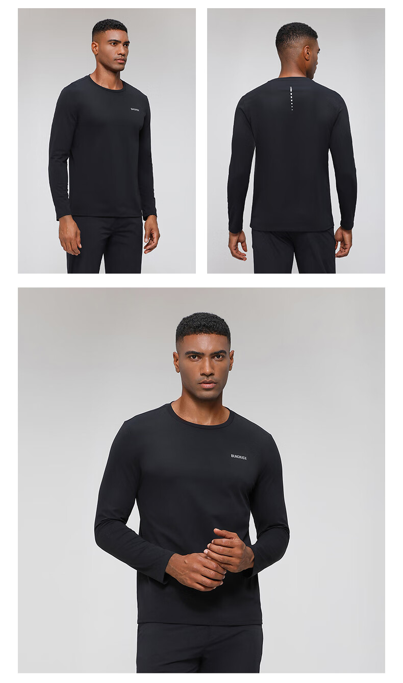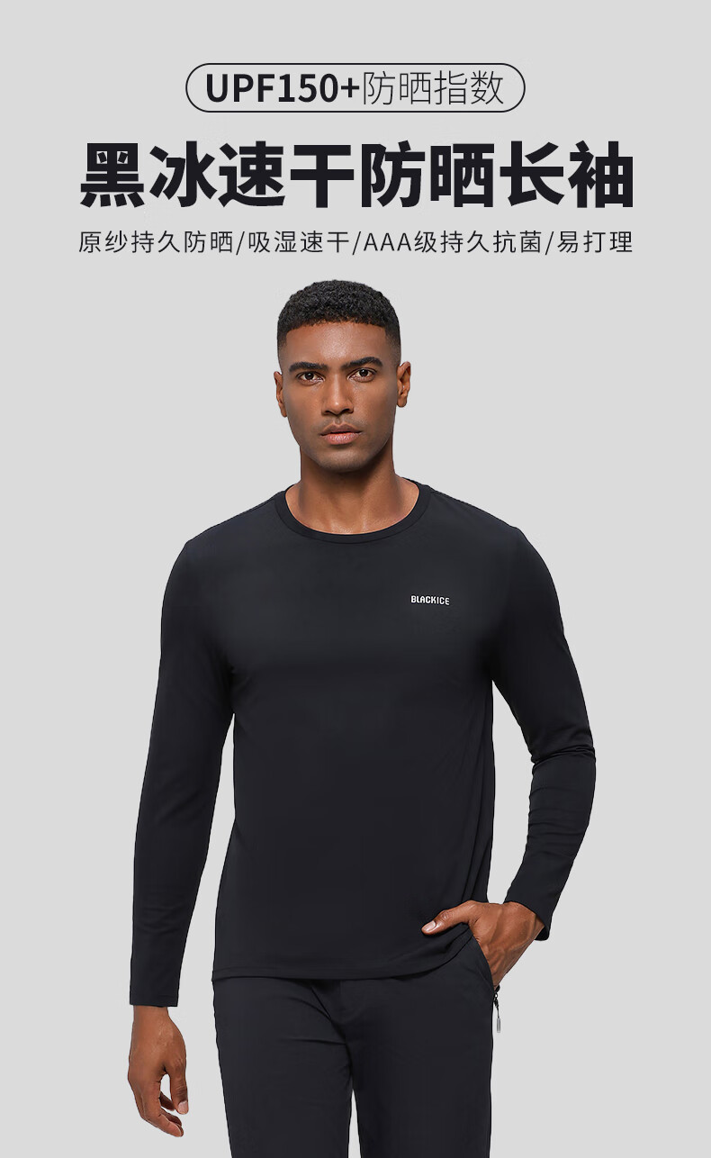 Black ice outdoor autumn and winter men's sun protection moisture absorption and quick-drying antibacterial round neck long-sleeved T-shirt FDE3501 Black L
