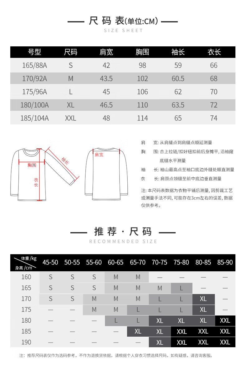 China (cm) 160-165/84-86 165-170 / 88-90 167-172 / 92-96 168-173 / 98-102 170-176 / 106-110