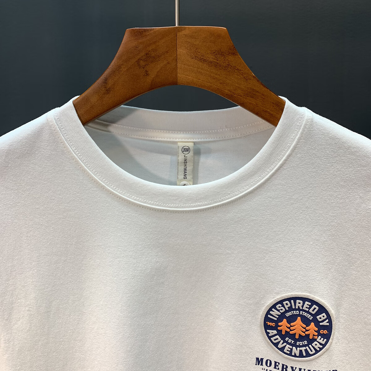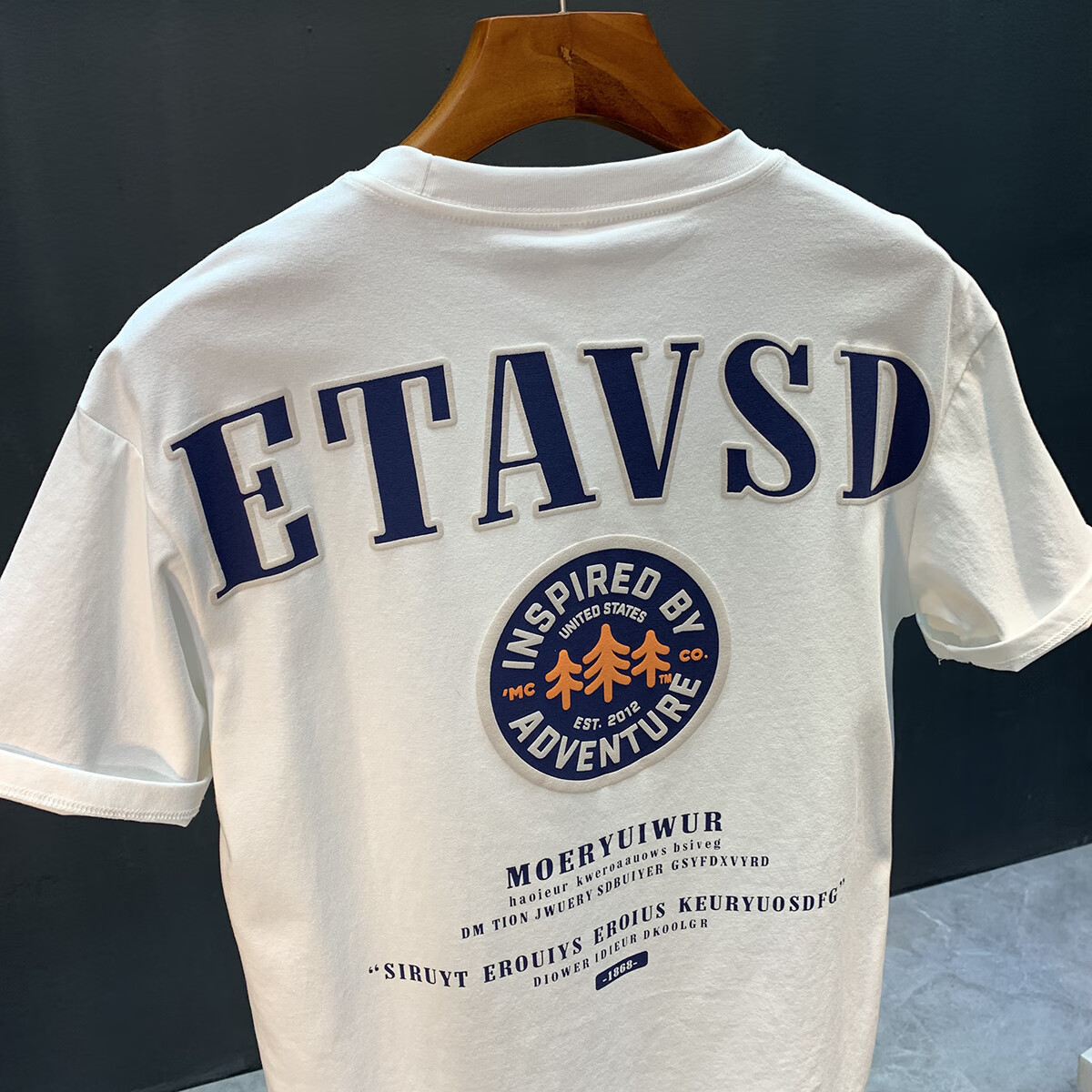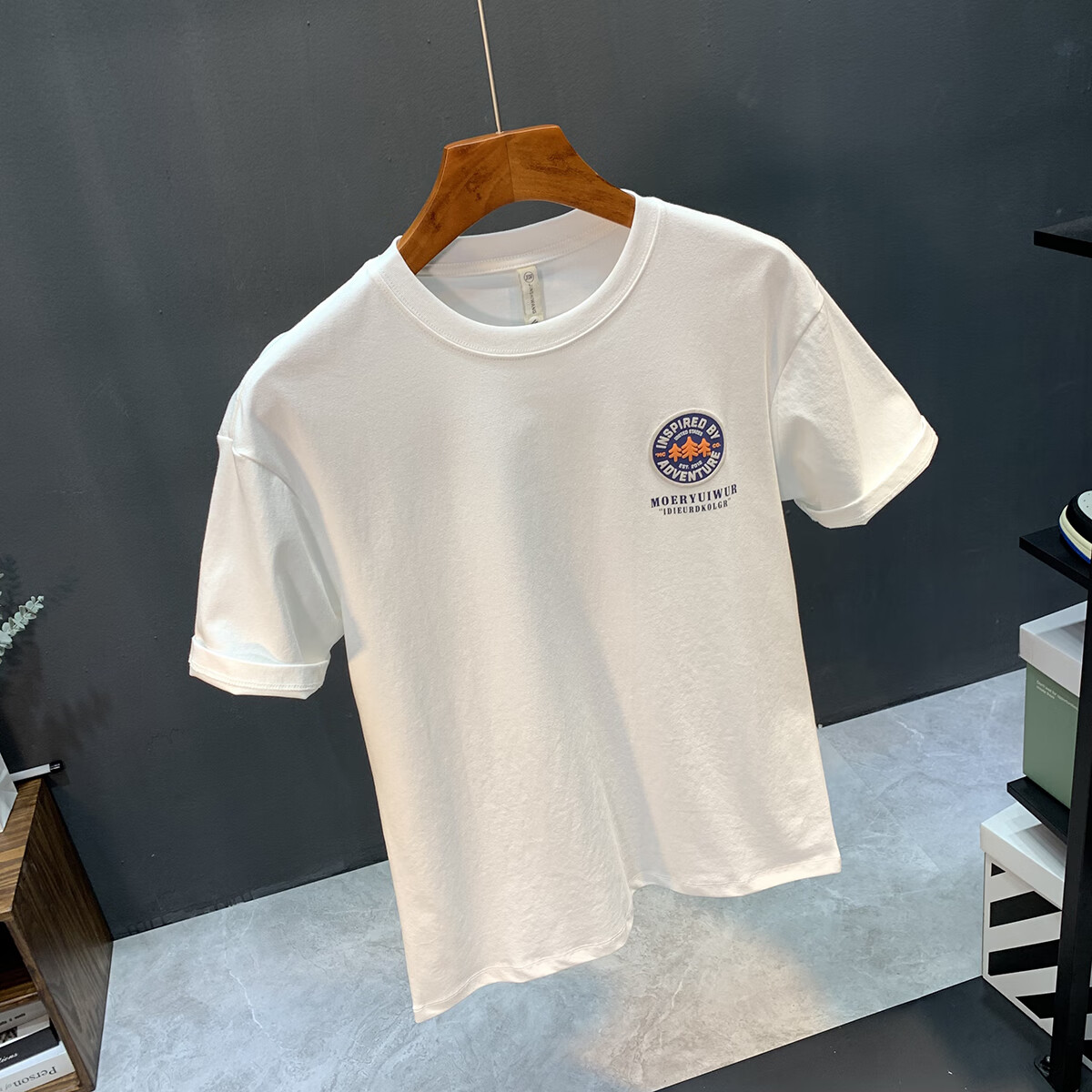 Luo Meng high-end summer thin American short-sleeved T-shirt men's trendy letter printed round neck versatile loose T-shirt top 9909 white (2025 new style) M suitable for weight 95-108 Jin Jin equals 0.5 kg.