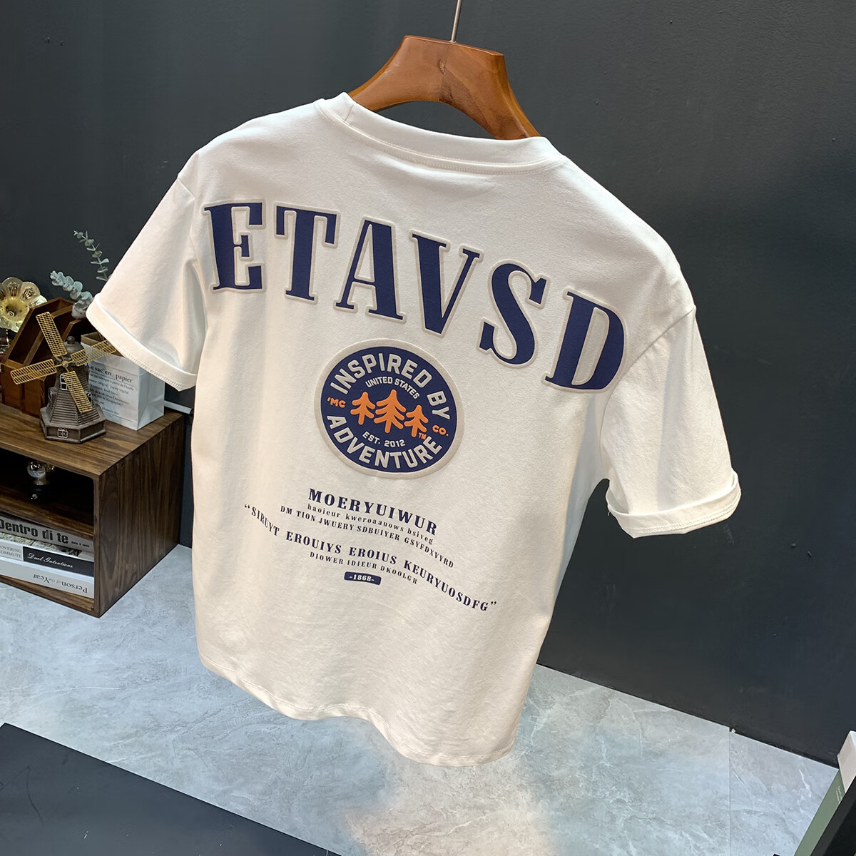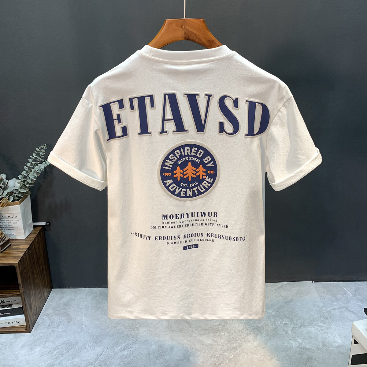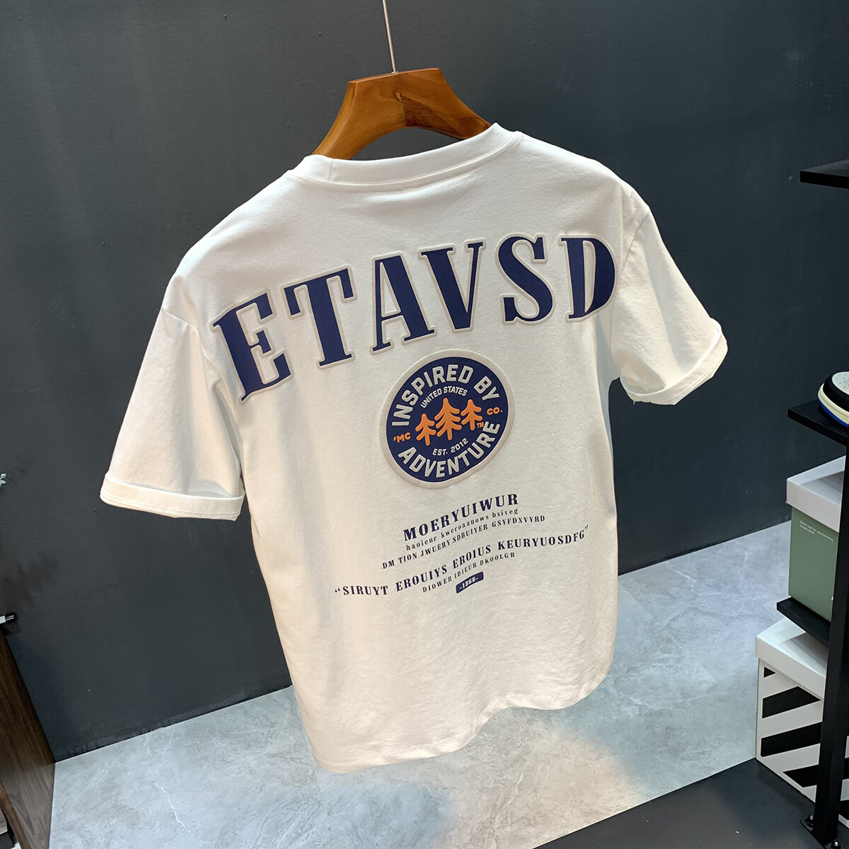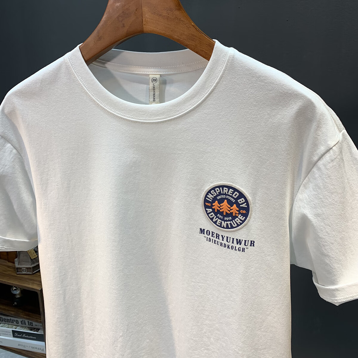 Luo Meng high-end summer thin American short-sleeved T-shirt men's trendy letter printed round neck versatile loose T-shirt top 9909 white (2025 new style) M suitable for weight 95-108 Jin Jin equals 0.5 kg.
