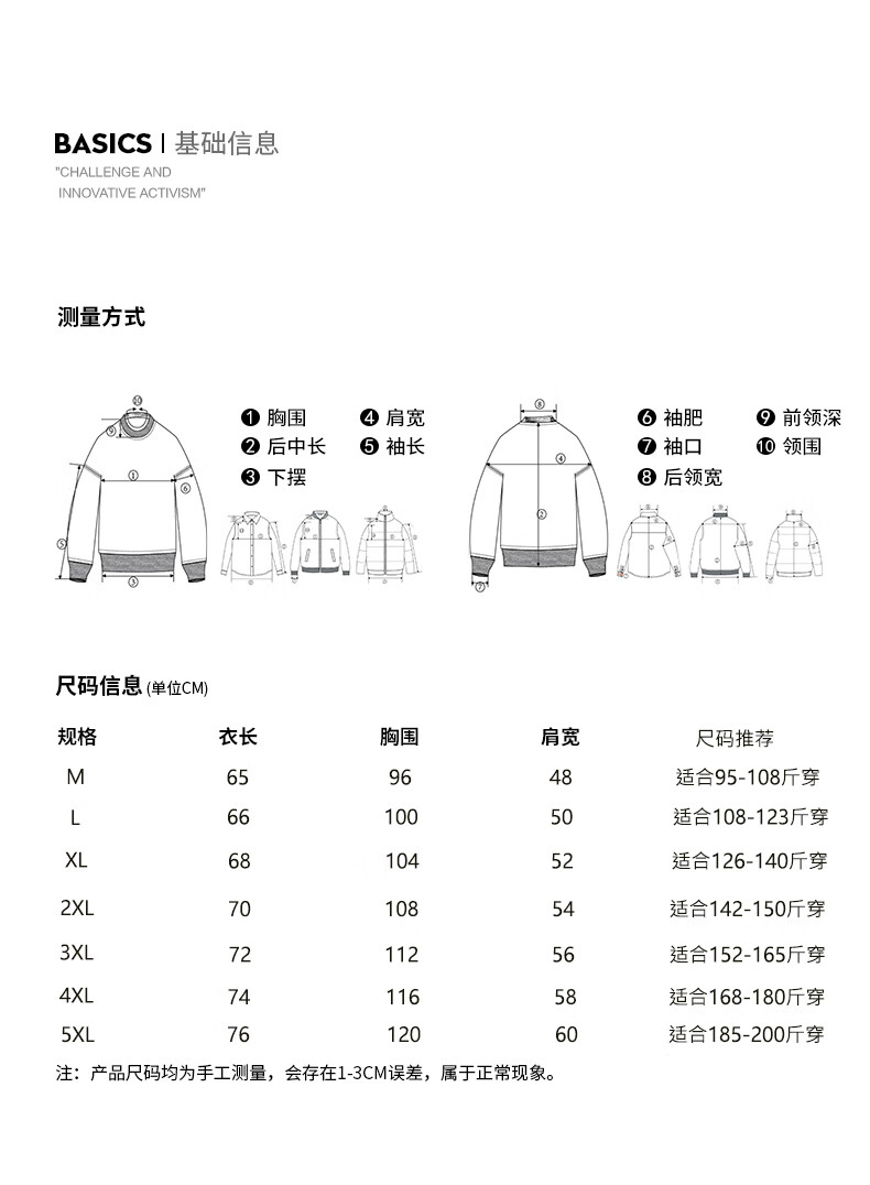 China (cm) 165 / 88-90 170 / 96-98 175 / 108-110 180 / 118-122 185 / 126-130