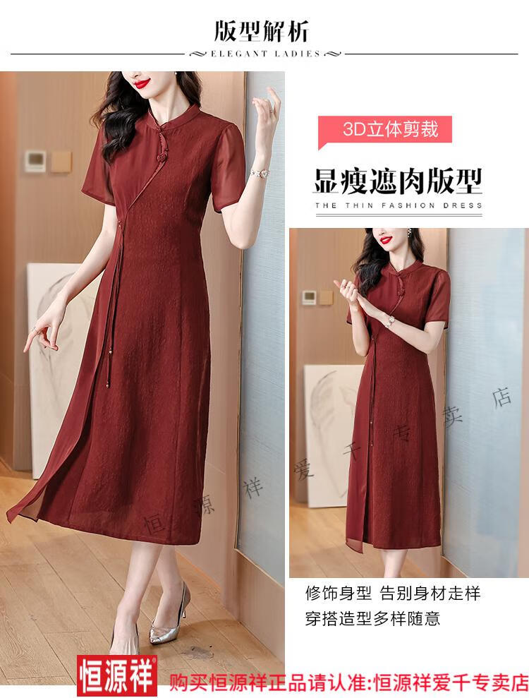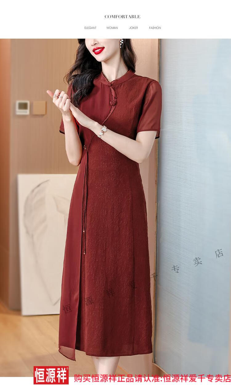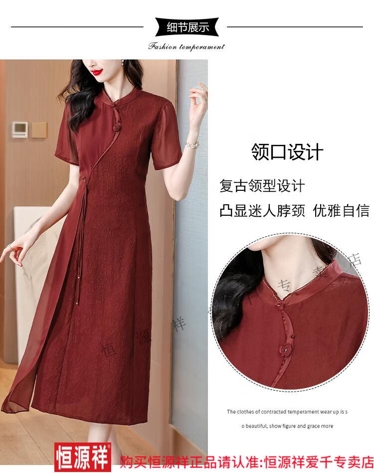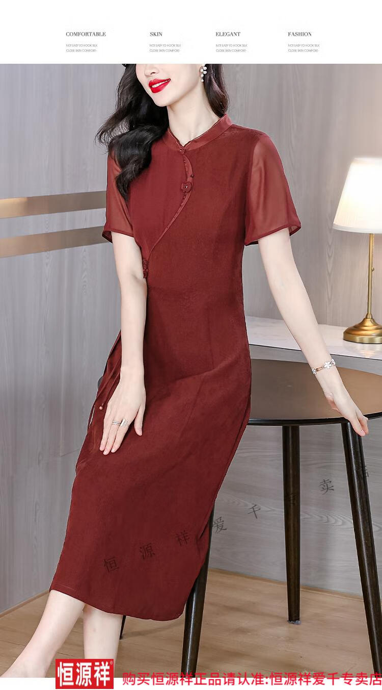 El vestido de banquete de bodas para suegra Hengyuan Xiangyunsha se puede usar en la vida diaria, corte entallado 2024 nuevo vestido cheongsam de seda de morera de seda 9918 rojo L