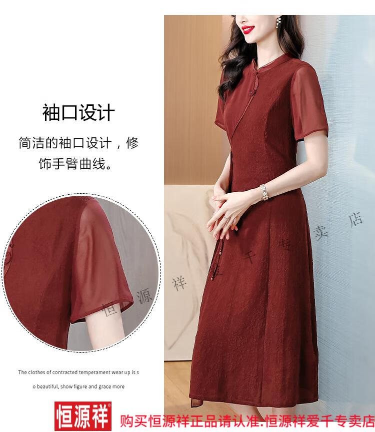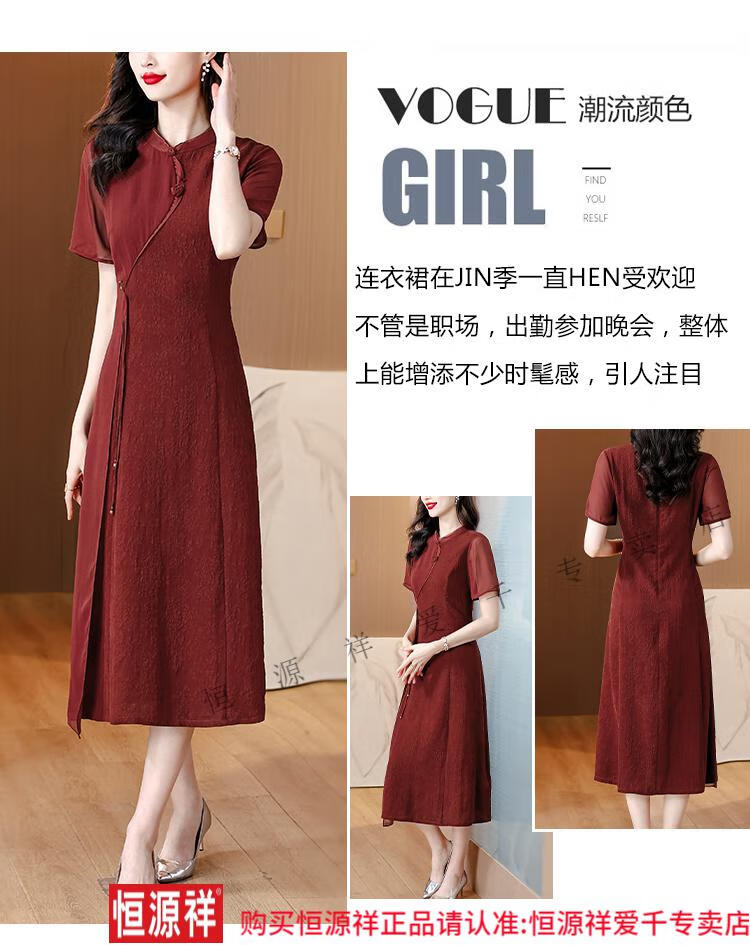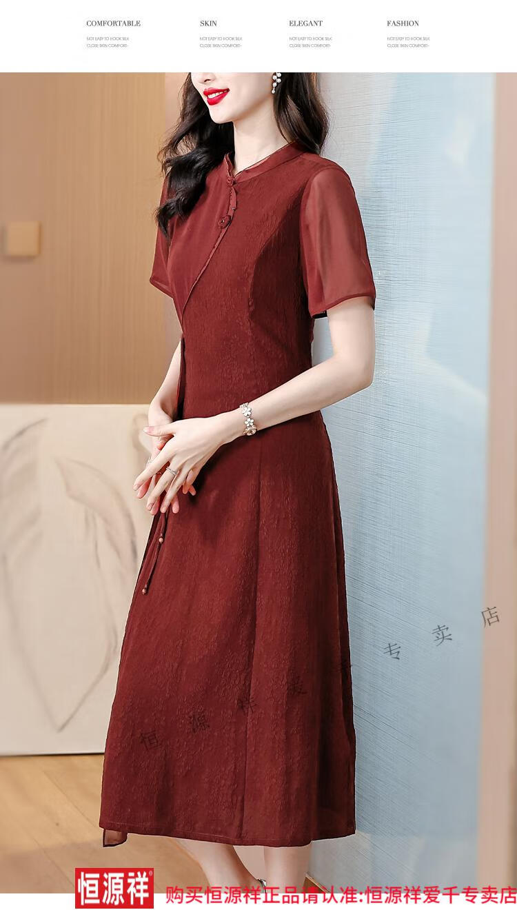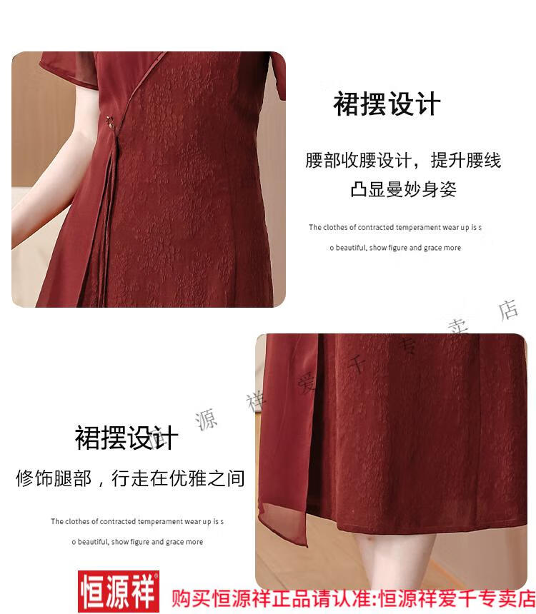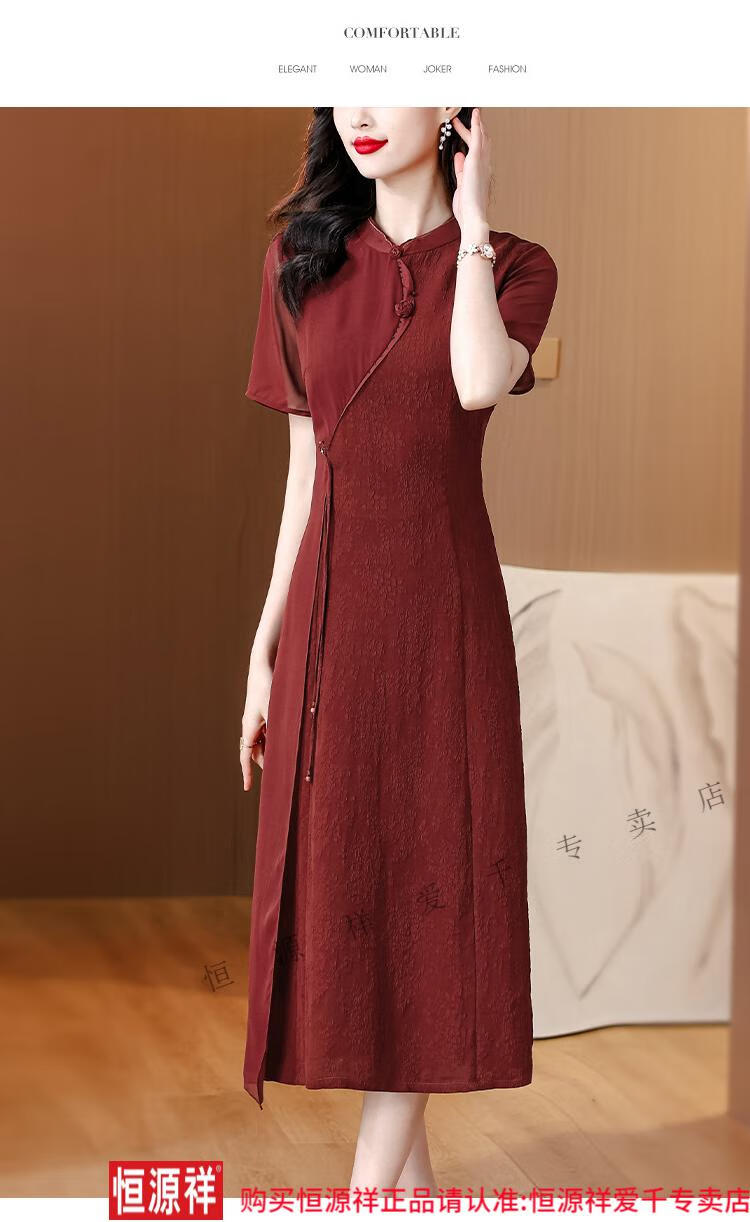 El vestido de banquete de bodas para suegra Hengyuan Xiangyunsha se puede usar en la vida diaria, corte entallado 2024 nuevo vestido cheongsam de seda de morera de seda 9918 rojo L