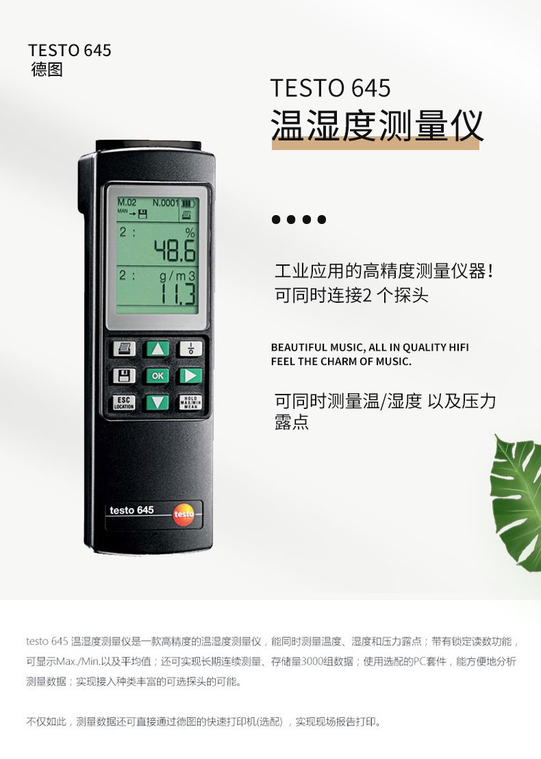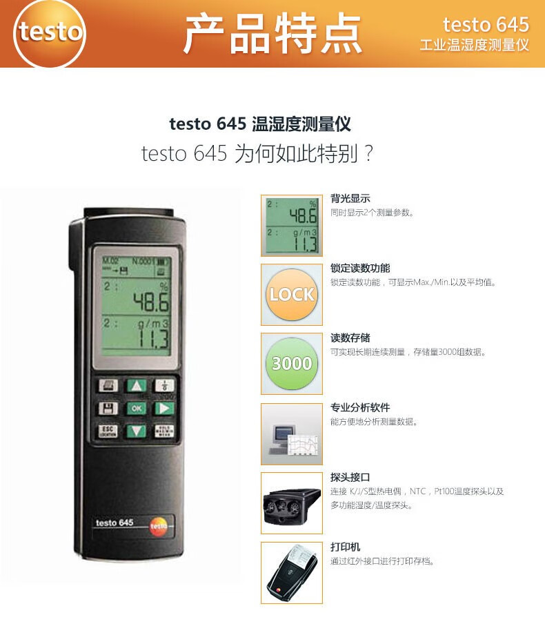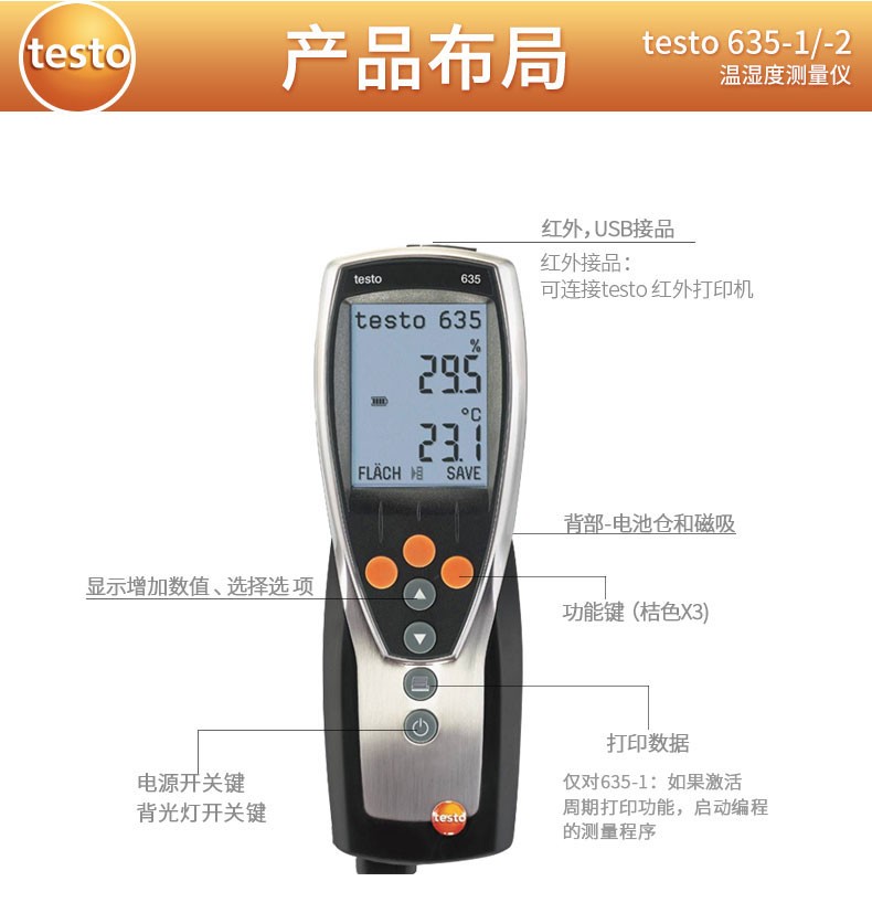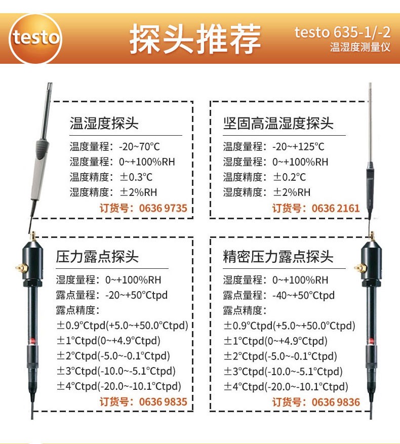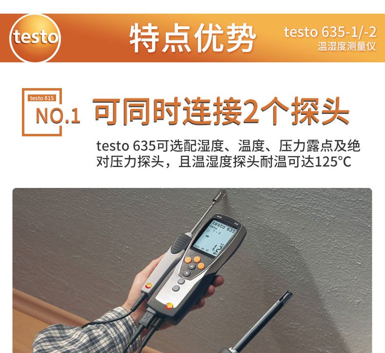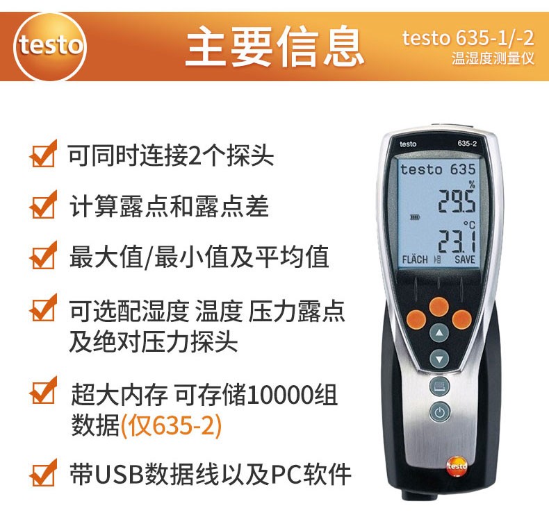 Testo635 medidor digital de temperatura y humedad instrumento de medición de temperatura y humedad de precisión presión de punto de rocío de laboratorio 635-1+0636 9735
