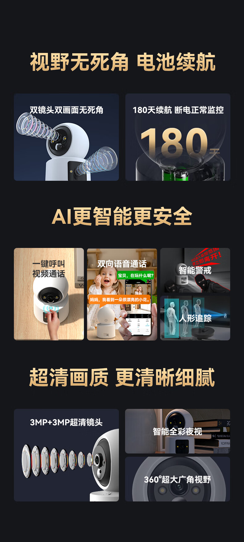 Visidacom 4g mobile phone remote monitoring wireless camera does not require Wi-Fi, plug-in-free battery home monitor 360-degree no blind spots with night vision panoramic indoor door guard WIFI charging PTZ version one-click call + long standby + dual lenses 64G memory card indoor monitoring