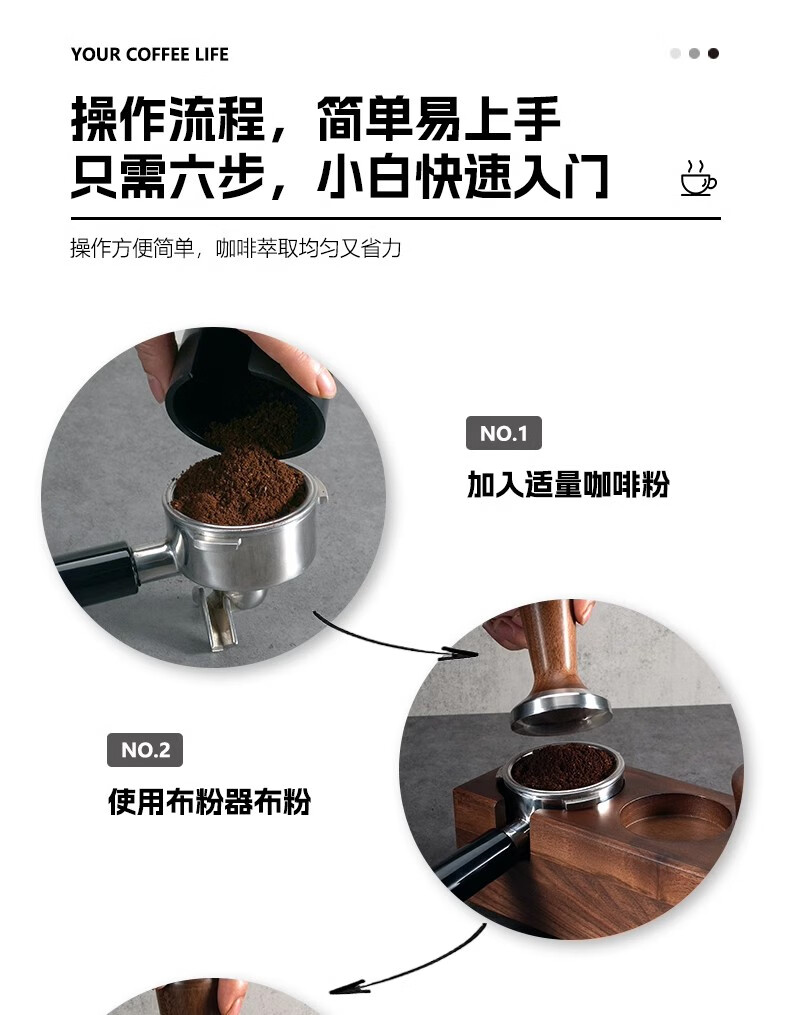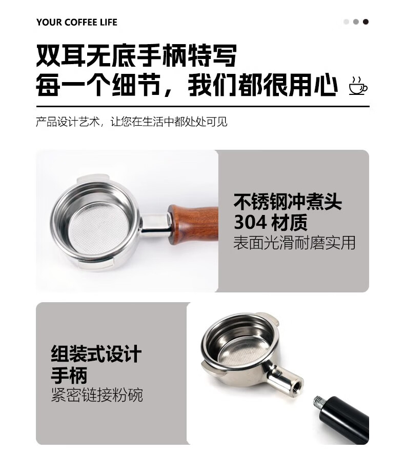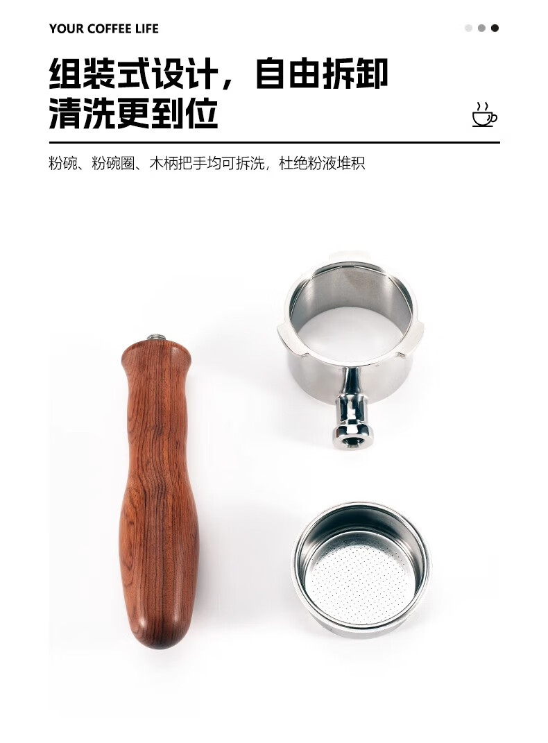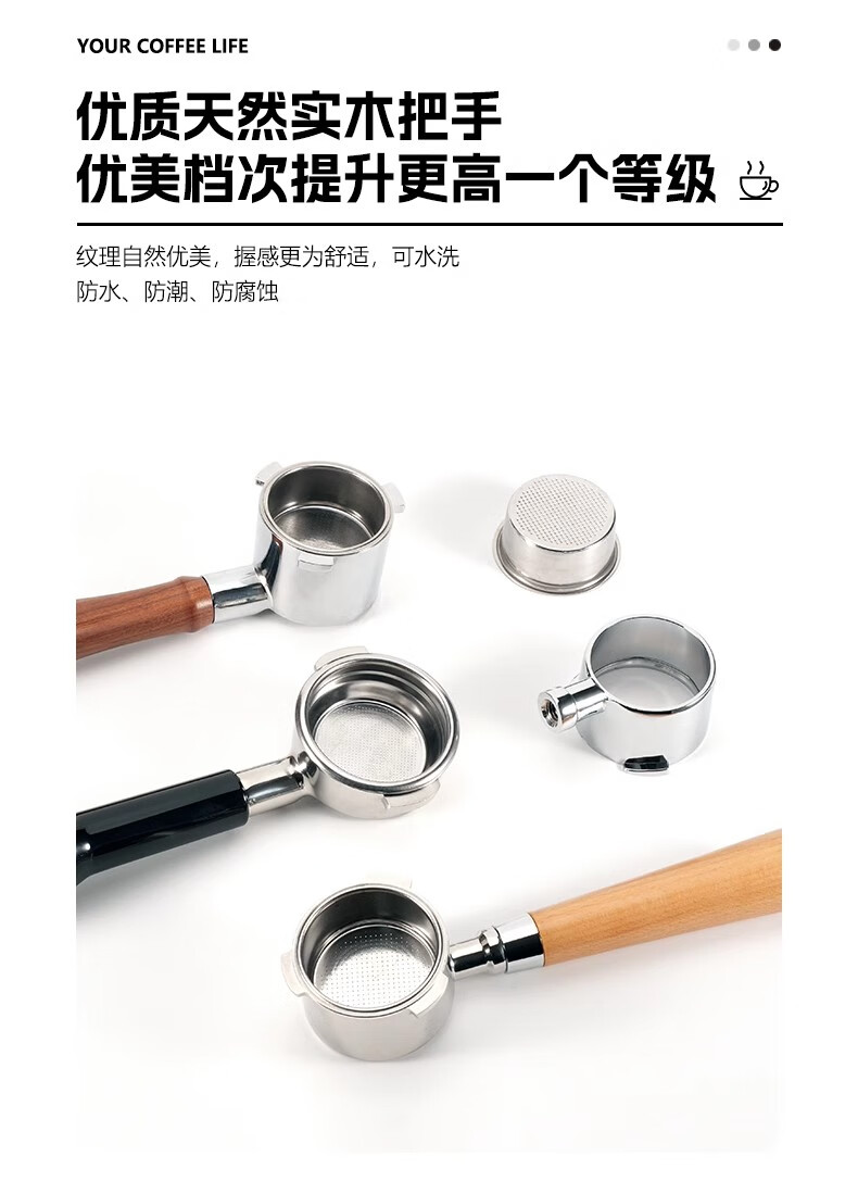 德龙无底手柄EC310/680/685把手51mmDeLonghi意式咖啡机通用配件 德龙51三耳-酸枝木A-合金