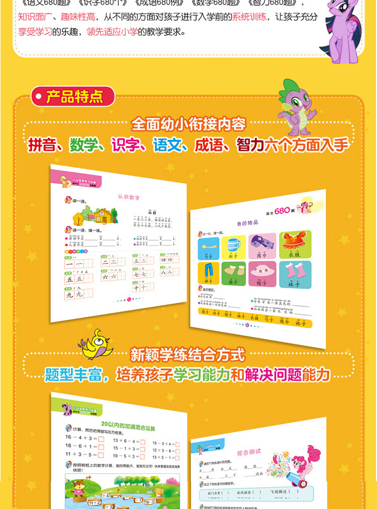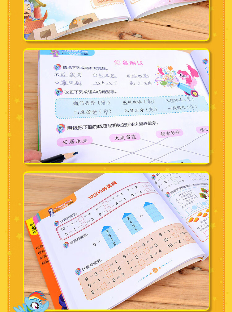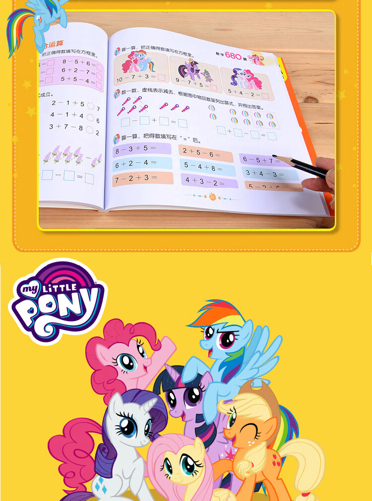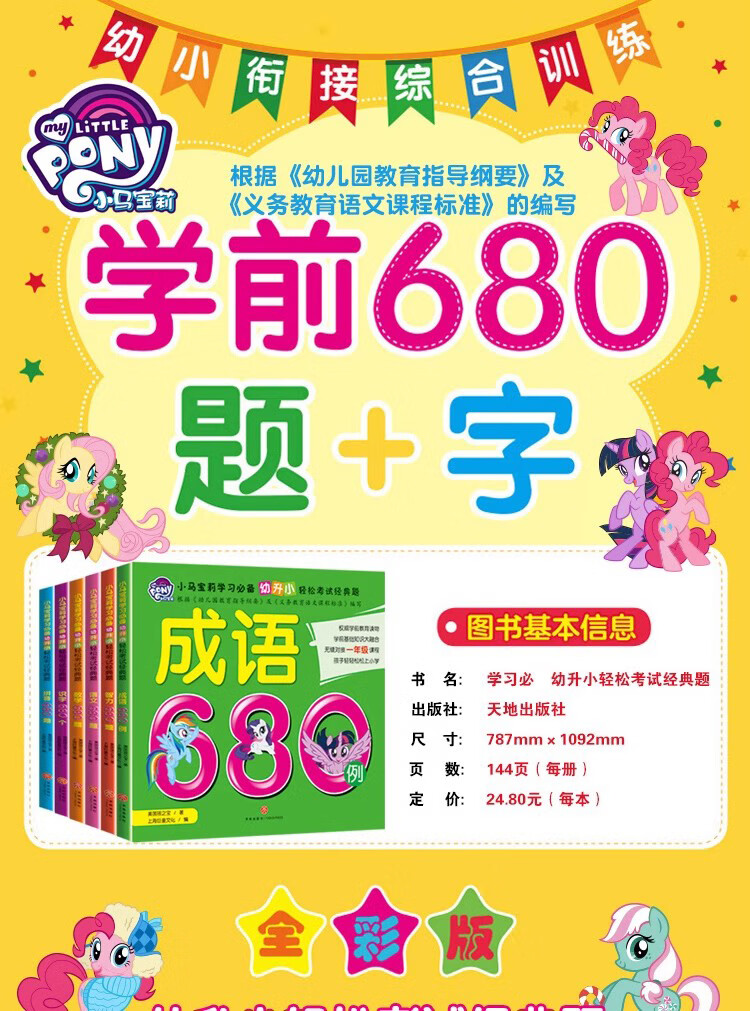 My Little Pony, a complete set of teaching materials for kindergarten to primary school, one practice per day, kindergarten 3-5-6 years old, preschool class, Chinese language, 680 questions, mathematics, pinyin, literacy, idioms, intellectual development, first grade entrance preparation, large exercises, early education enlightenment, 680 questions, a complete set of 6 volumes