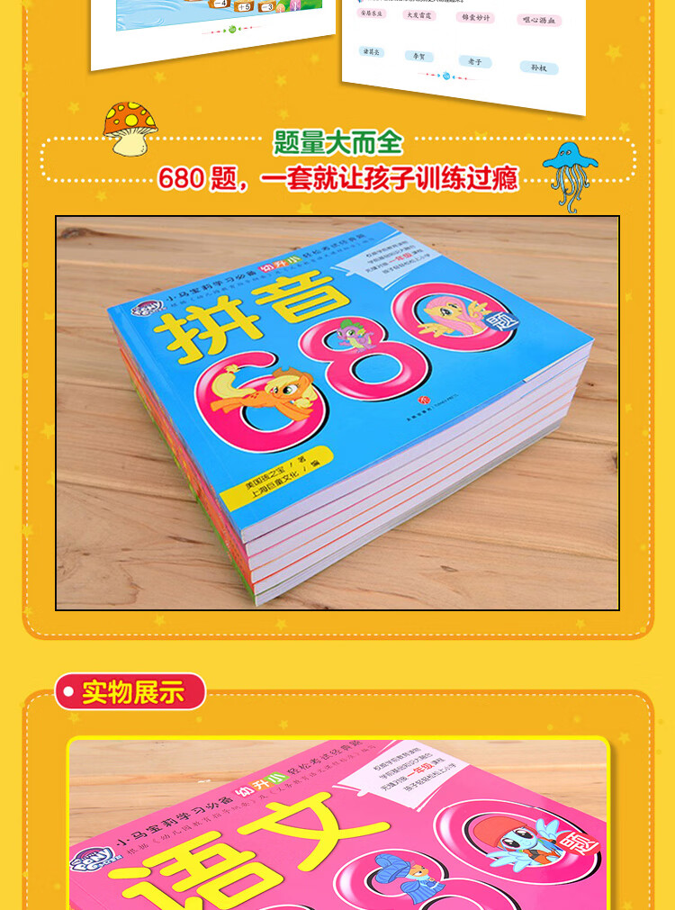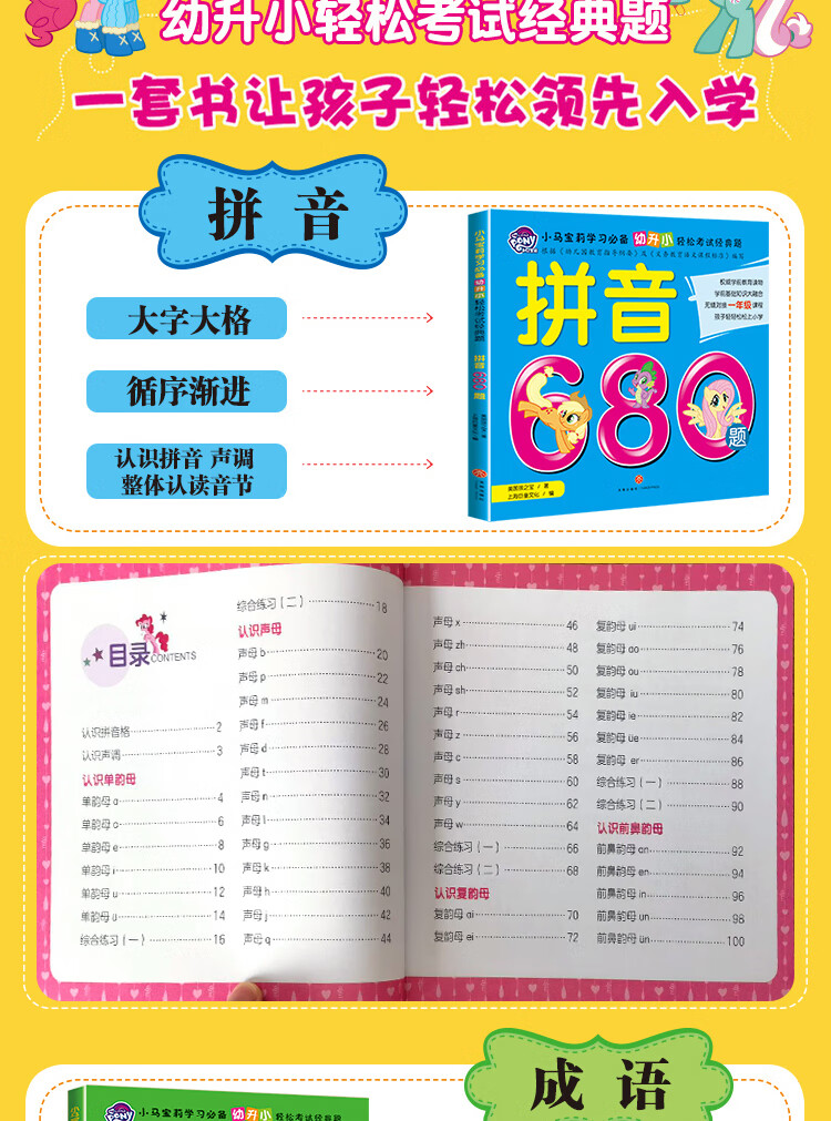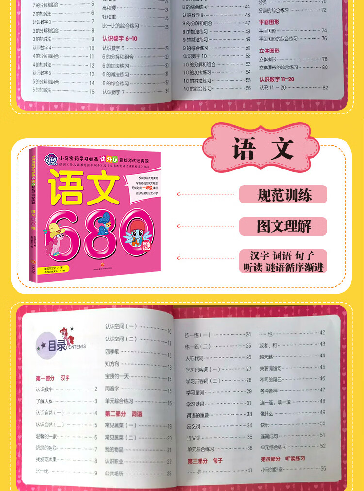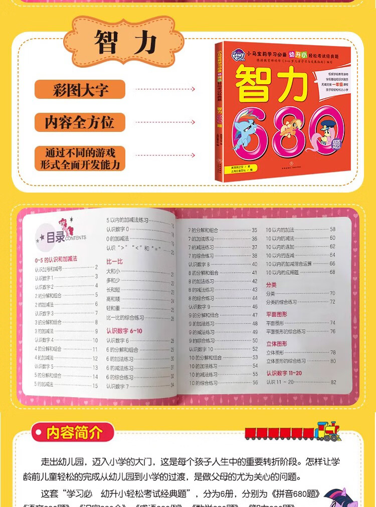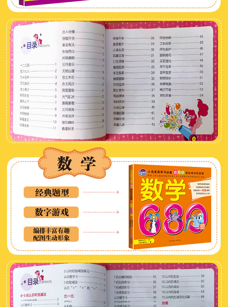 My Little Pony, a complete set of teaching materials for kindergarten to primary school, one practice per day, kindergarten 3-5-6 years old, preschool class, Chinese language, 680 questions, mathematics, pinyin, literacy, idioms, intellectual development, first grade entrance preparation, large exercises, early education enlightenment, 680 questions, a complete set of 6 volumes