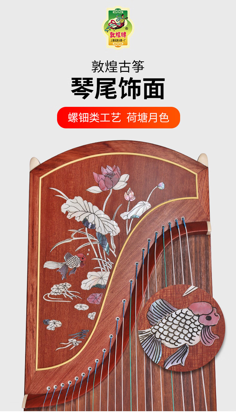 敦煌古筝特氏古夷苏木五彩呈祥敦煌牌演奏古筝乐器 694L荷塘月色