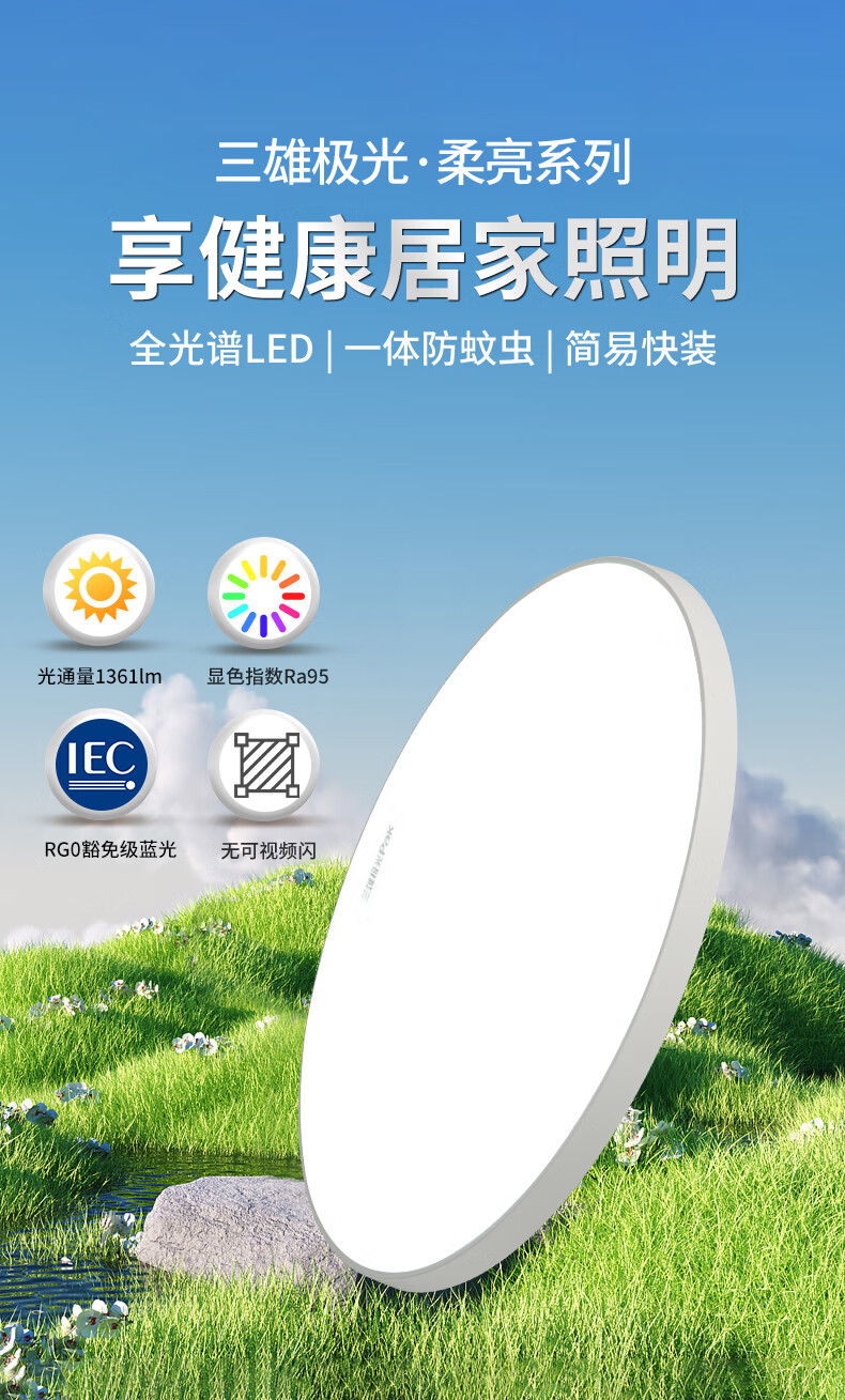 Sanxiong Aurora LED ceiling lamp bedroom lamp modern living room lamp simple aisle corridor entrance bathroom balcony lamp 12W 8 suitable for 678lm soft bright three-proof lamp