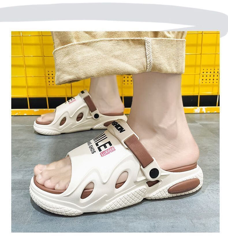 潮思汇拖鞋男夏季外穿防滑防臭两用踩屎感开车凉拖户外运动厚底沙滩凉鞋 L6卡其色【加厚鞋底】9911-2 40-41【适合39-40的脚】
