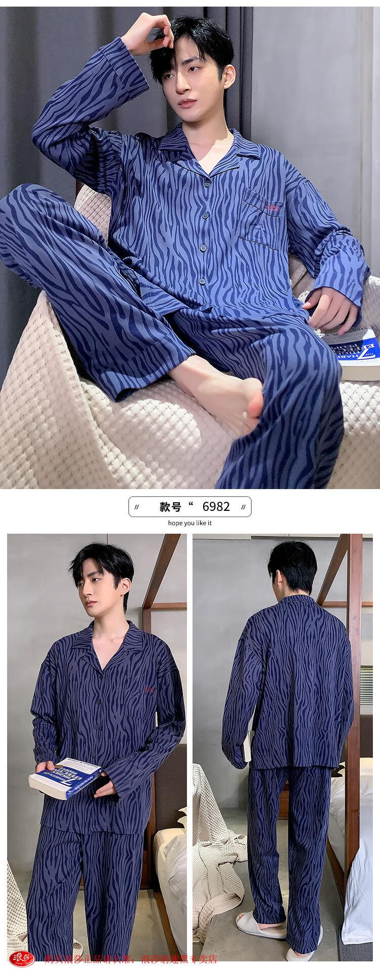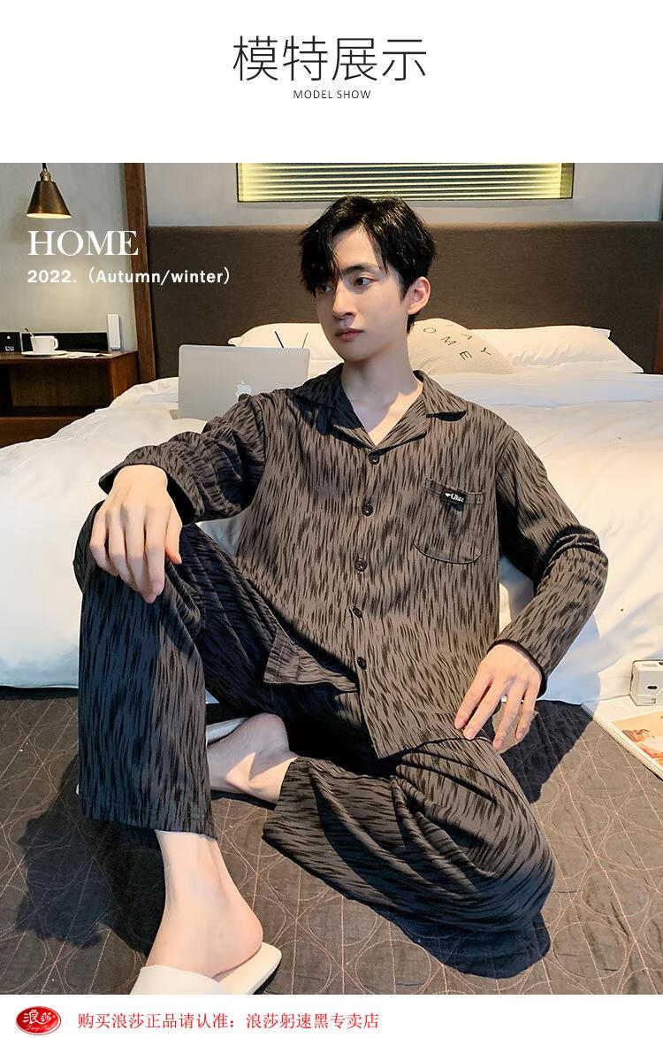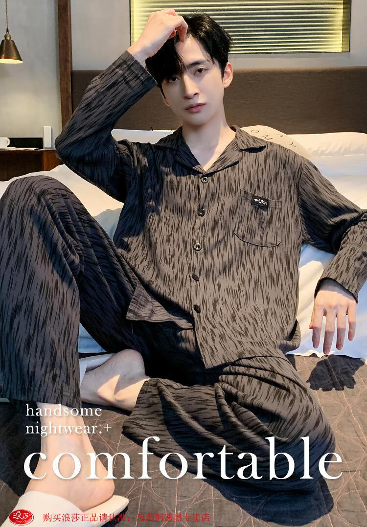 LangSha pijamas primavera y otoño para hombres 2024 nuevo estilo 100 algodón puro manga larga ropa de casa de gran tamaño usable de gama alta verano 826 L