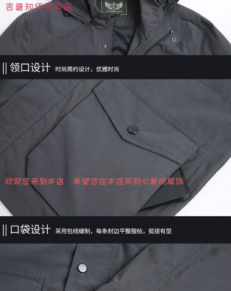 JEEP SPIRIT Jeep Thin Jacket Men's Spring Loose Large Size Work Jacket Men's Casual Tops 2024 New Style 9898 Khaki Removable Hat - Adding Velvet No Price Increase 3XL 190Specifications (180Jin Jin is equal to about 0.5 kg)