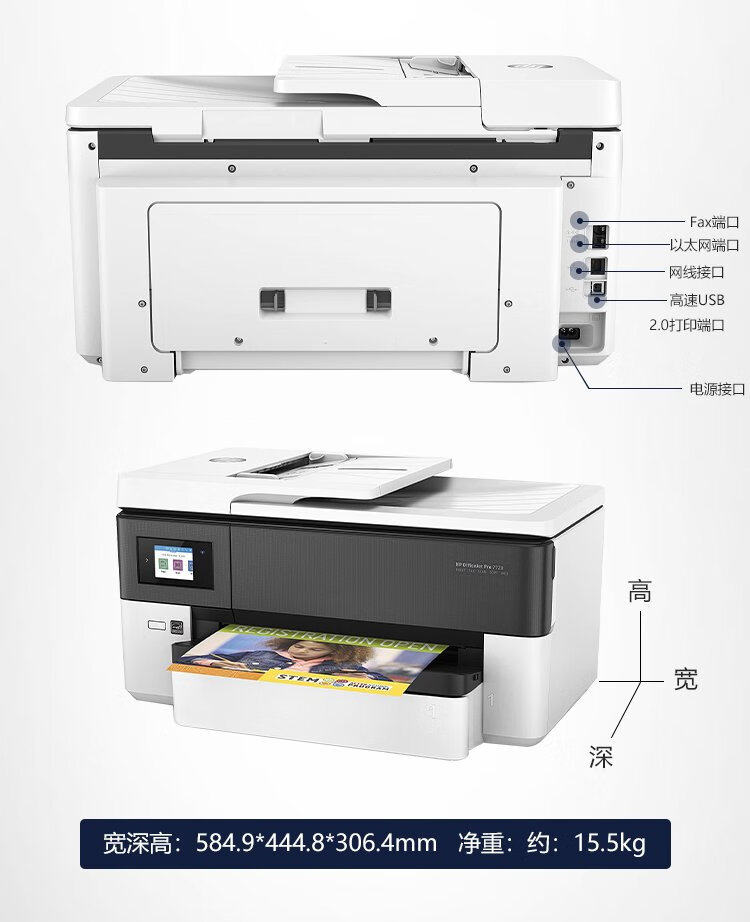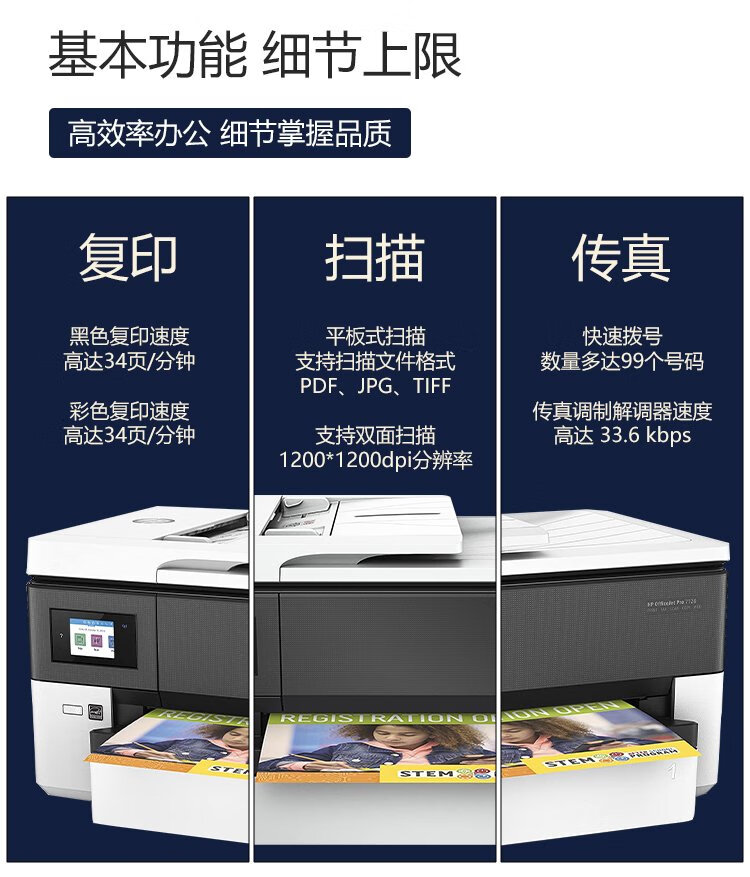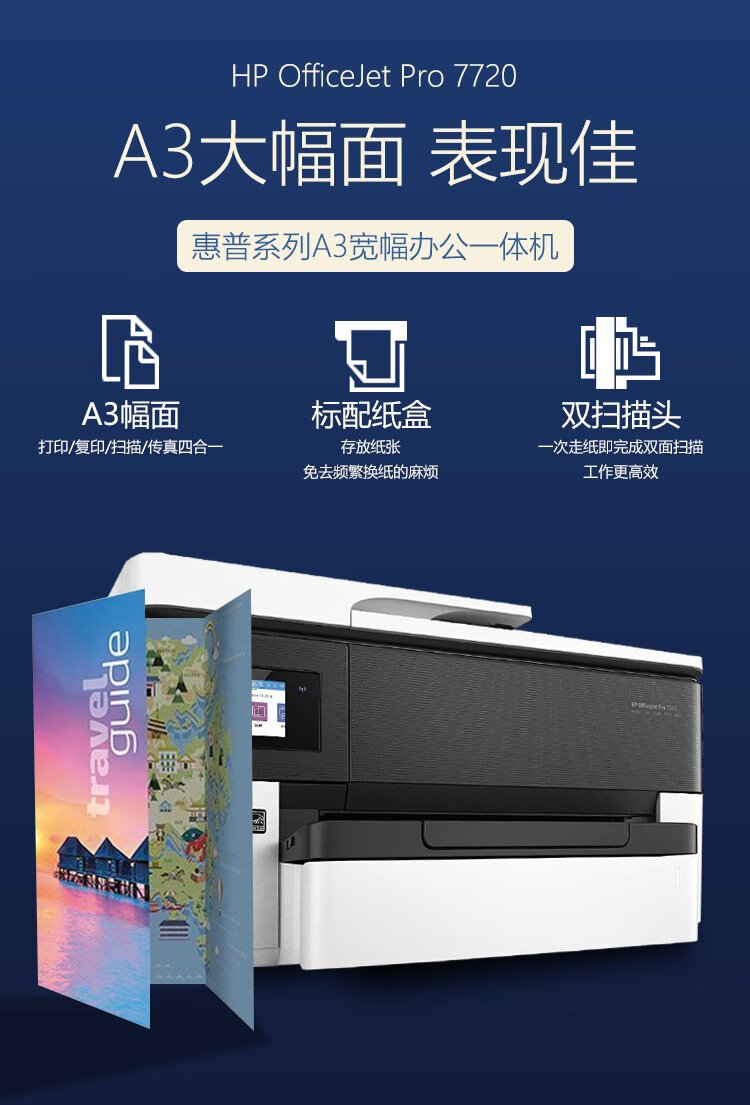 HP惠普9720/9730A3打印机a3a4一体喷墨彩色打印机办公家用自动双面打印复印扫描传真多功能打印机 HP9720标配【A3打印A4复/扫】原装墨盒