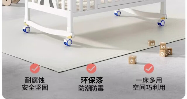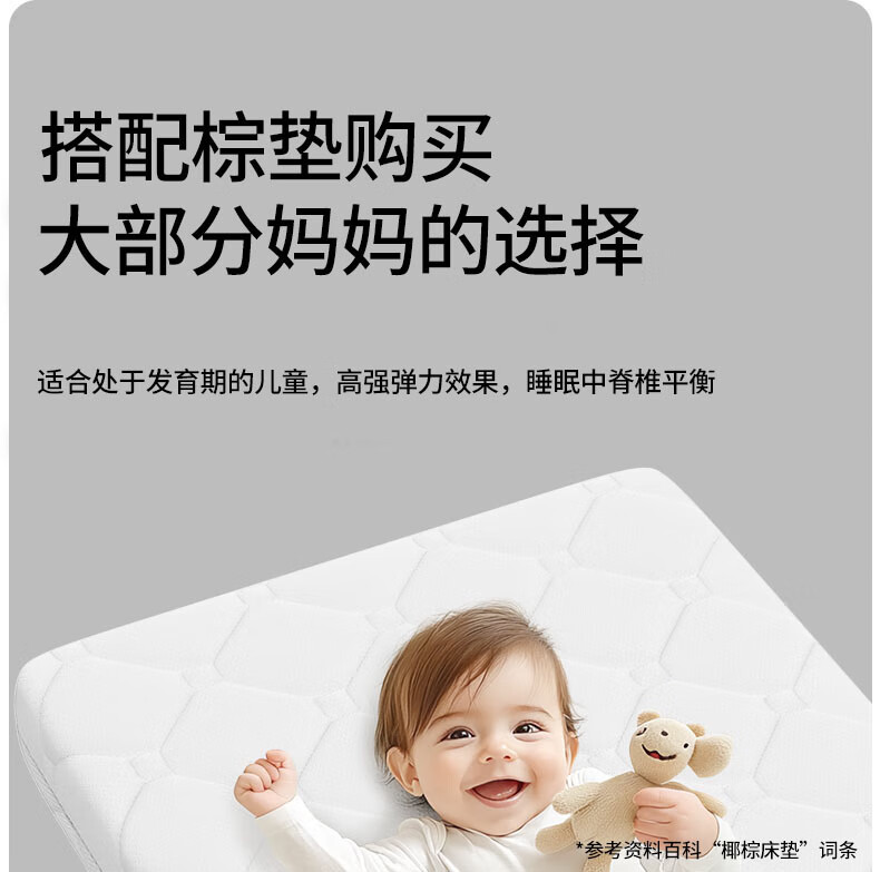 Airich Babybett aus massivem Holz, abnehmbares Spleißbett, multifunktionales Babybett, Neugeborenenwiege, Wiegebett + braune Latexmatte