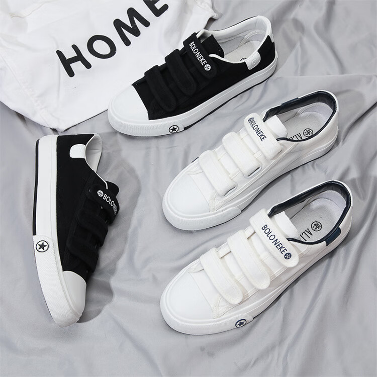 Xiaohui Lijia 2024 Automne Nouvelles Chaussures en Toile pour Hommes Chaussures pour Hommes Chaussures Paresseuses Velcro Étudiants du Collège Baskets Respirantes Décontractées Baskets 126 Boucle-Noir 41 Mâle