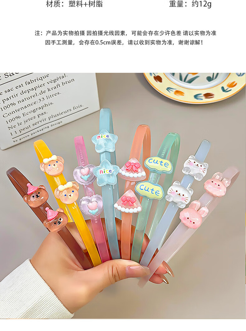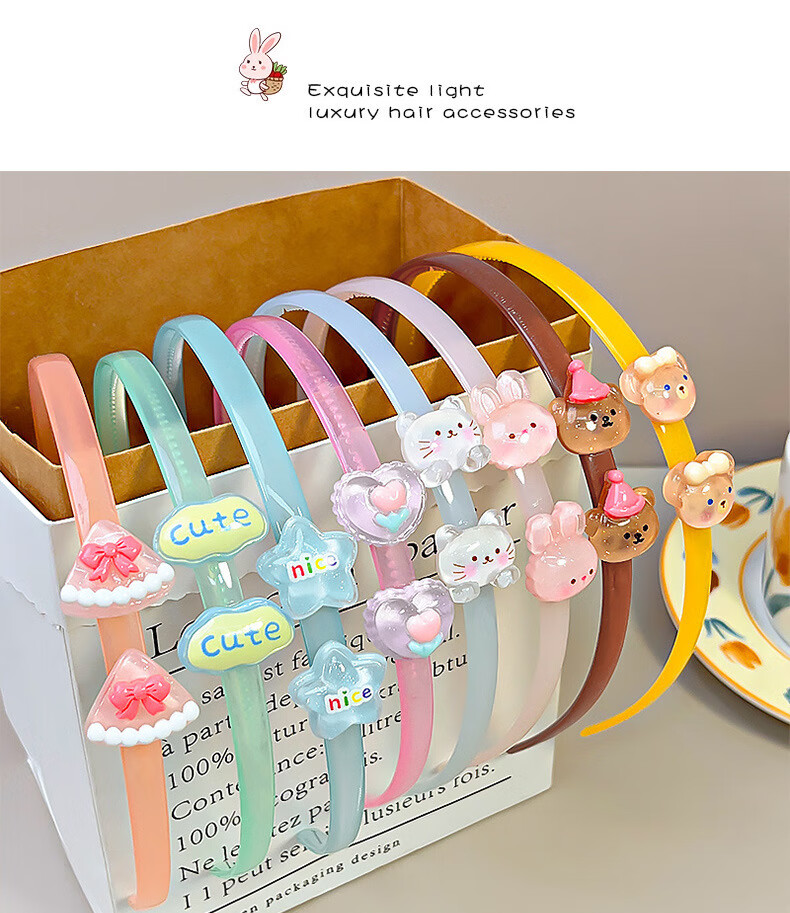 海伊朵儿童果冻色亚克力发箍卡通动物碎发卡带齿防滑压发头箍碎发饰品 果冻色卡通发箍【随机3件套】