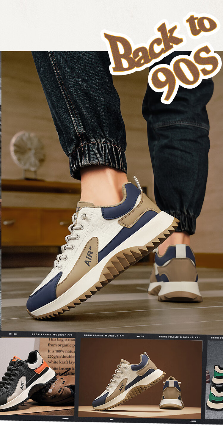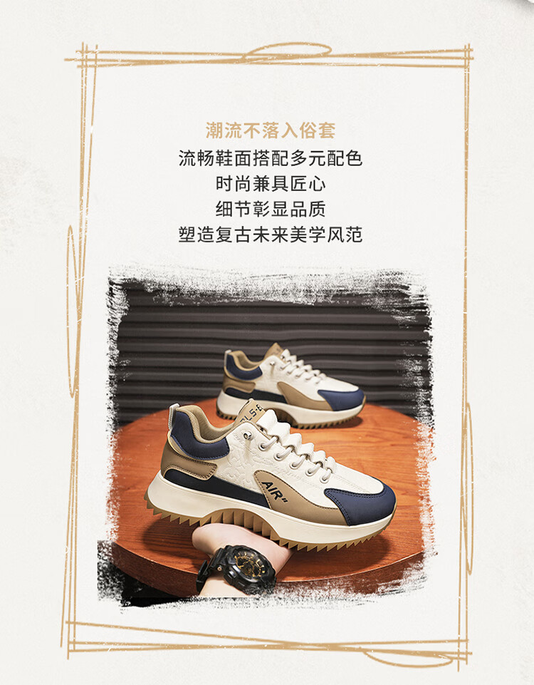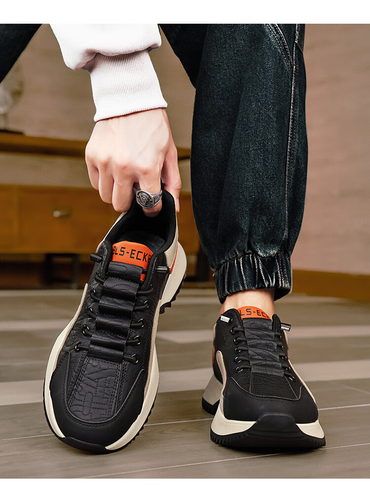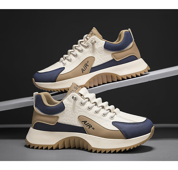 Qinpin Qingdao Fukelai Men's Shoes Spring Autumn and Winter New Leather Sports Shoes Men's Dad Shoes Anti-Slip Travel Running 9911 Mi Blue 42