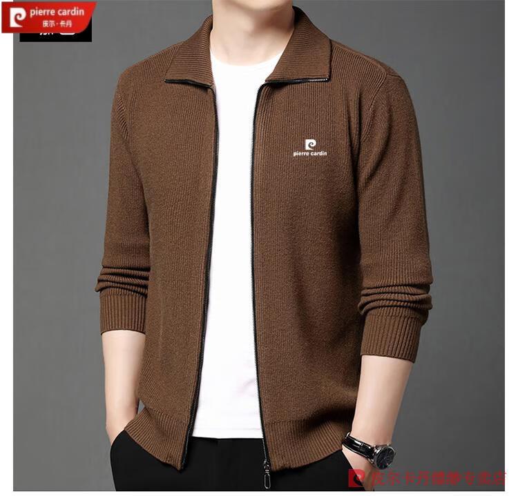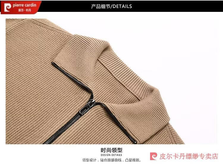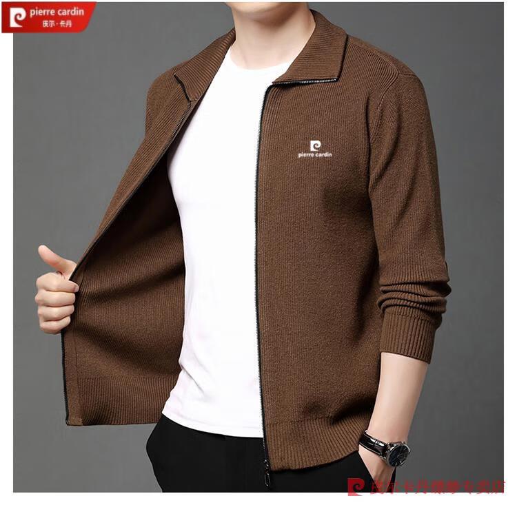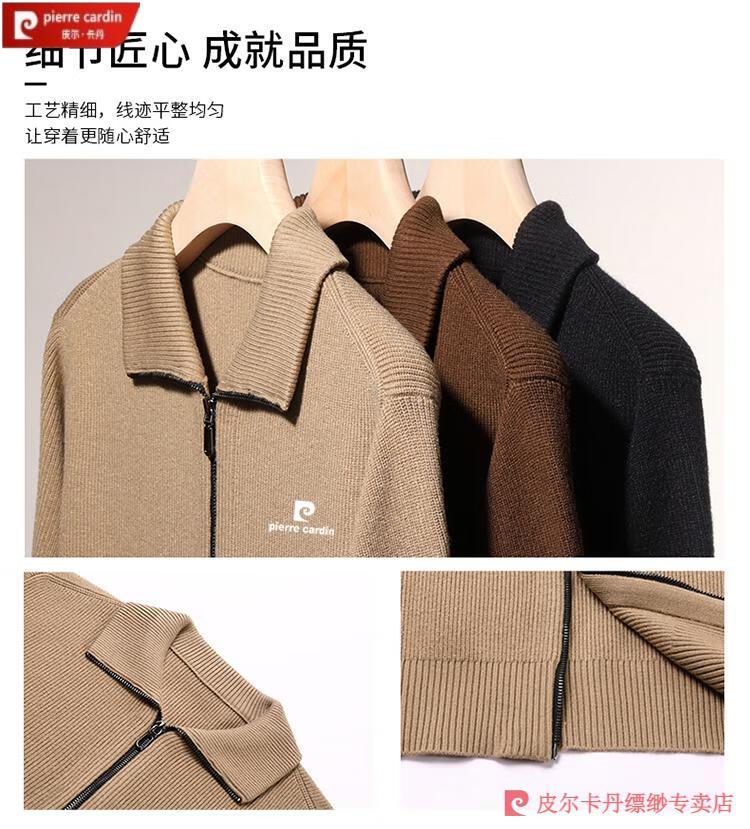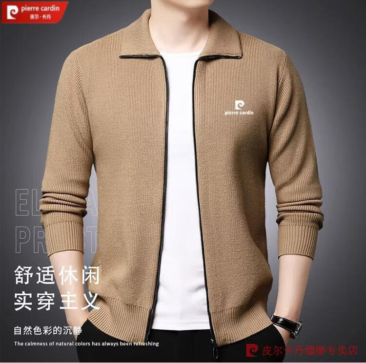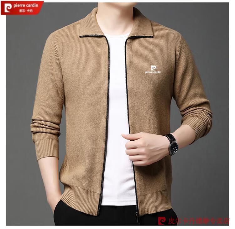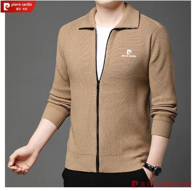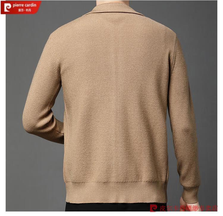 皮尔卡丹鄂尔多产纯羊绒开衫男秋冬季中年加厚翻领针织衫男士毛衣拉链外套 华驼色9276 (100%不起球) 4XL