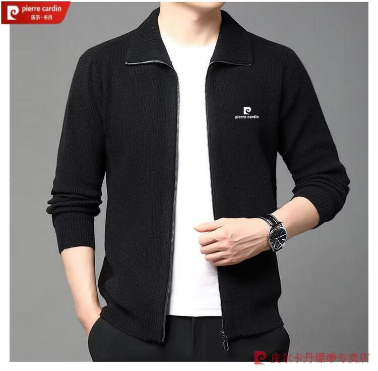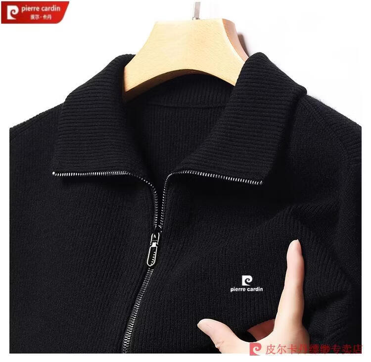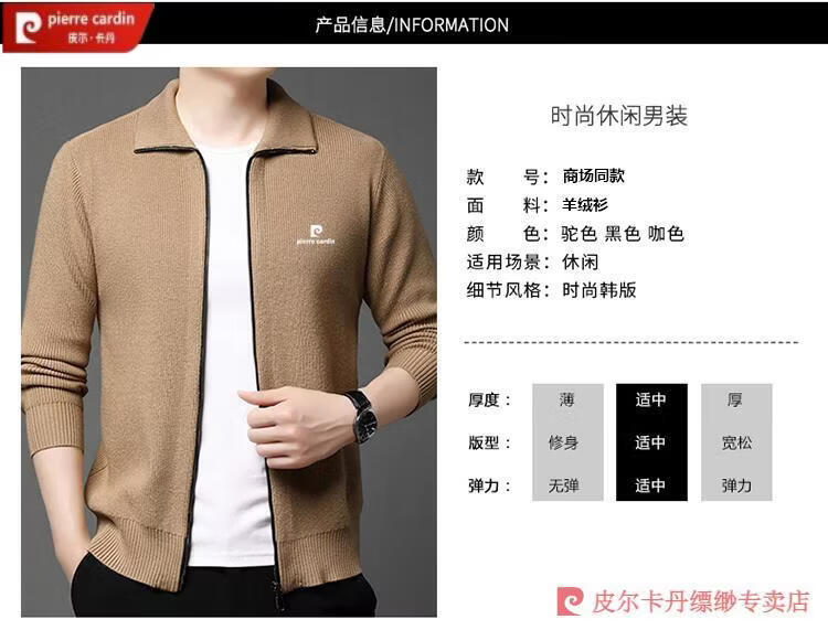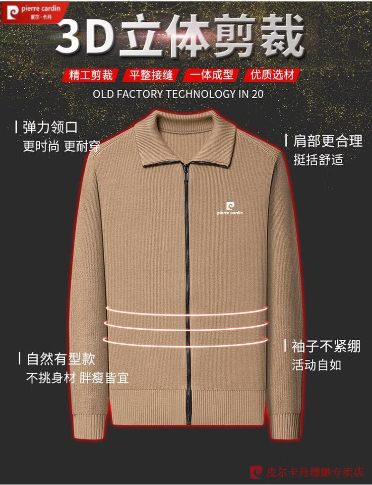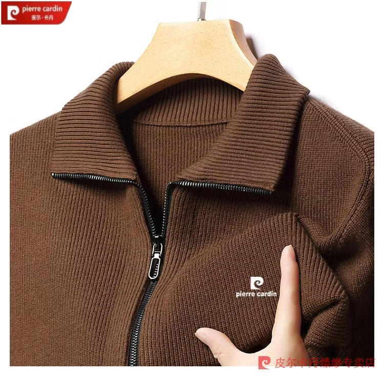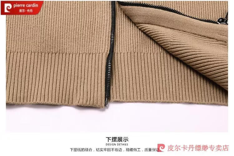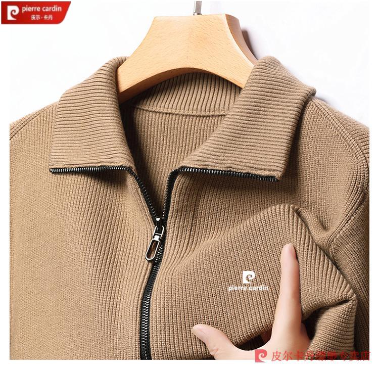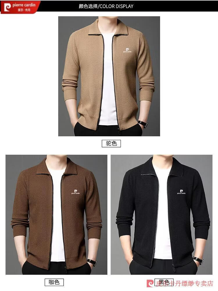 皮尔卡丹鄂尔多产纯羊绒开衫男秋冬季中年加厚翻领针织衫男士毛衣拉链外套 华驼色9276 (100%不起球) 4XL