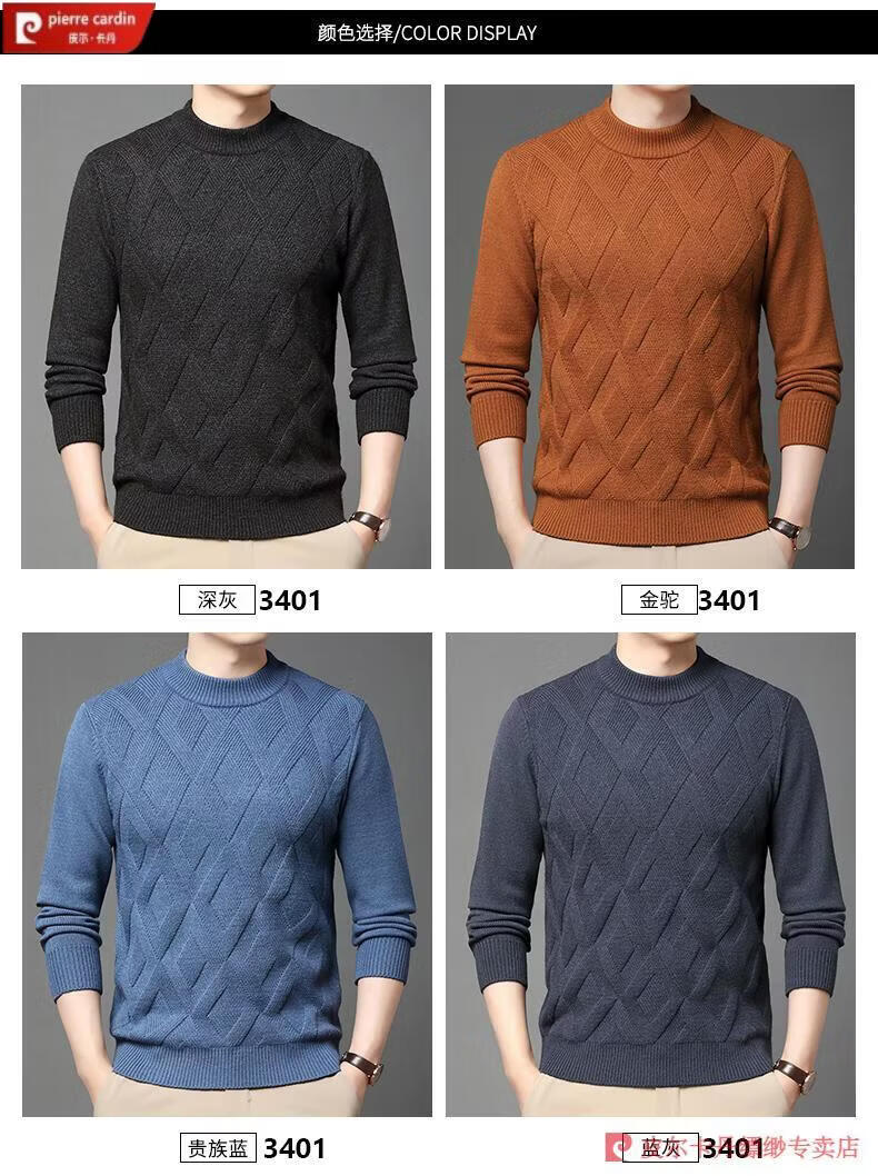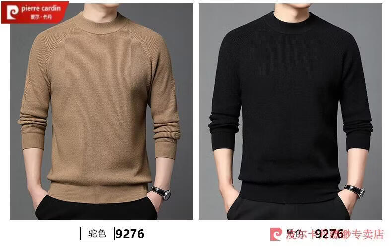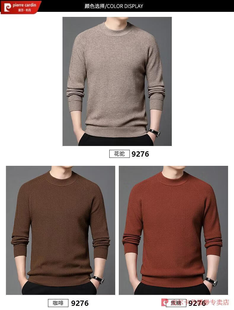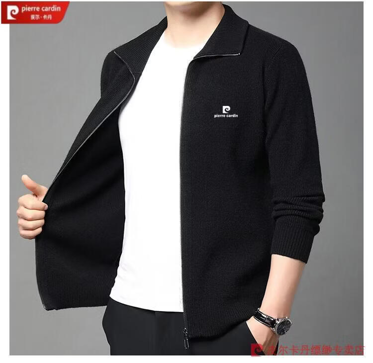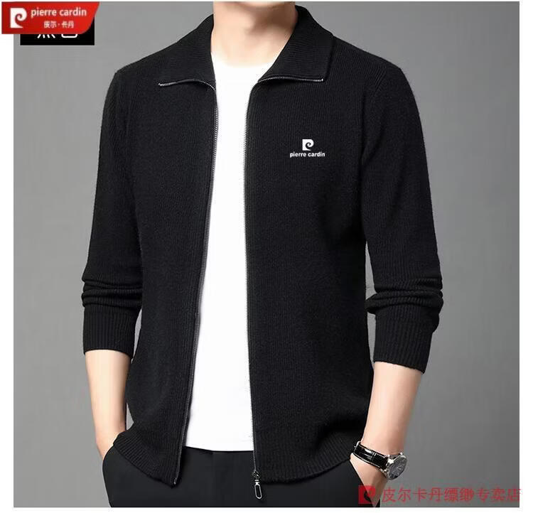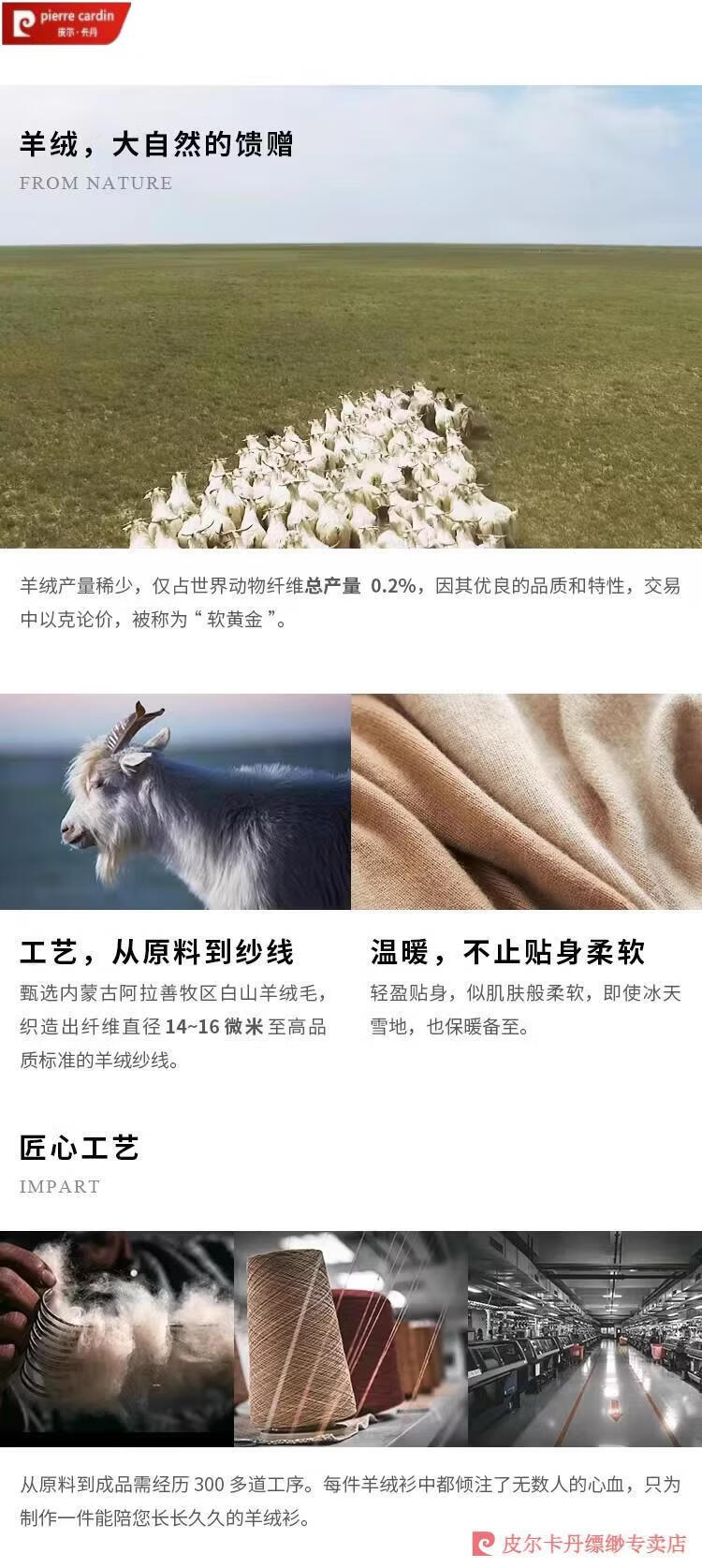 皮尔卡丹鄂尔多产纯羊绒开衫男秋冬季中年加厚翻领针织衫男士毛衣拉链外套 华驼色9276 (100%不起球) 4XL