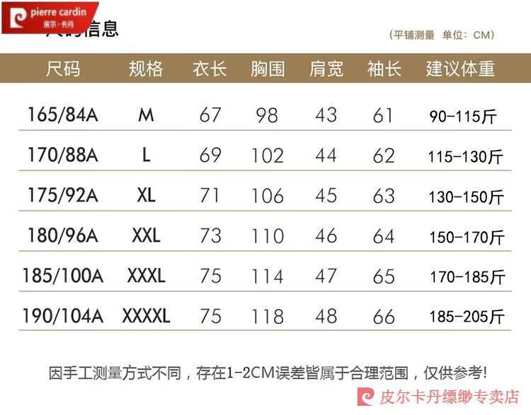 China (cm) 160-165/84-86 165-170 / 88-90 167-172 / 92-96 168-173 / 98-102 170-176 / 106-110