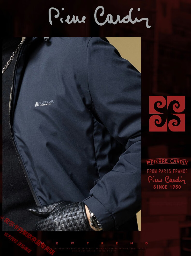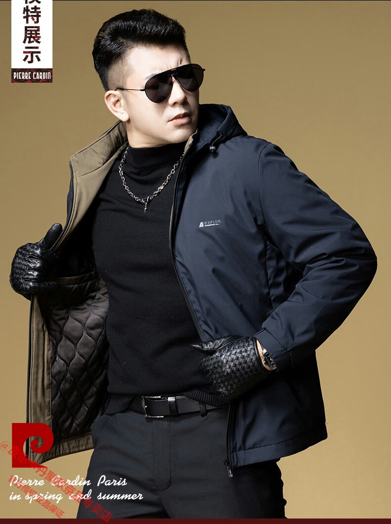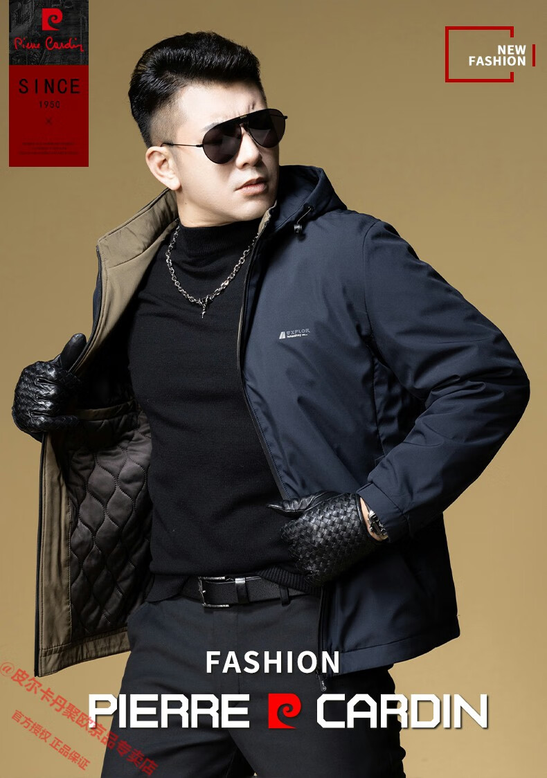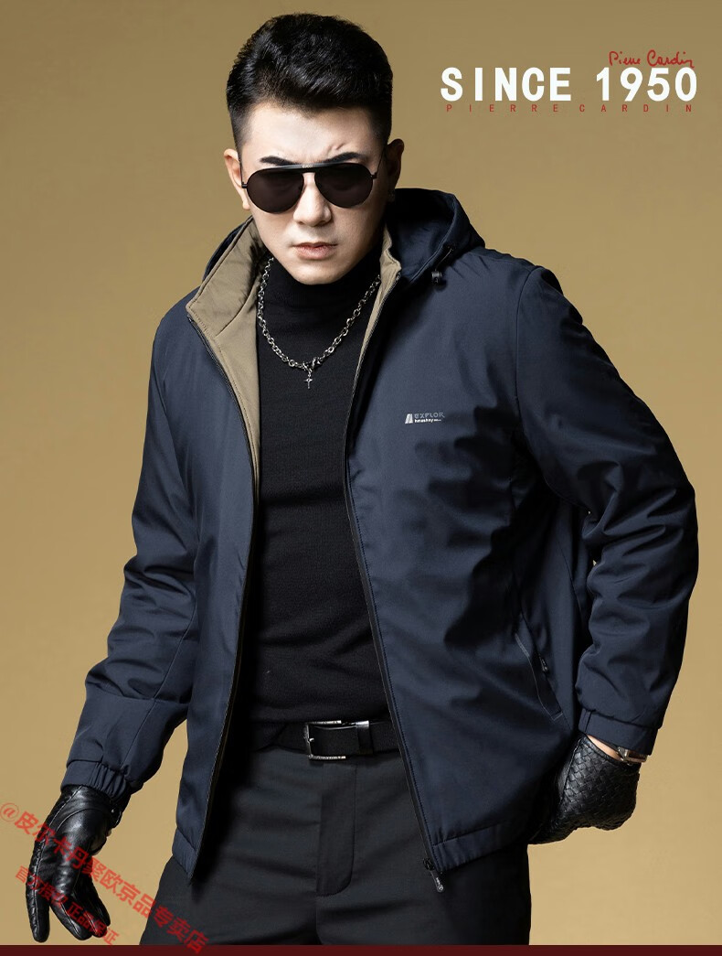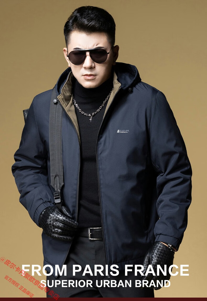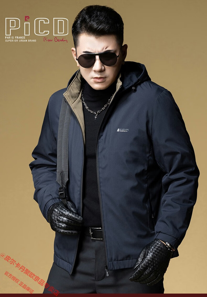 Pierre Cardin jacket men's autumn and winter new quilted thickened top loose sports casual hooded jacket for men Beston 9711 blue quilted 180/XL