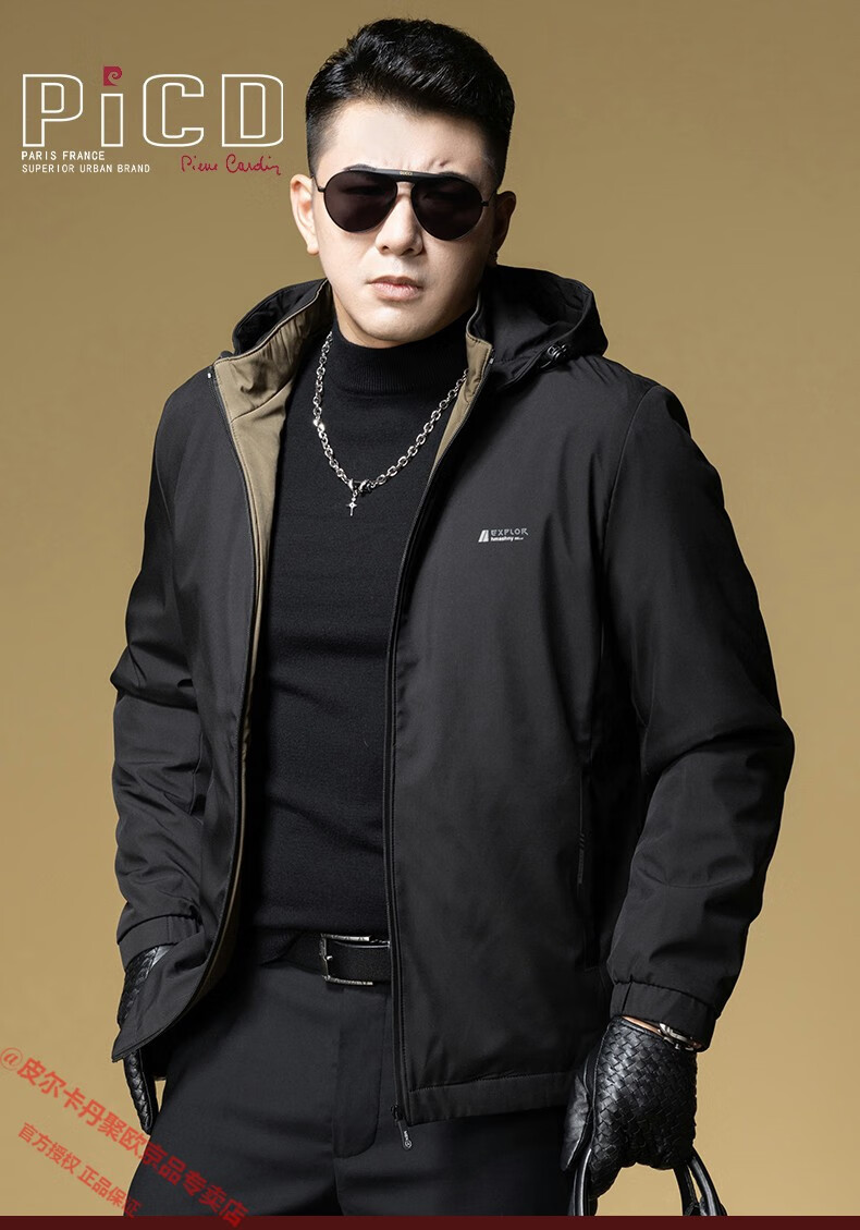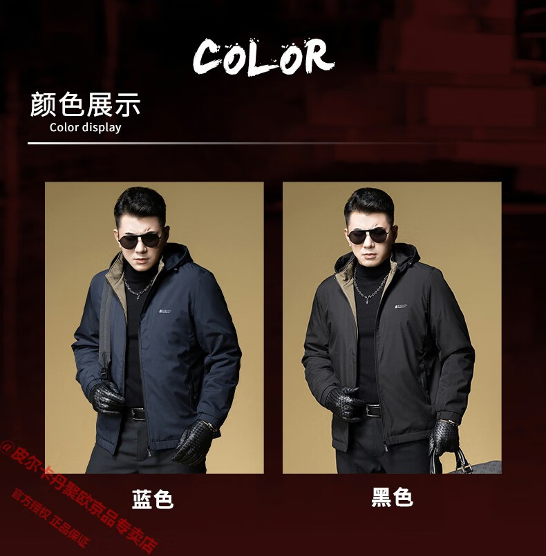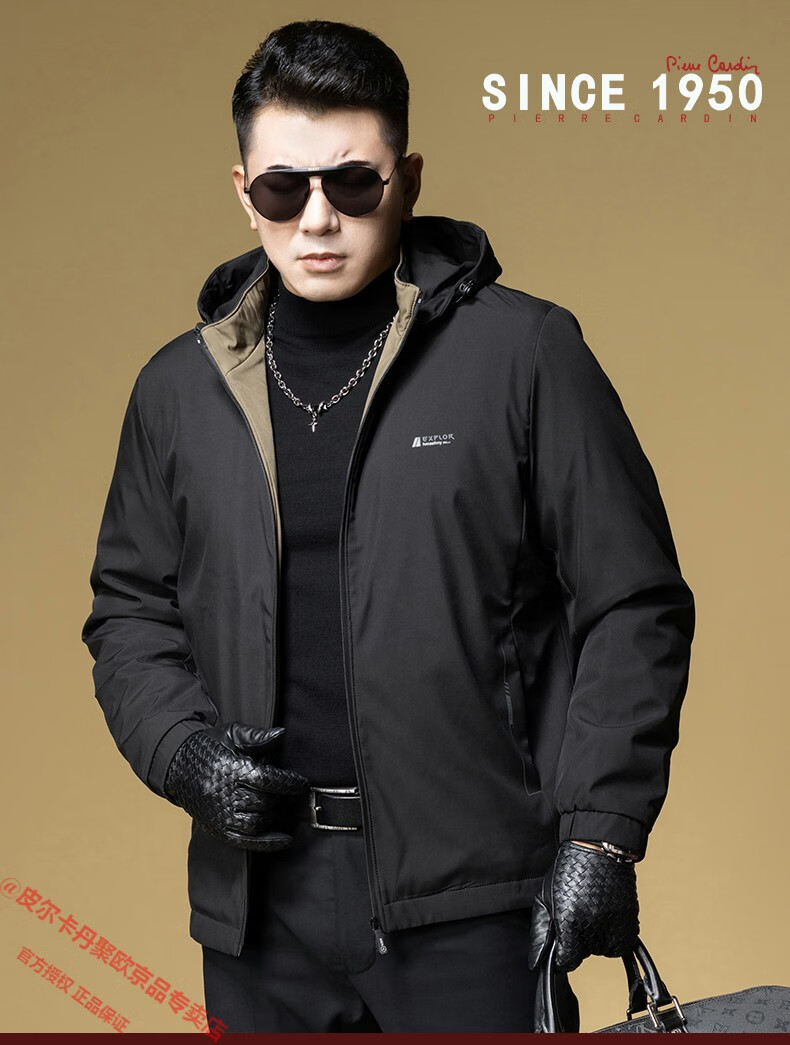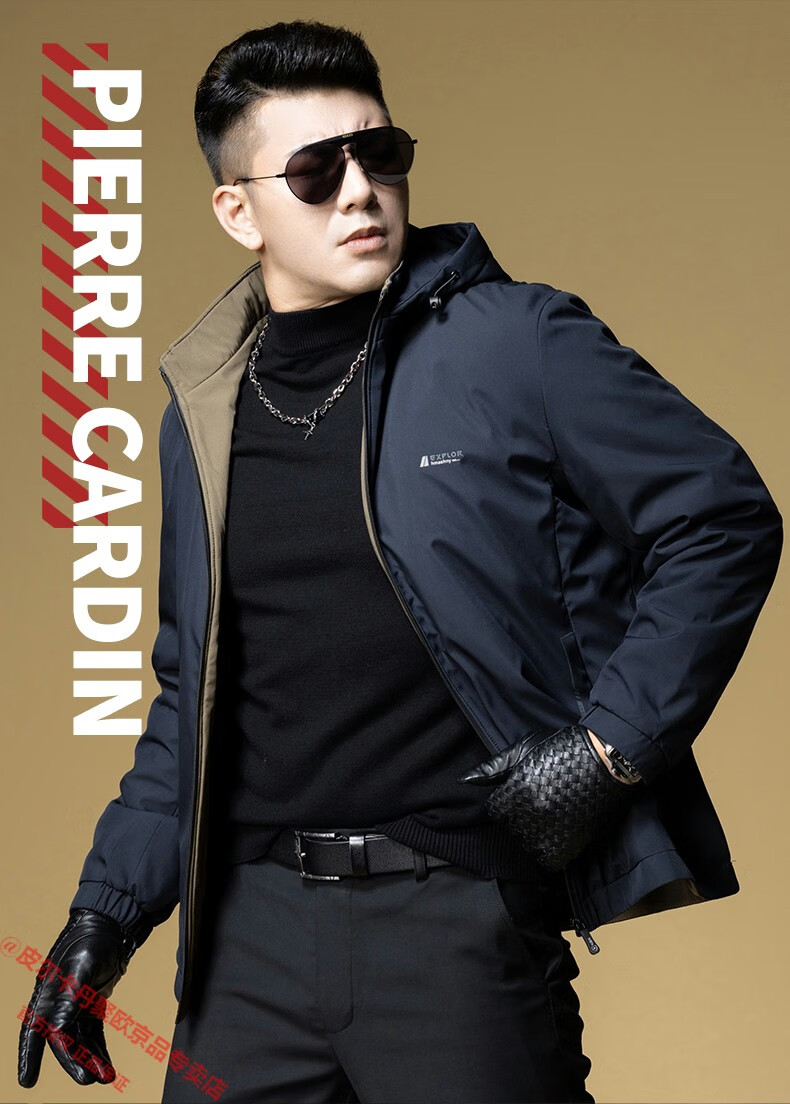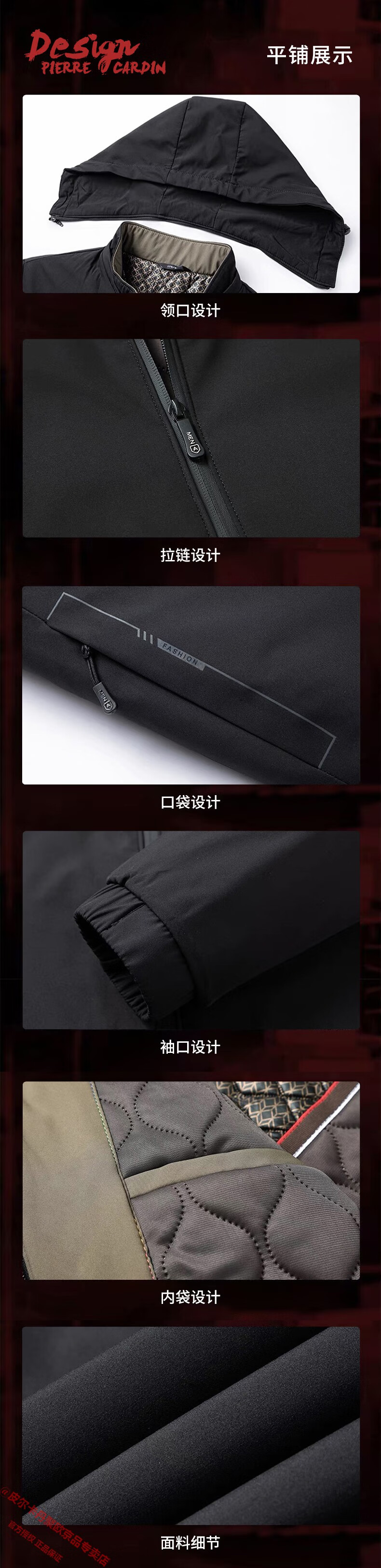 Pierre Cardin jacket men's autumn and winter new quilted thickened top loose sports casual hooded jacket for men Beston 9711 blue quilted 180/XL