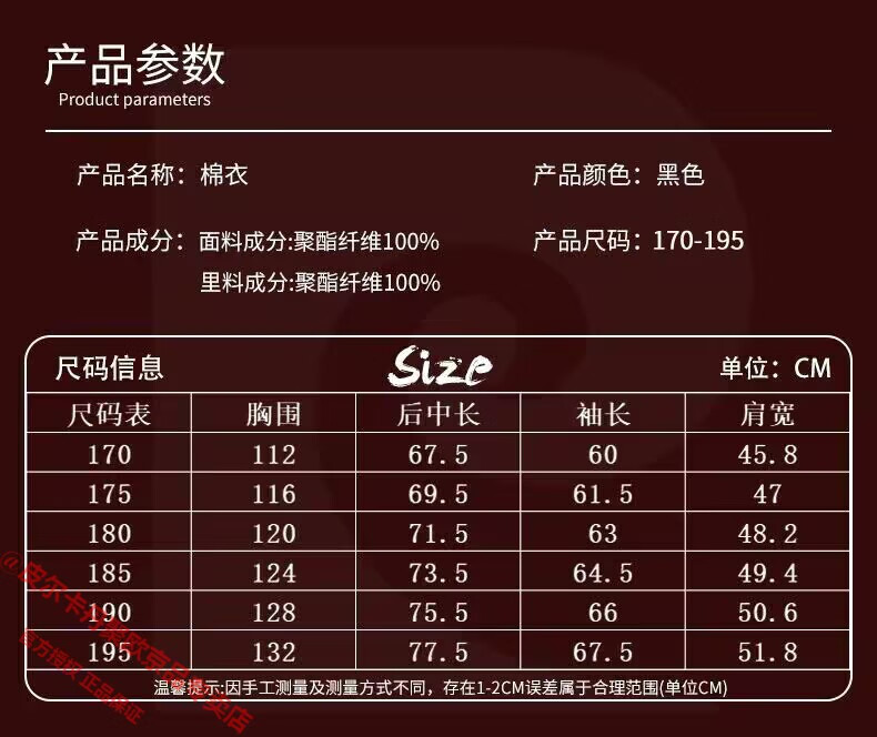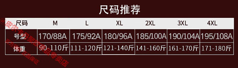 China (cm) 165 / 88-90 170 / 96-98 175 / 108-110 180 / 118-122 185 / 126-130