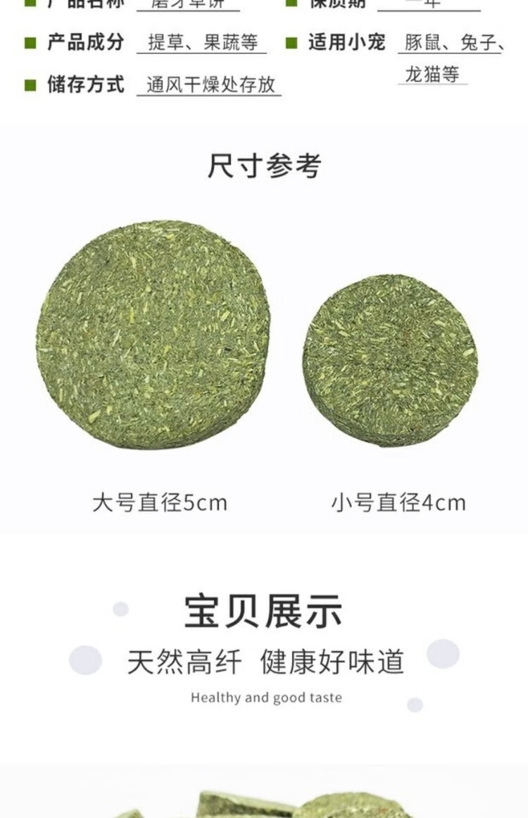 赫尔达50个兔子磨牙草饼提摩西草饼龙猫荷兰猪仓鼠磨牙棒零食草棒 50个-约675g