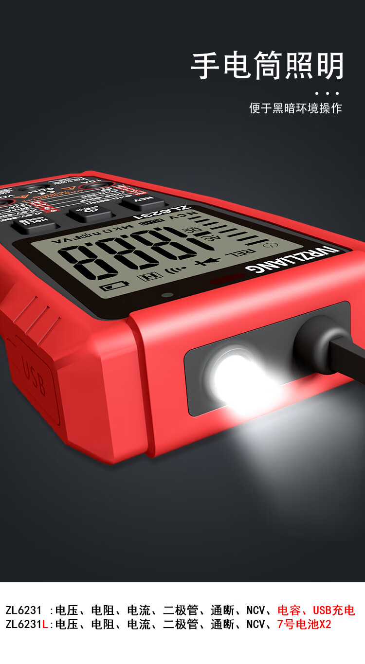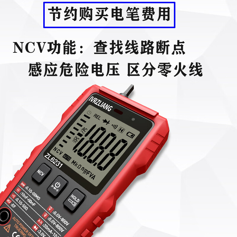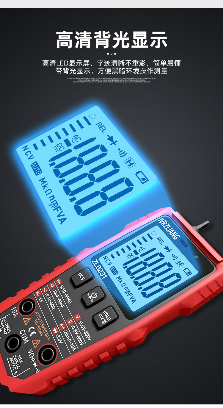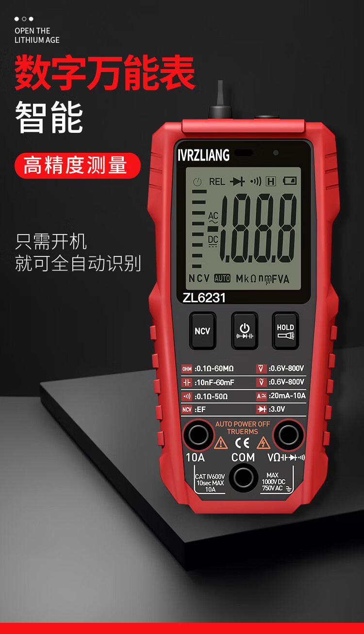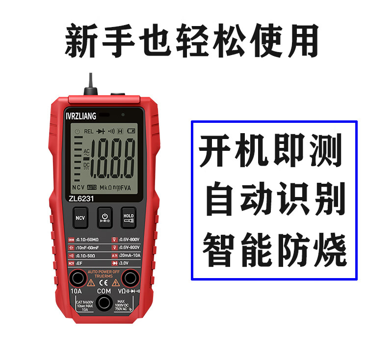 IVRZLIANG rechargeable multimeter fully automatic intelligent digital high-precision anti-burn multimeter electrician repair home shift-free rechargeable model ZL6231 standard
