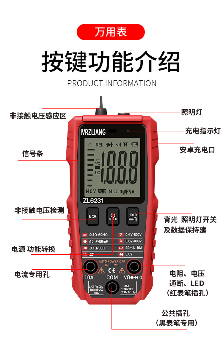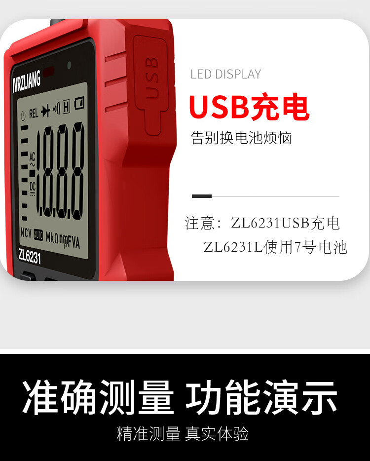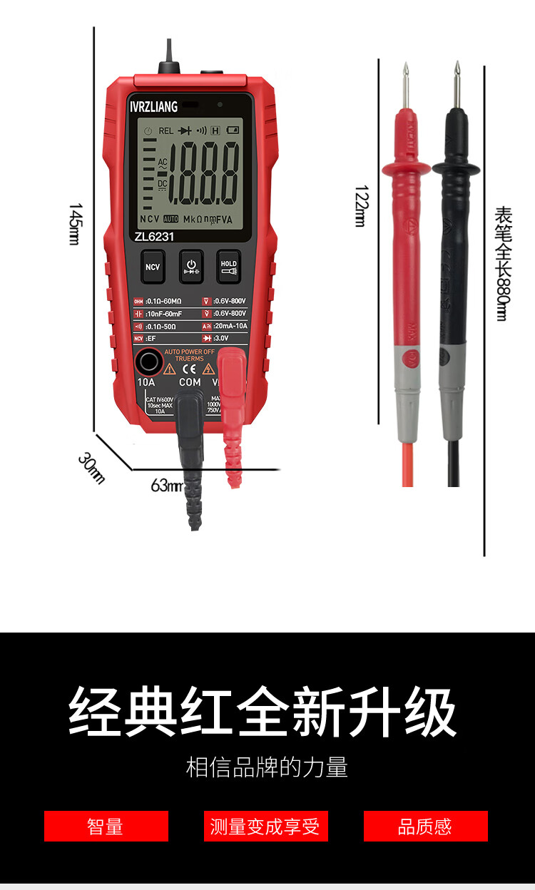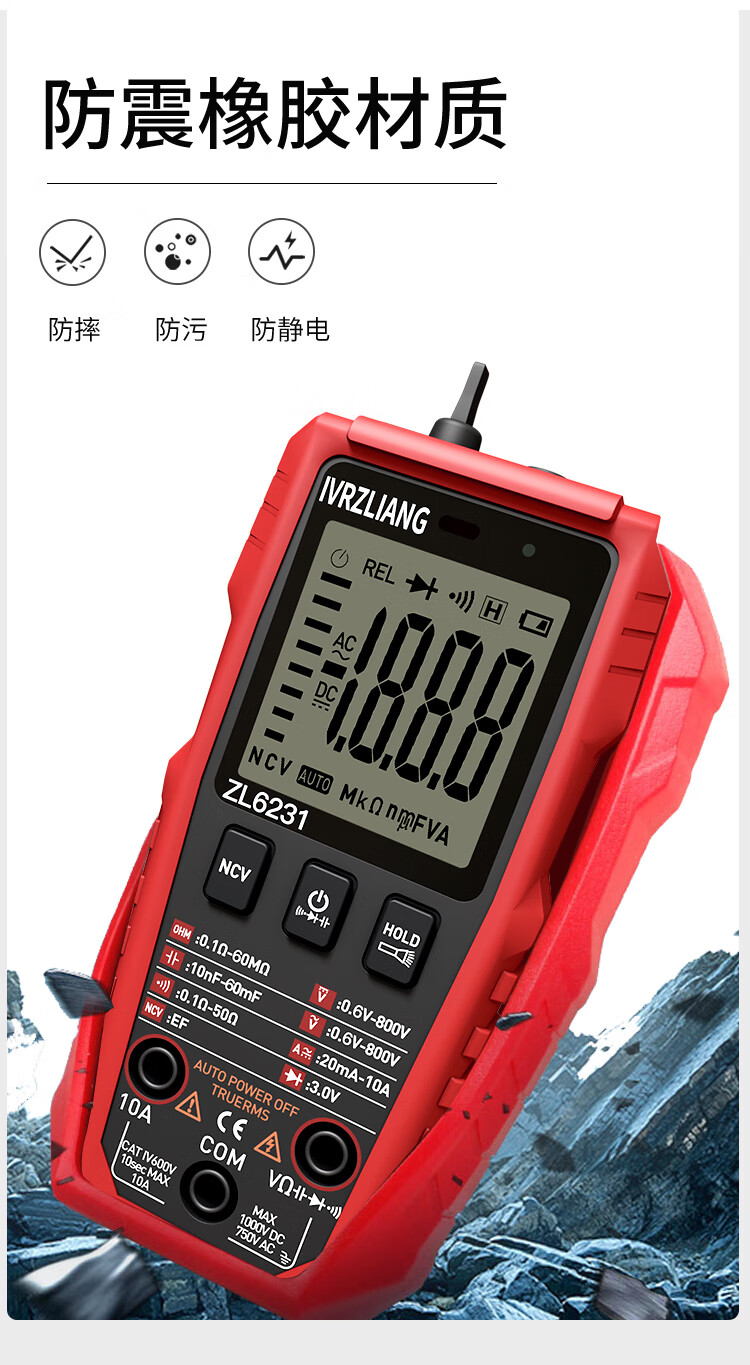 IVRZLIANG rechargeable multimeter fully automatic intelligent digital high-precision anti-burn multimeter electrician repair home shift-free rechargeable model ZL6231 standard