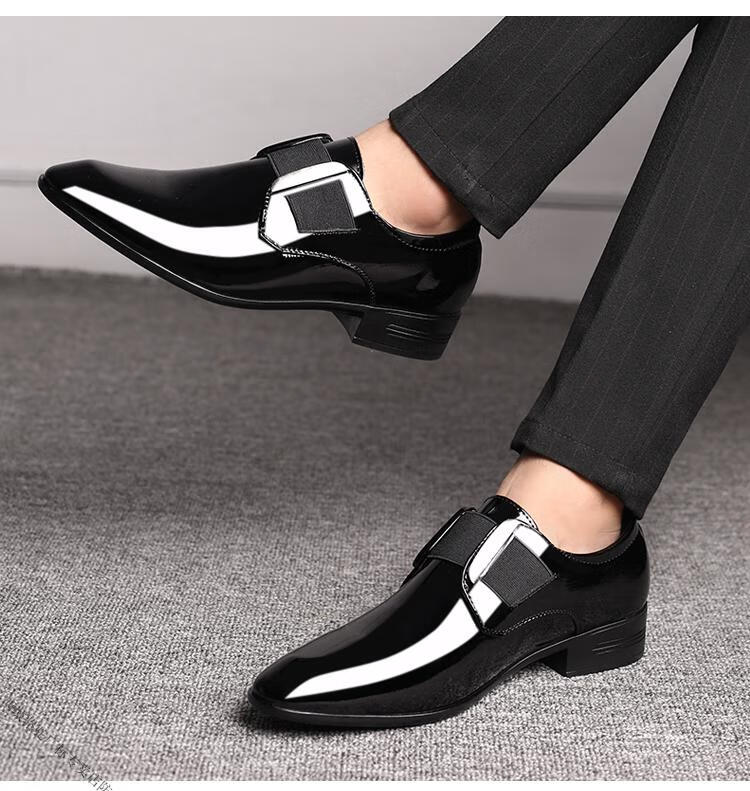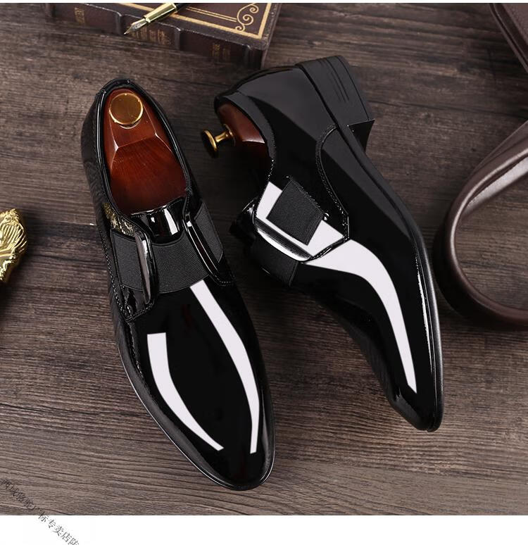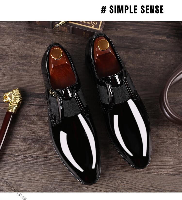 Zapatos de cuero de camello occidental Versión coreana para hombres Nuevos y versátiles zapatos casuales formales de negocios para jóvenes Zapatos de boda de moda británica con punta puntiaguda para hombres Negro brillante 9712-Camel Marca oficial Sitio web oficial Bandera 38