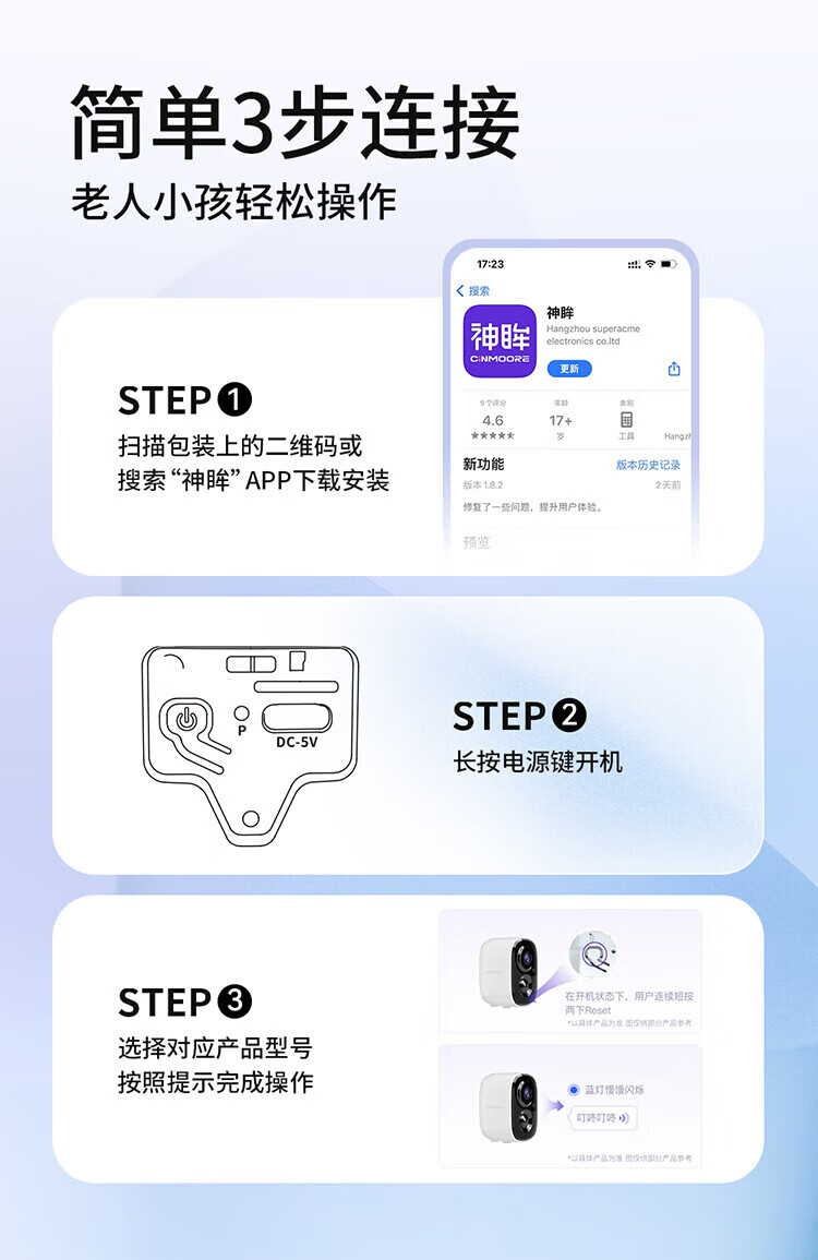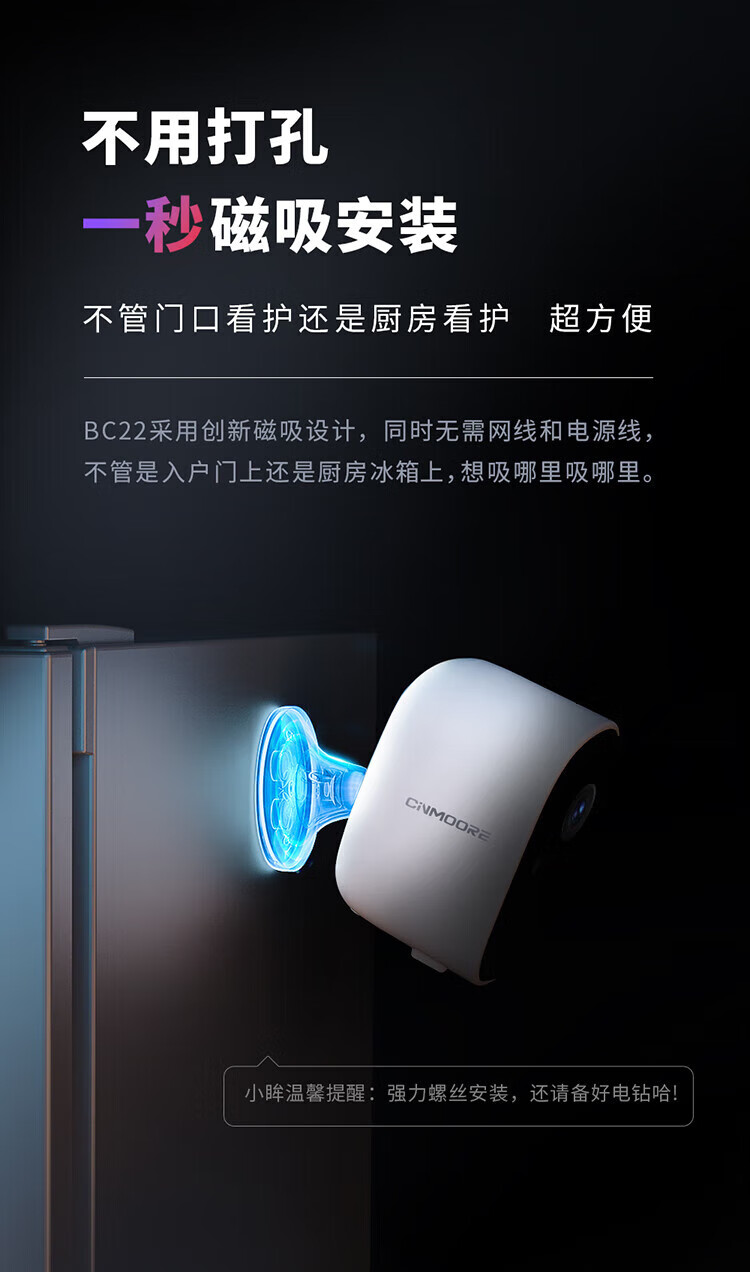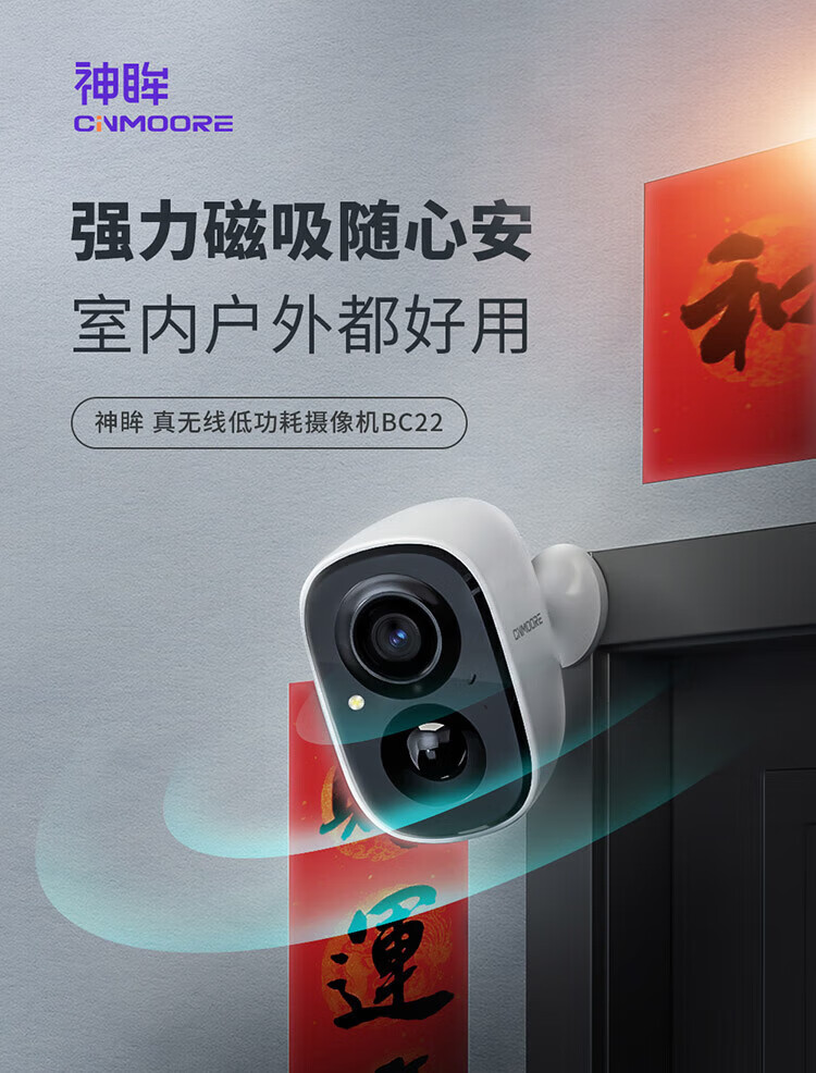 神眸门口监控楼道摄像头 免插电监控器 无线wifi家用安防室内电池充电室外高清手机远程防盗免打孔BC22 经典款BC22-白色(性价比优选) 64G