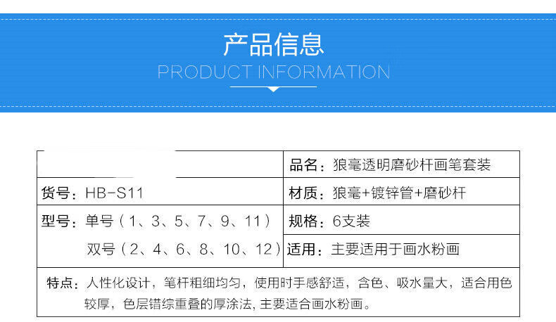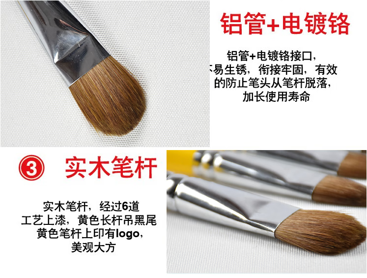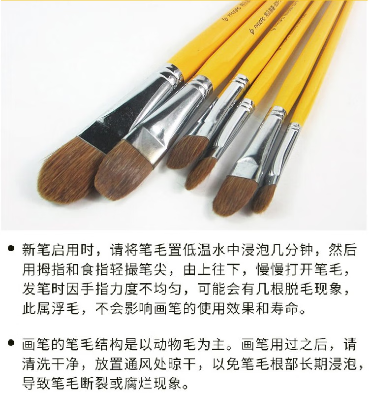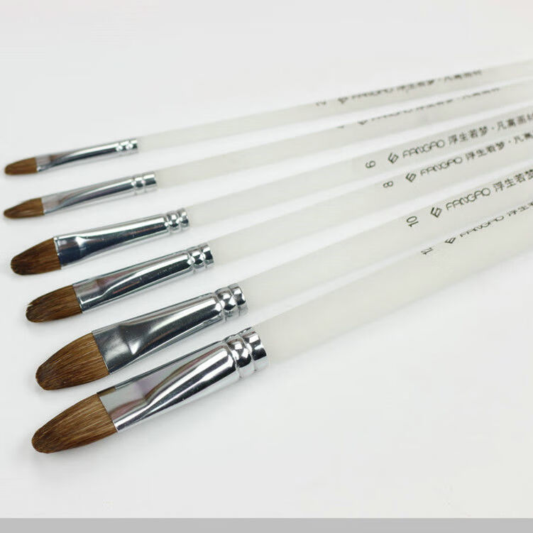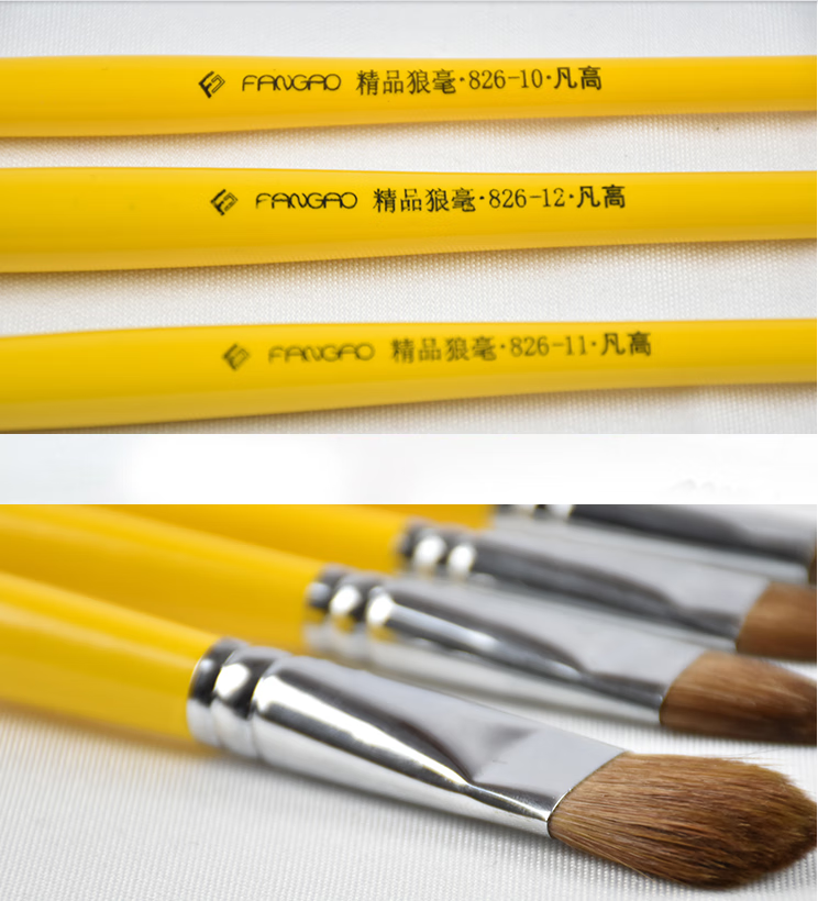 单支86狼毫水粉画笔梵高透明磨砂杆水粉水彩画笔丙烯油画笔 826黄杆画笔【单6号】5支