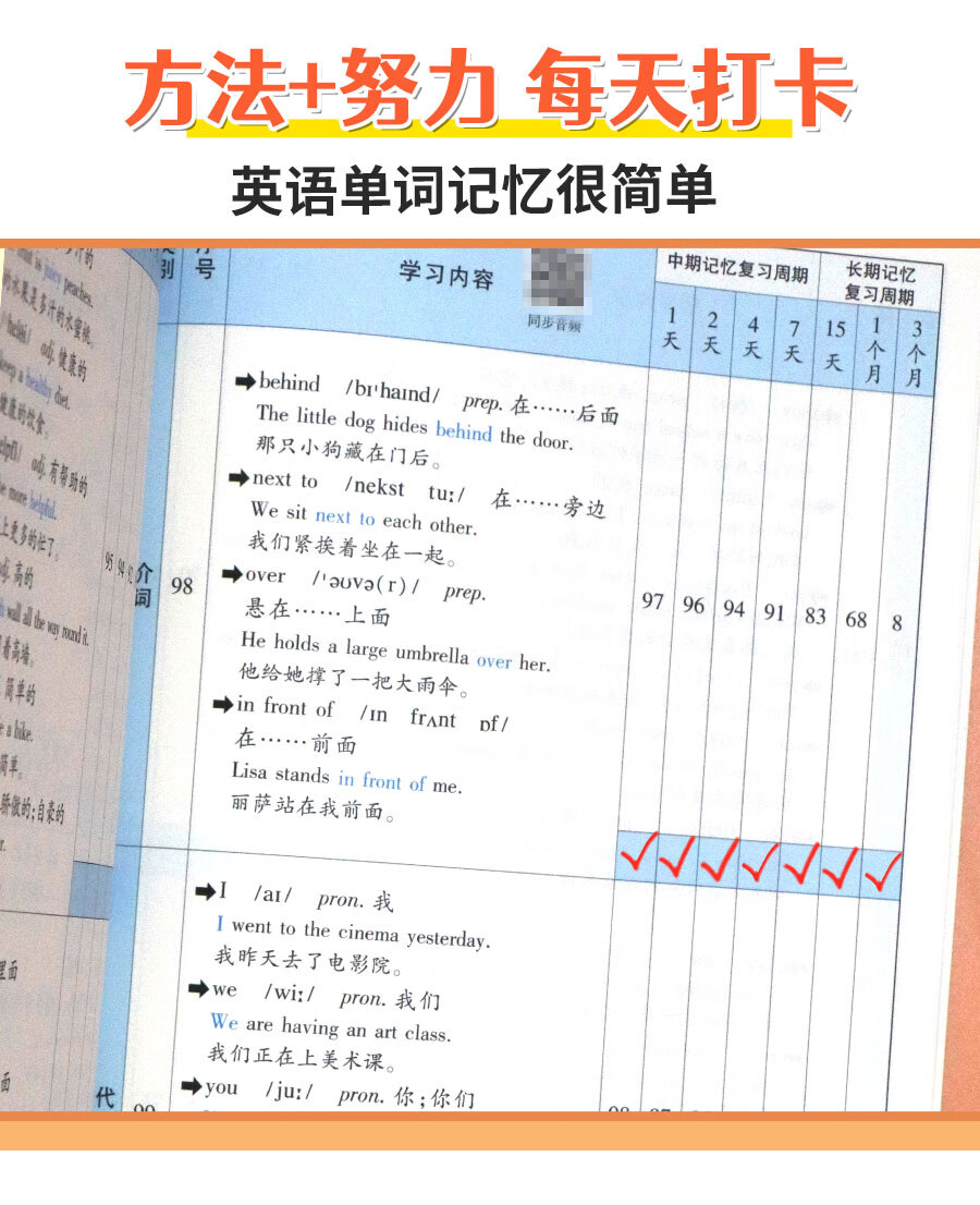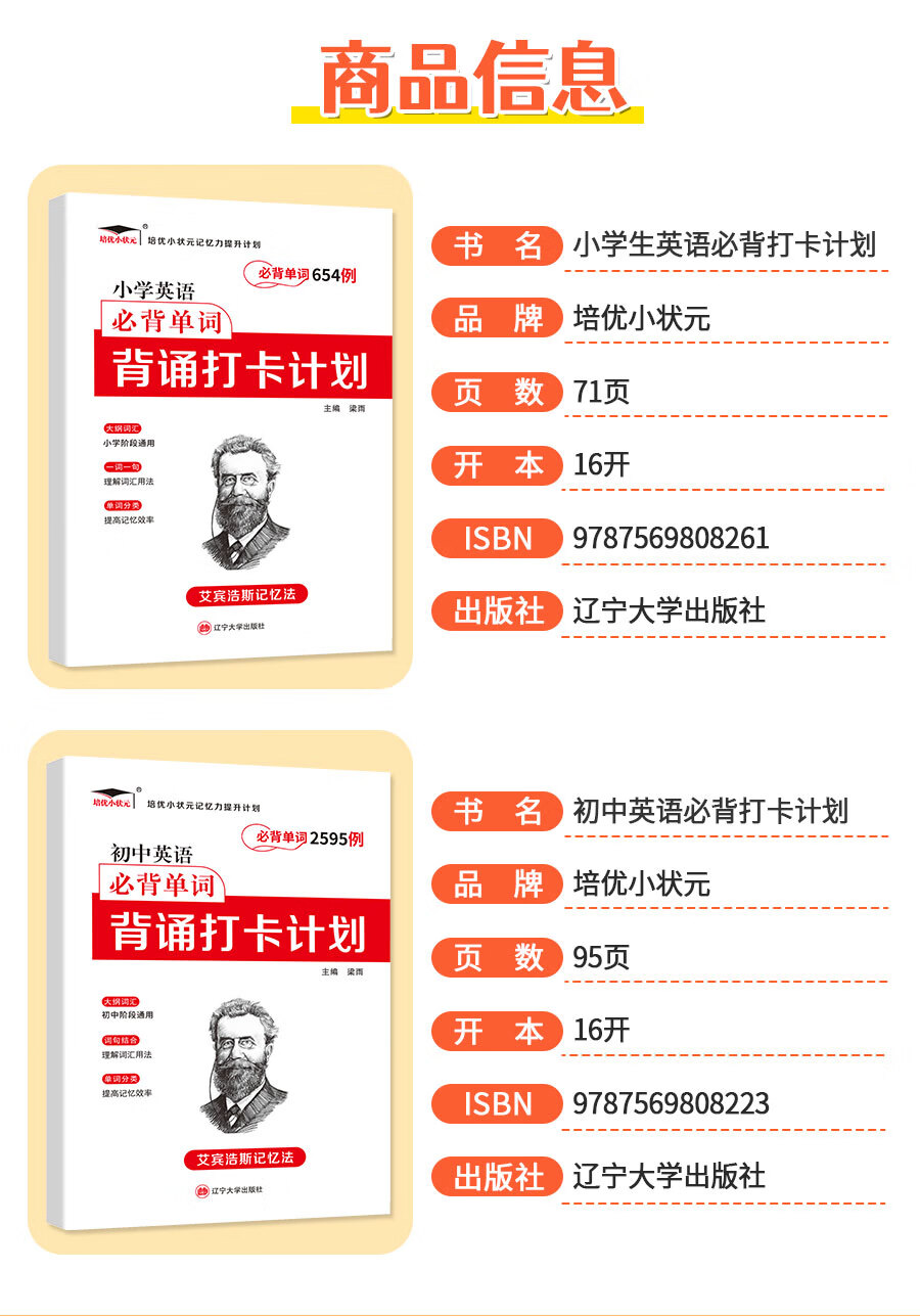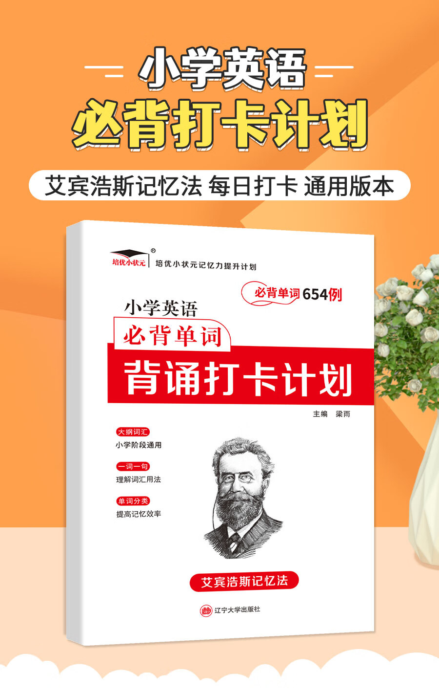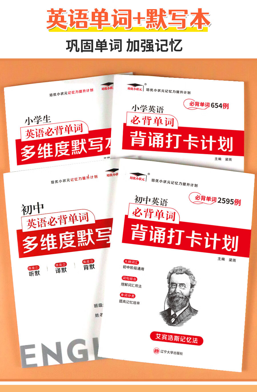 Peiyou Xiaozhuangyuan Grundschule, Mittelstufe, Englisch muss auswendig gelernt werden, 2595 Beispiele für Vokabeln, Wörter auswendig lernen, Schlagplan, Ebbinghaus-Vergessenskurve, Gedächtnismethode, Wortbuch, siebte Klasse, Grundschule, Mittelstufe, allgemeines englisches Vokabular, tägliches Üben, Auswendiglernen, Artefakt, 654 Beispiele für englische Wörter der Grundschule + mehrdimensionales Diktatbuch (insgesamt 2 Bücher), Mittelstufe, allgemein