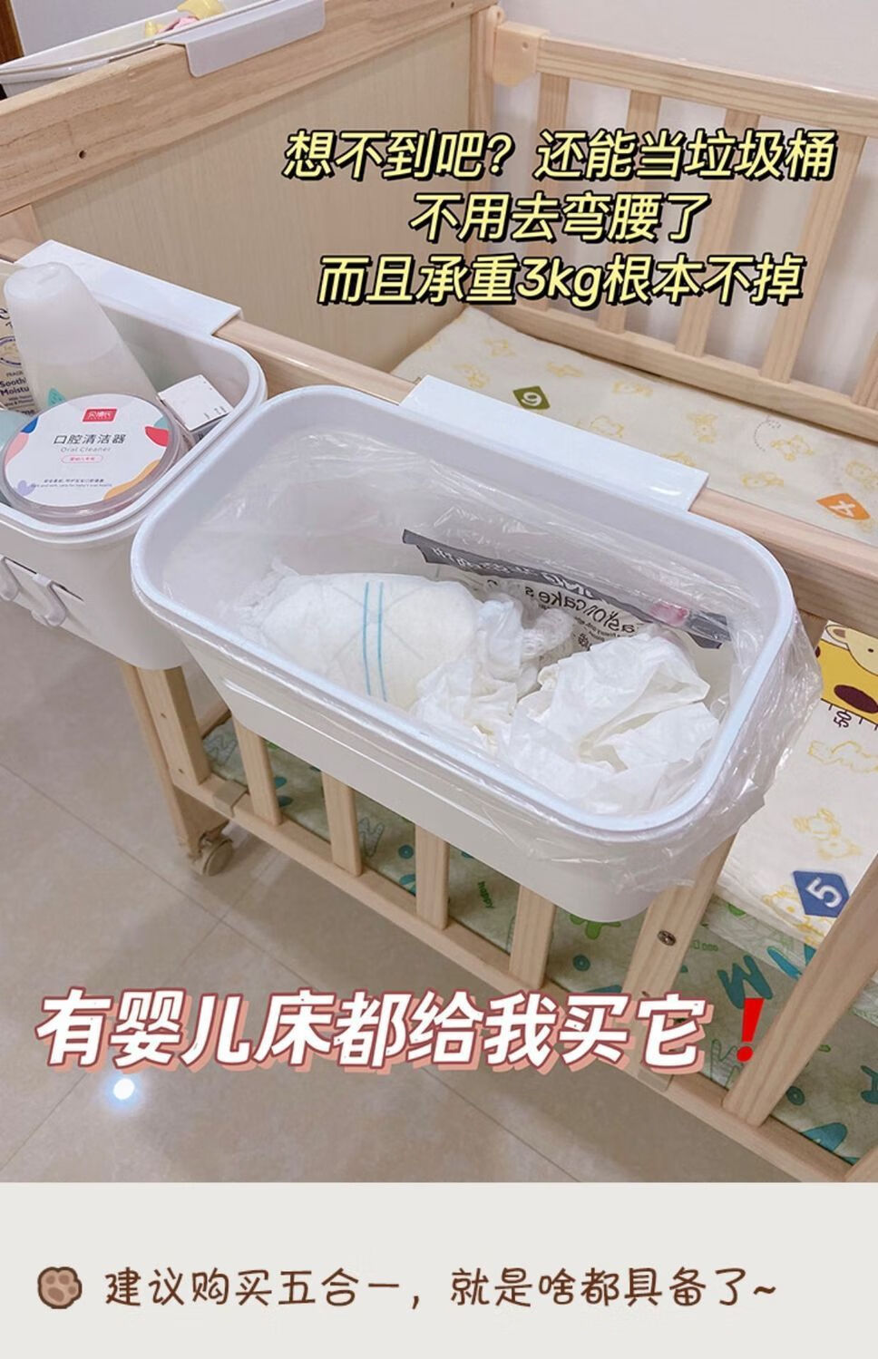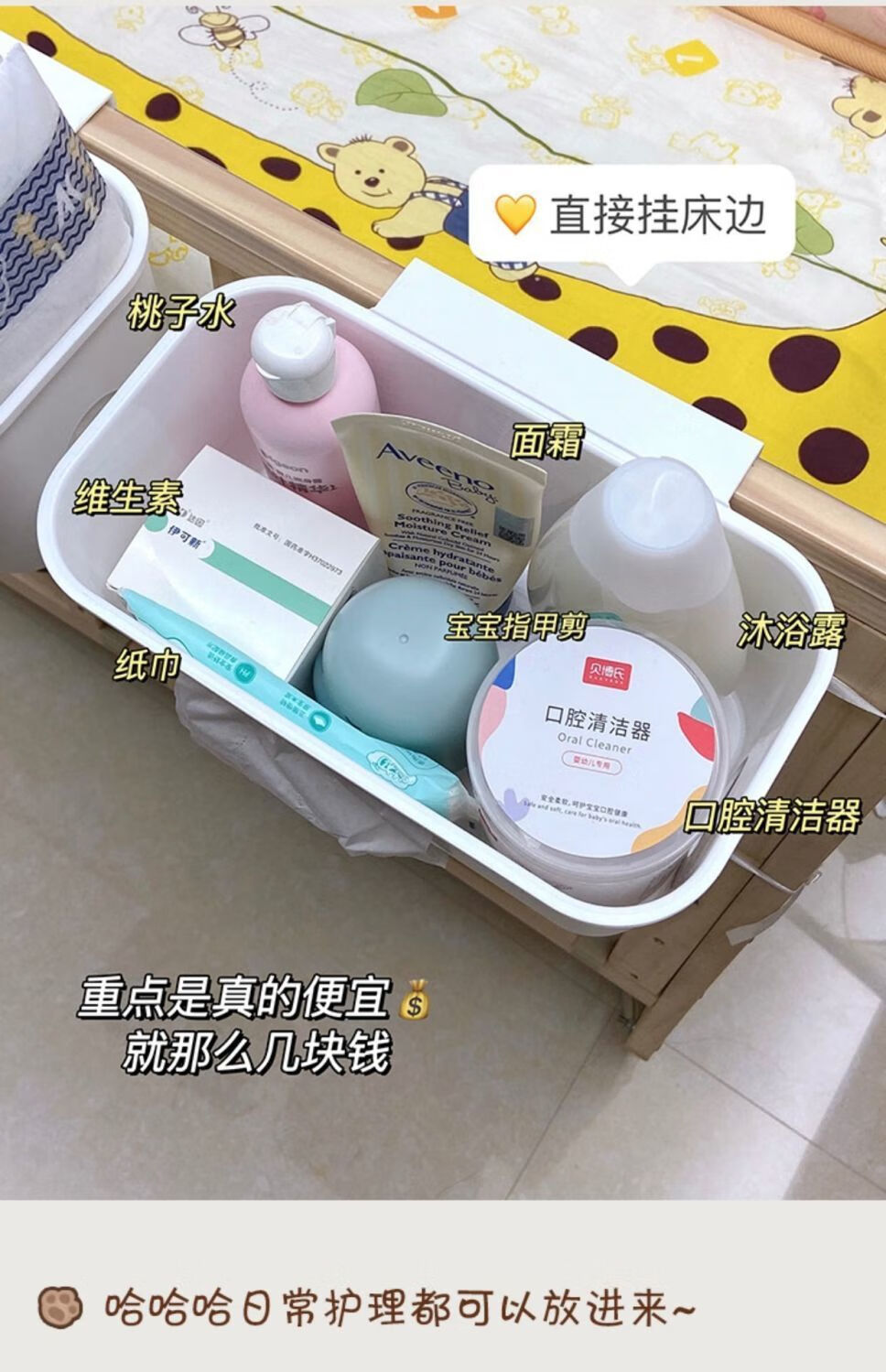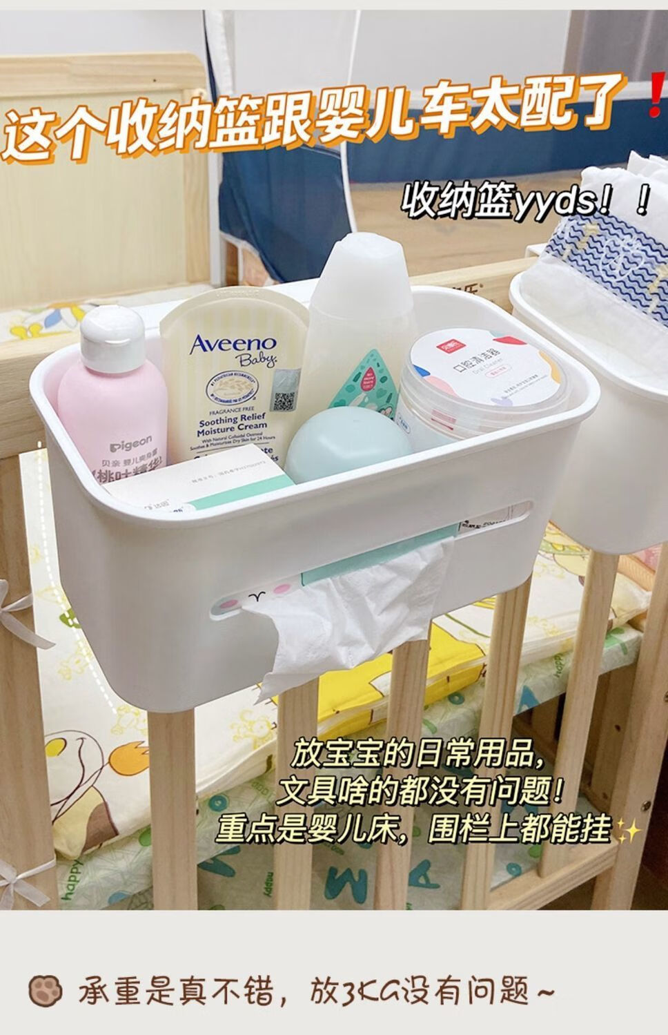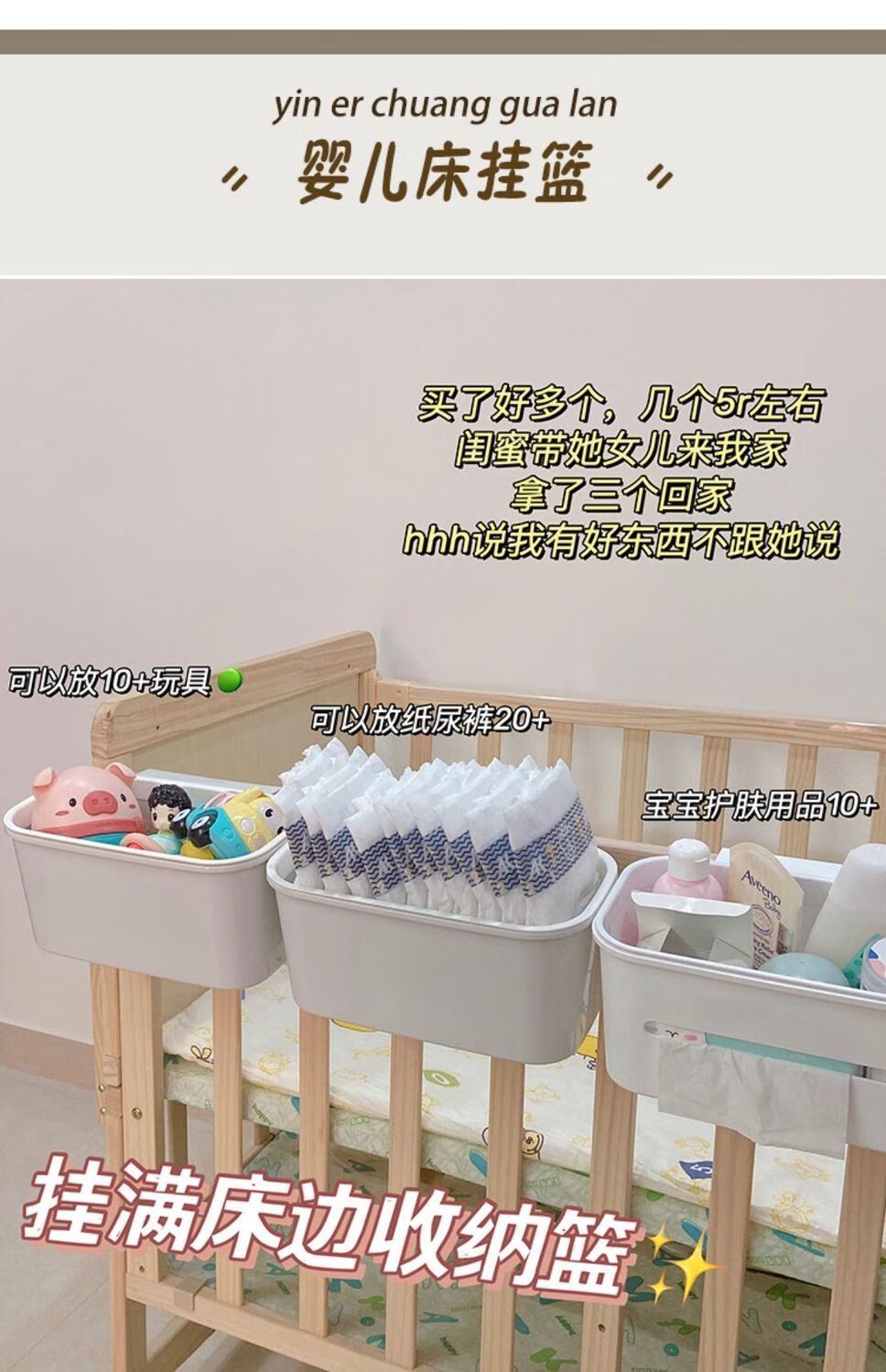 床边挂篮床头置物架婴儿床挂收纳宝宝尿不湿挂袋围栏尿布台收纳盒 多功能挂篮