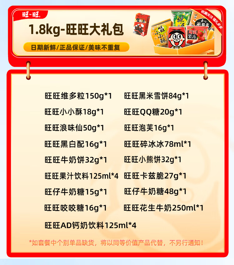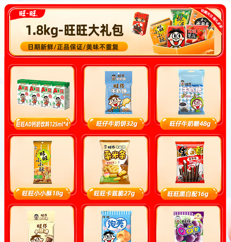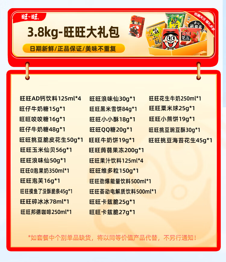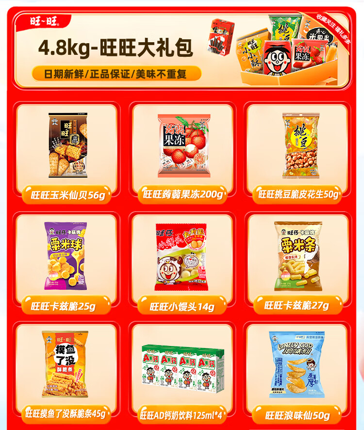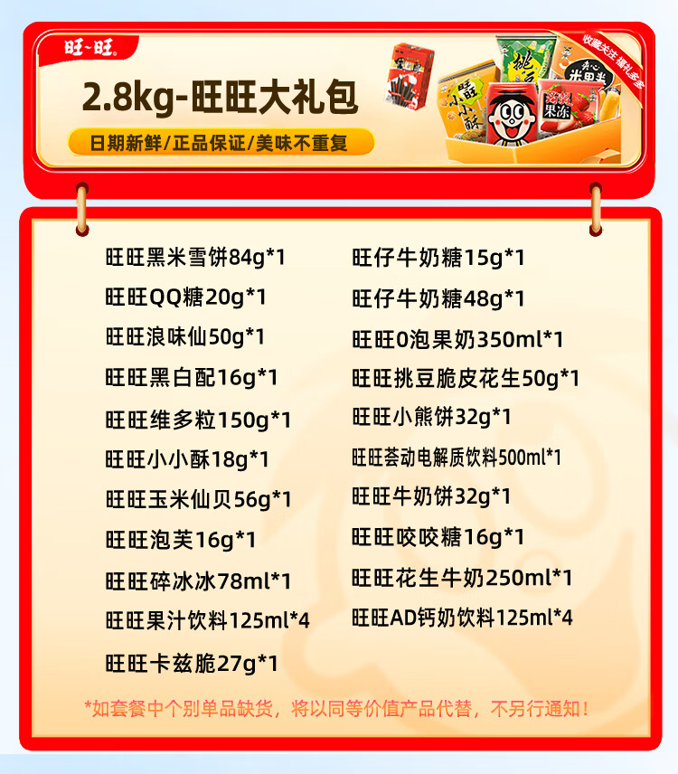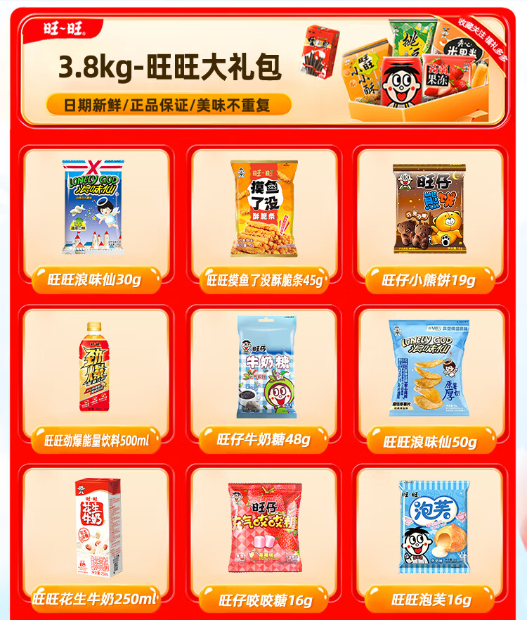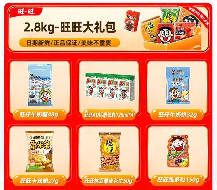 Want Want Giant Gift Bag 2.8kg Casual Snack Gift Pack Gift Box Gift Company Group Buying Gift New Year’s Gift New Want Want Classic Extra Large Gift Bag 3.8kg