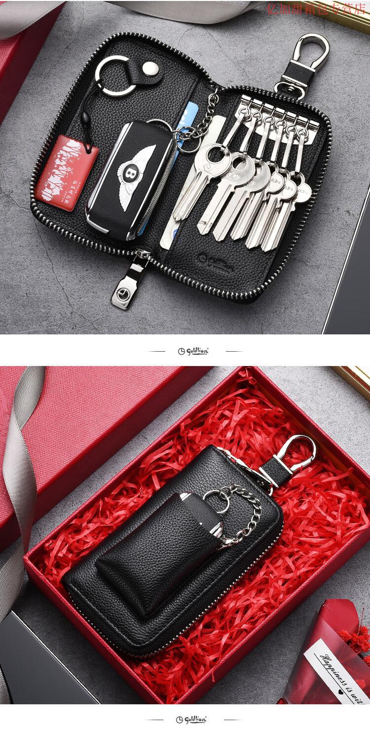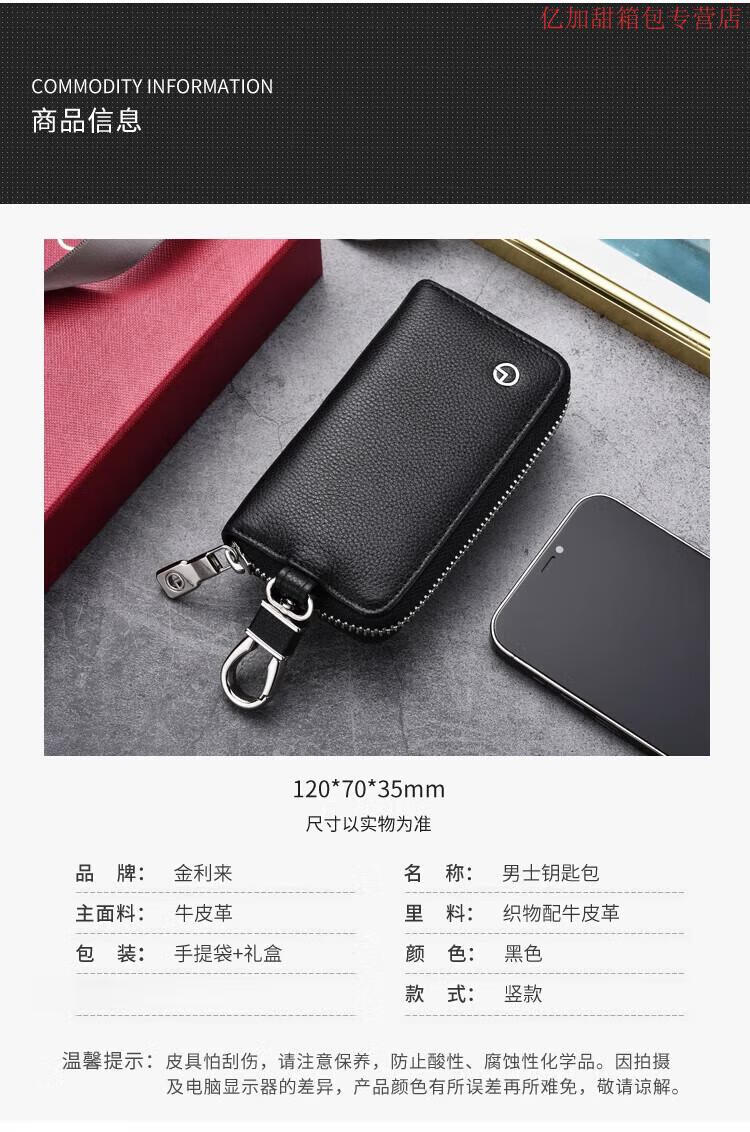 金利来官方旗舰真皮钥匙包男新款拉链软牛皮多功能腰挂男士汽车锁匙包潮 黑色