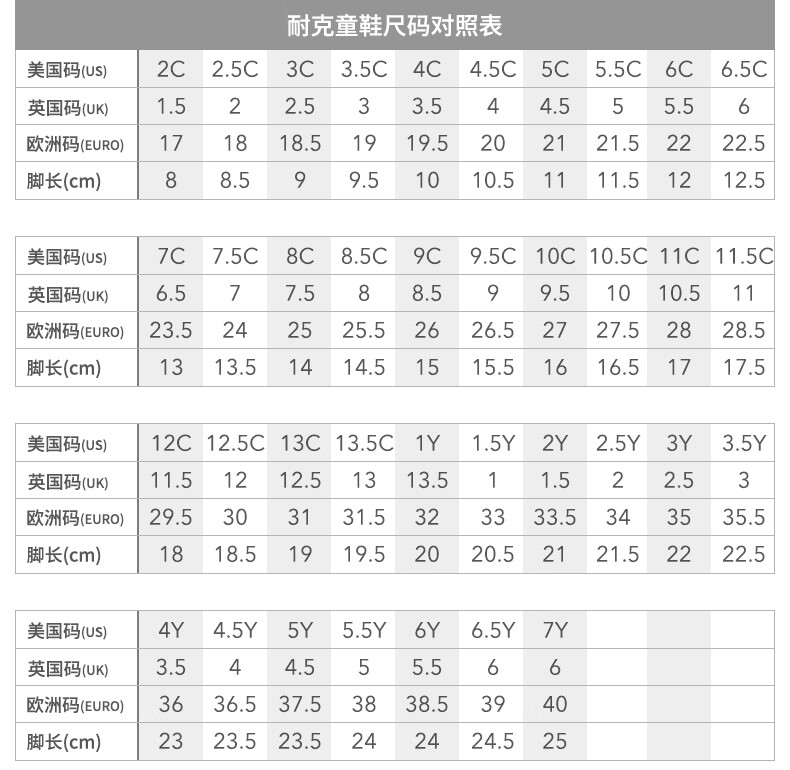 China (cm) 36 - 37 38 - 39 40 - 42 43 - 44 45 - 47