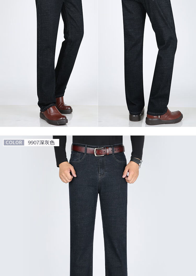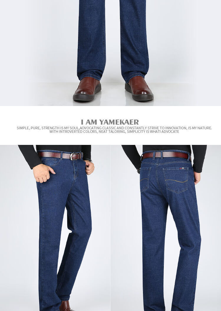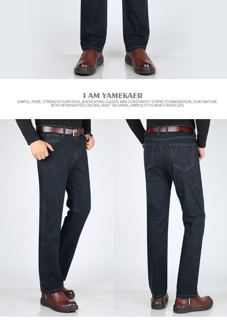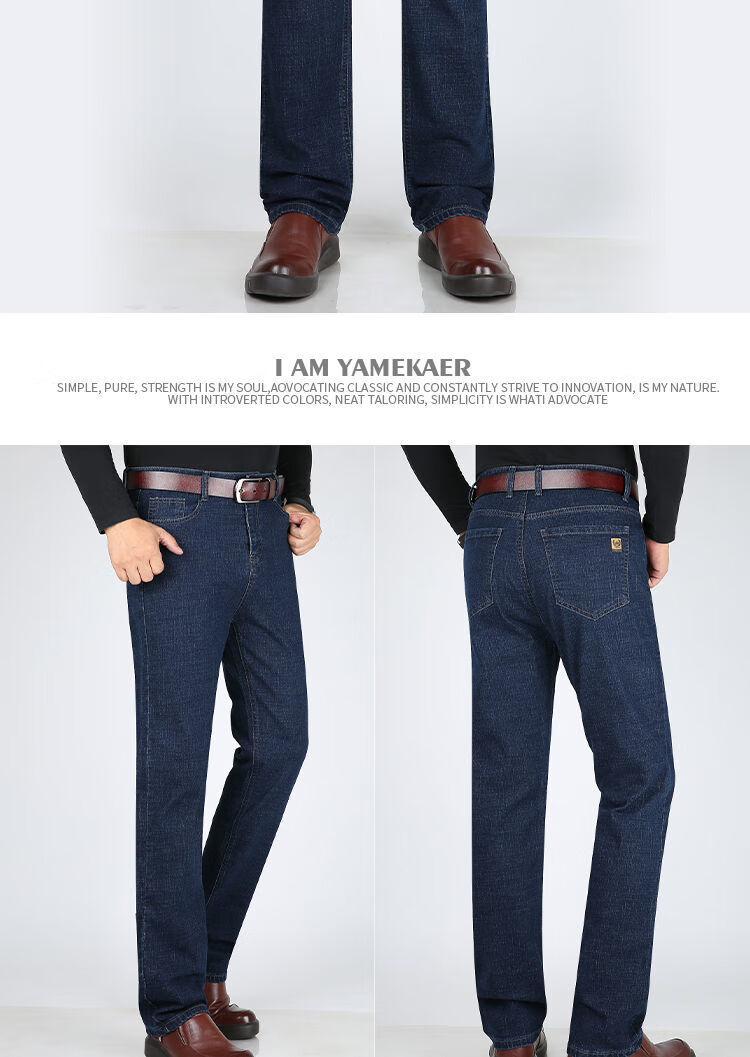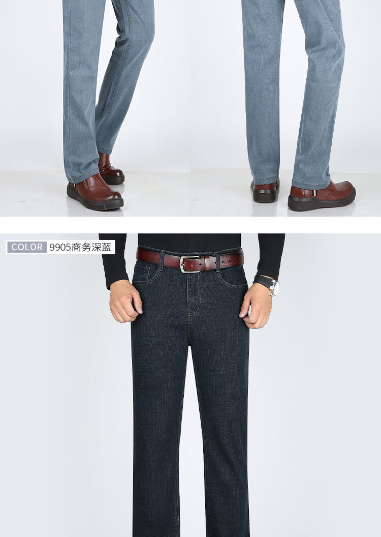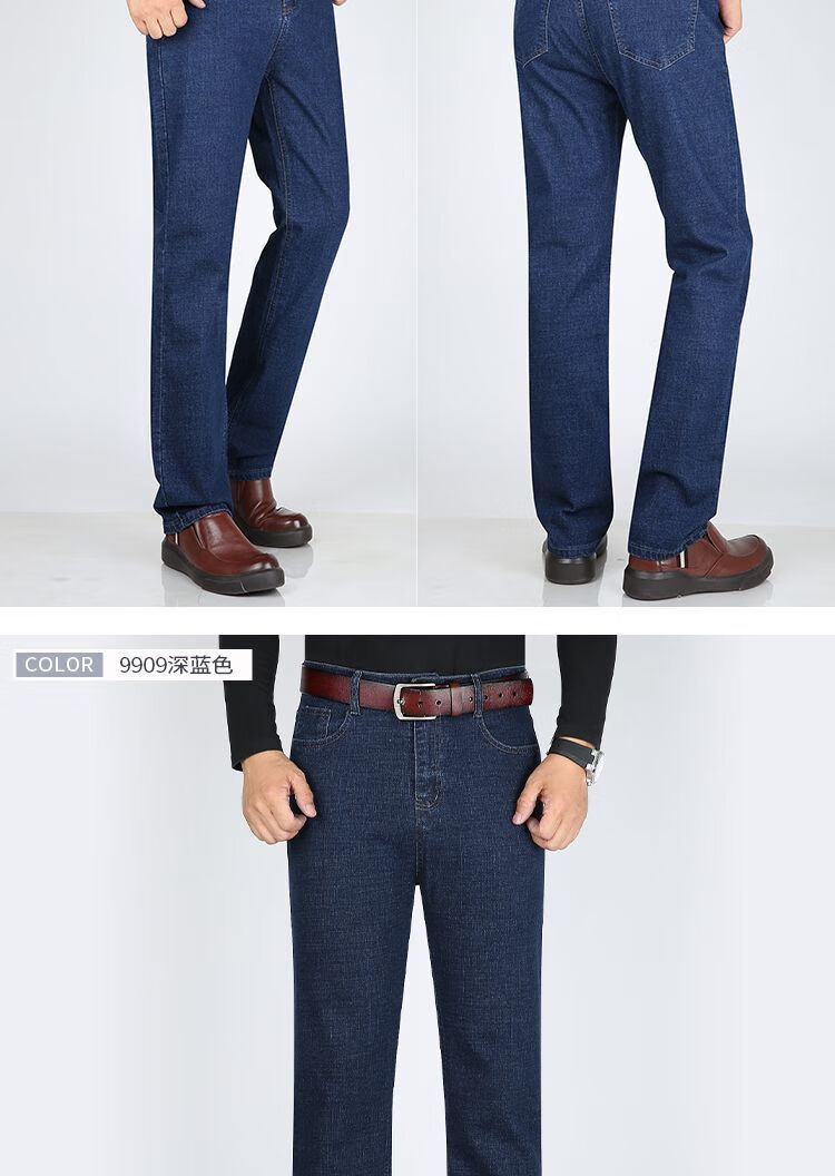 Playboy-Jeans für Herren, Frühling und Herbst, verschleißfest, dehnbar, hohe Taille, locker, vielseitig, gerade Hose für Jung und Mittelalter, Business-Freizeithose, lange Hose 9905, Business-Dunkelblau, Frühling und Herbst, kein Samt, dick 31, Taille 2 Fuß 4, 110–120 Jin Jin entspricht 0,5 kg