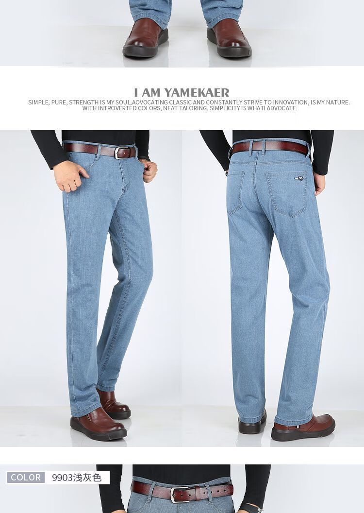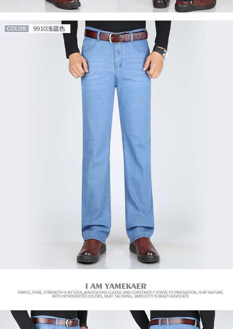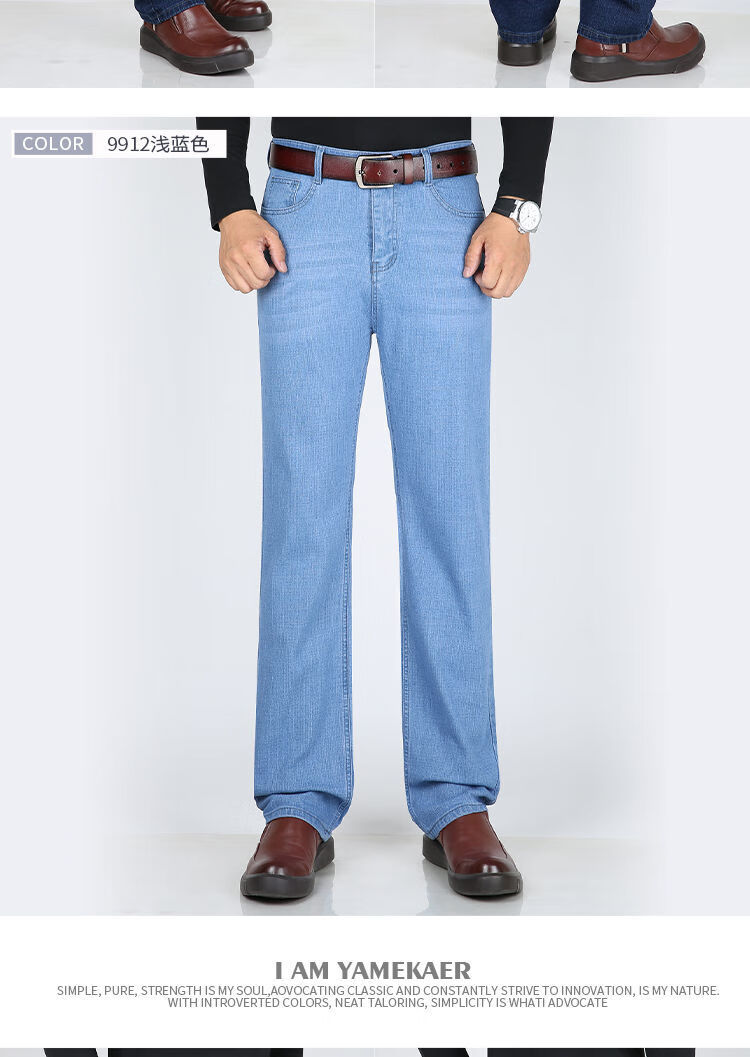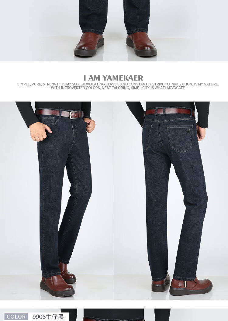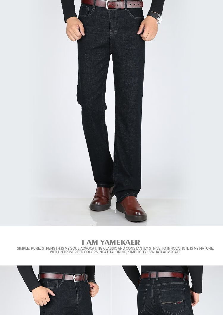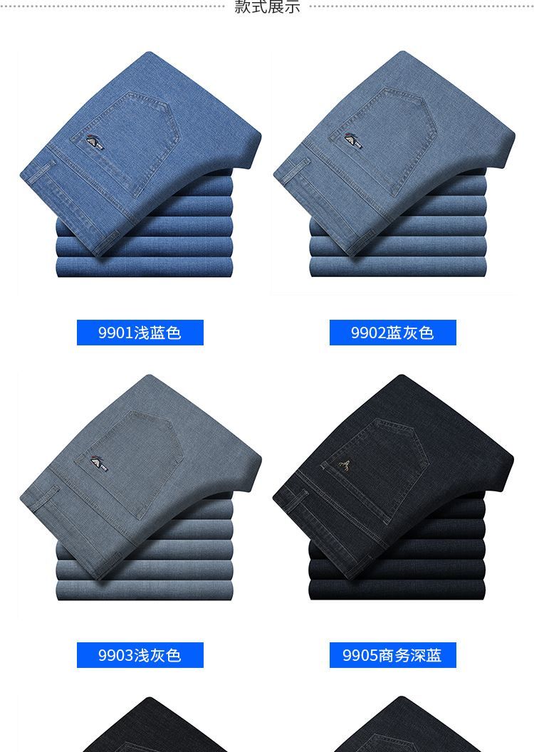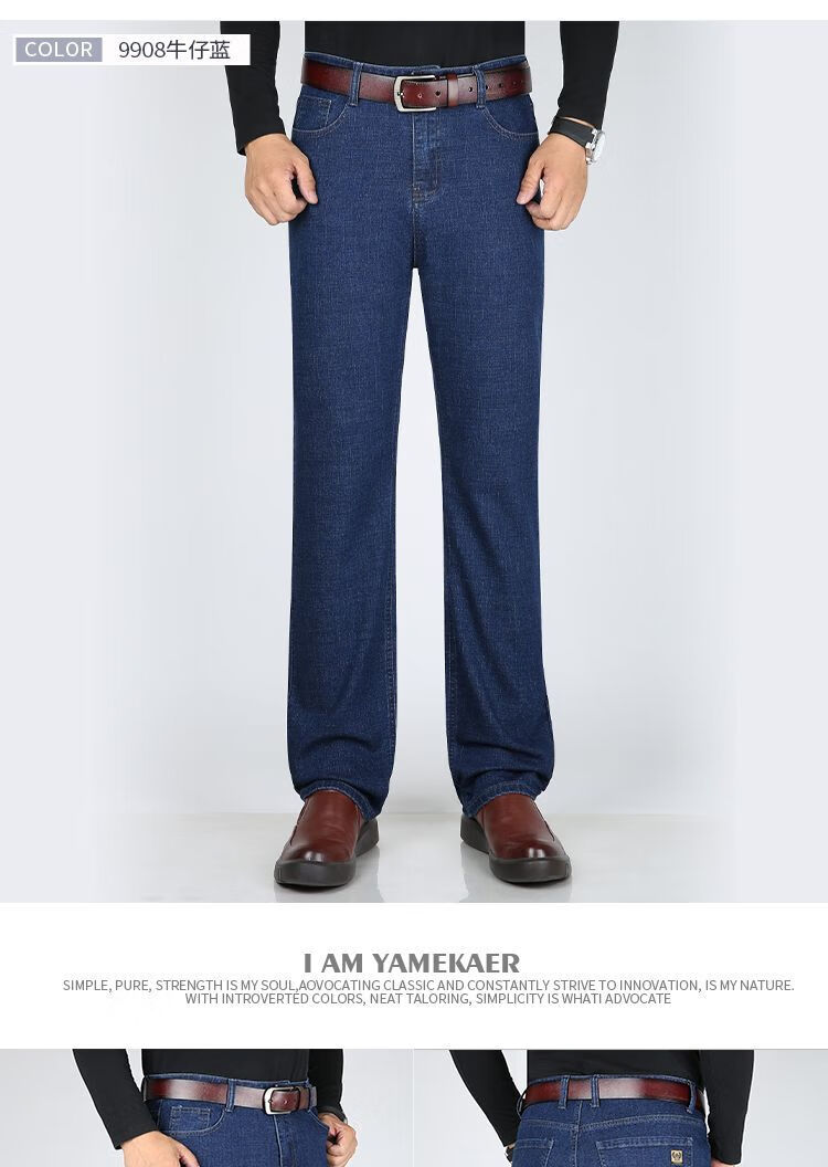 Playboy-Jeans für Herren, Frühling und Herbst, verschleißfest, dehnbar, hohe Taille, locker, vielseitig, gerade Hose für Jung und Mittelalter, Business-Freizeithose, lange Hose 9905, Business-Dunkelblau, Frühling und Herbst, kein Samt, dick 31, Taille 2 Fuß 4, 110–120 Jin Jin entspricht 0,5 kg