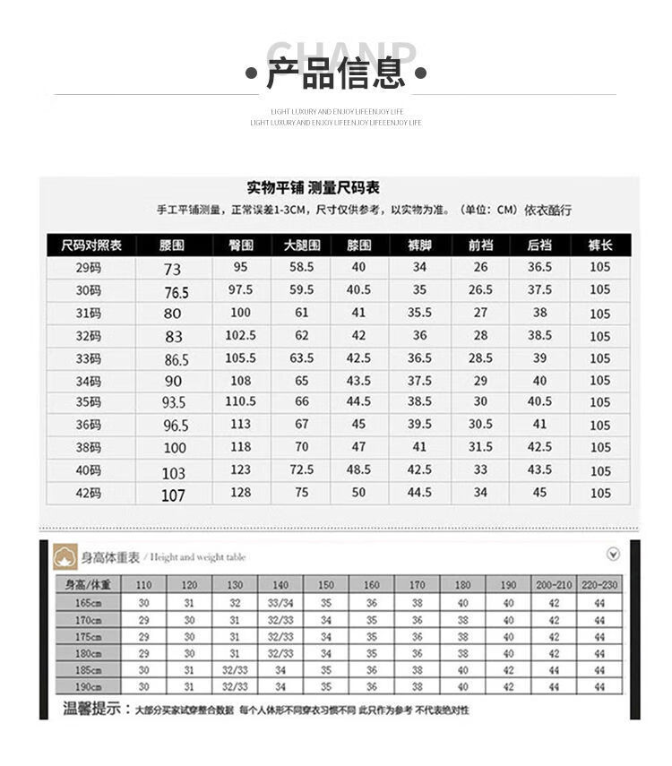 Outseam (cm) 99 cm 101.5 cm 104 cm 106.5 cm 109 cm