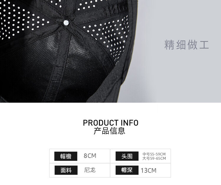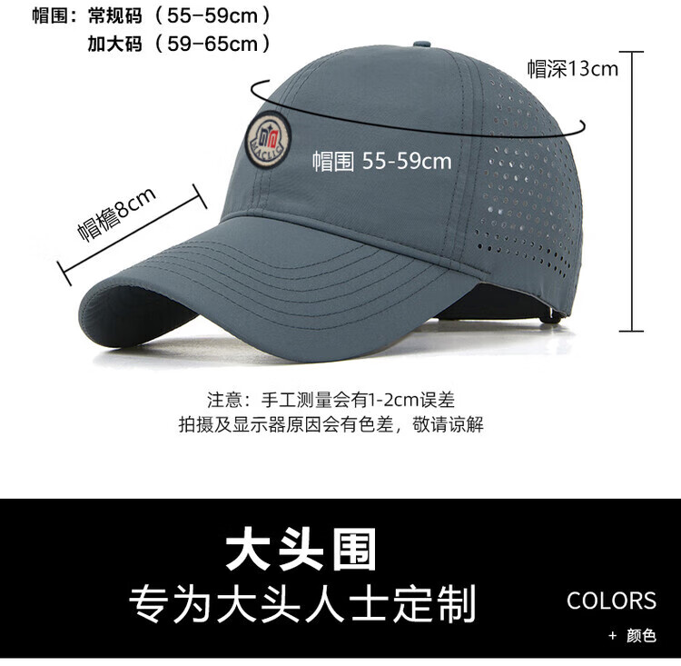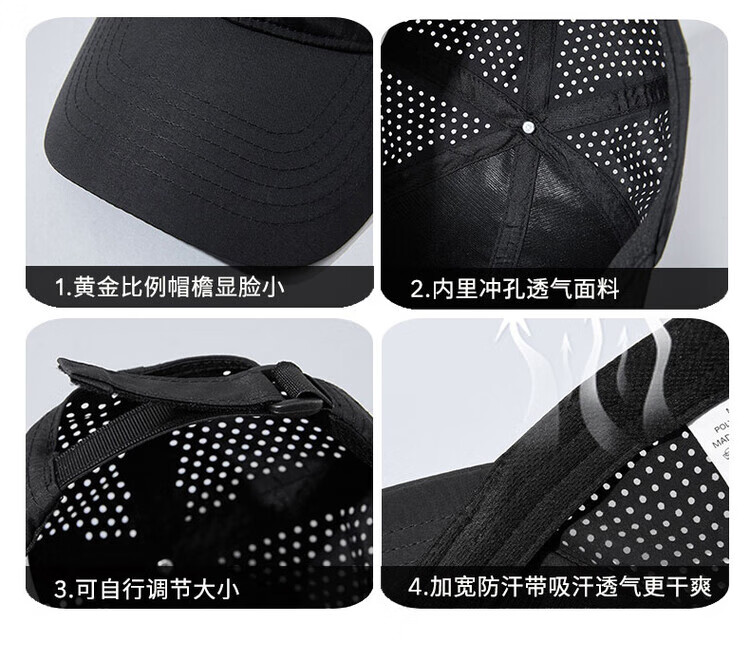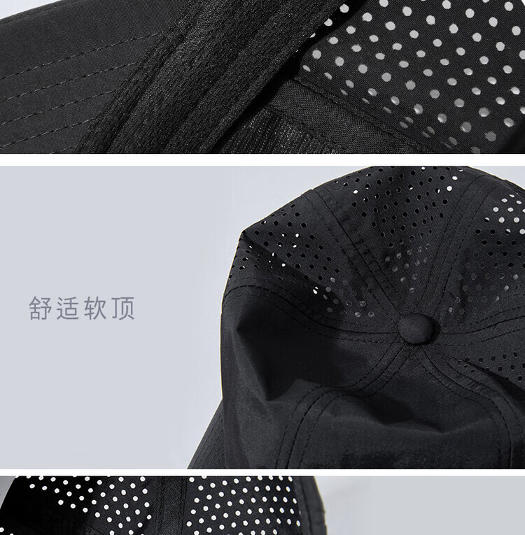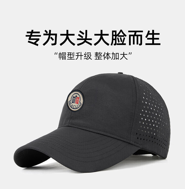 蒙口比邻大头围速干帽子男夏季薄款透气鸭舌帽男士运动棒球帽女防晒遮阳帽 黑色 均码 常规码 (55-59cm)