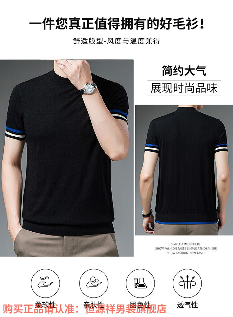 Hengyuanxiang 2025 spring men's high-end worsted 100% wool sweater knitted short-sleeved T-shirt casual loose half-sleeved bottoming shirt 9711 Army Green M 165/105