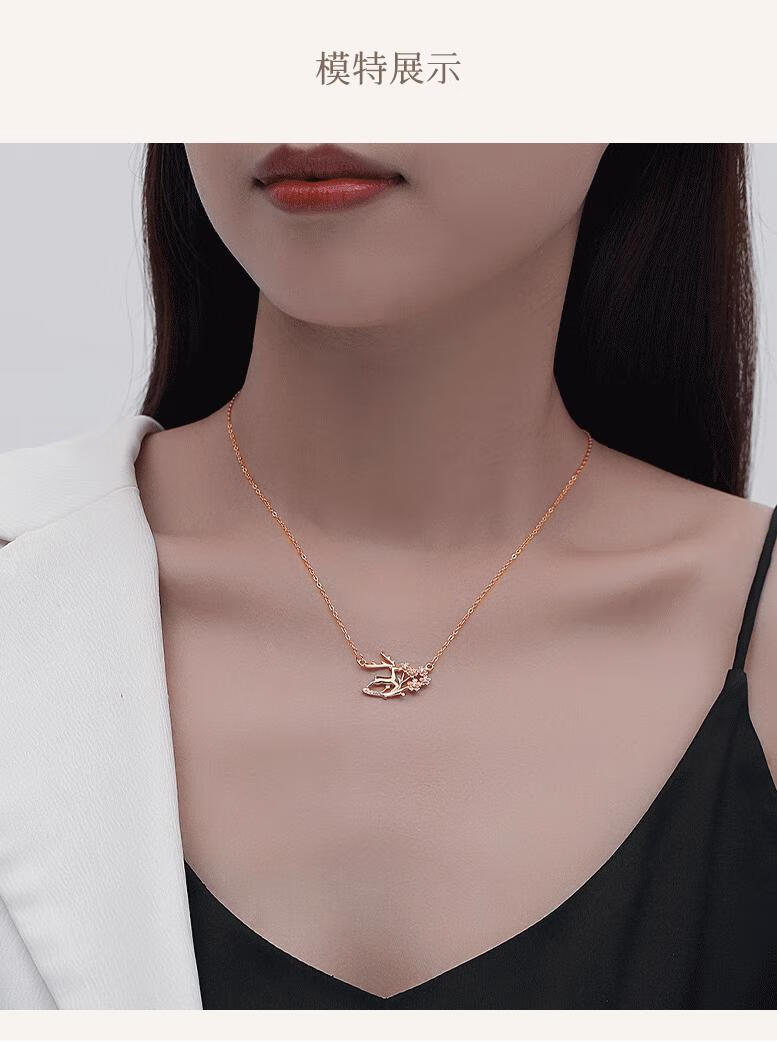 万礼福原创一鹿有你项链女纯银S925项链鹿与梅花网红森系韩版圣诞礼物 D687玫瑰金色(十字链) 925银