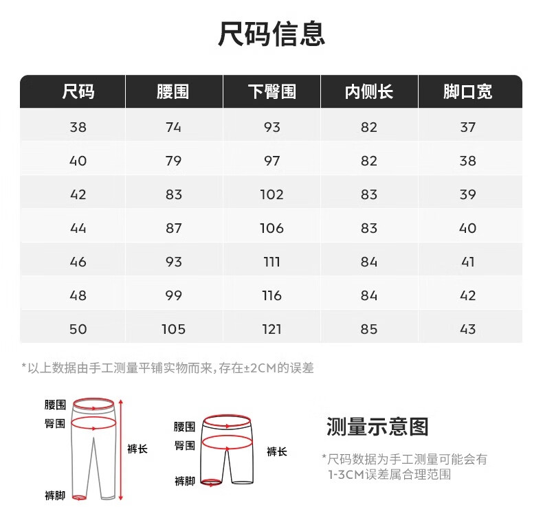Outseam (cm) 99 cm 101.5 cm 104 cm 106.5 cm 109 cm