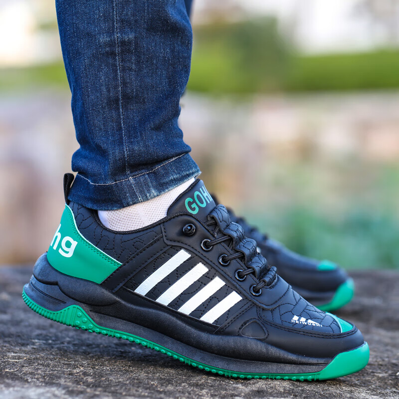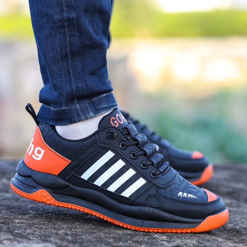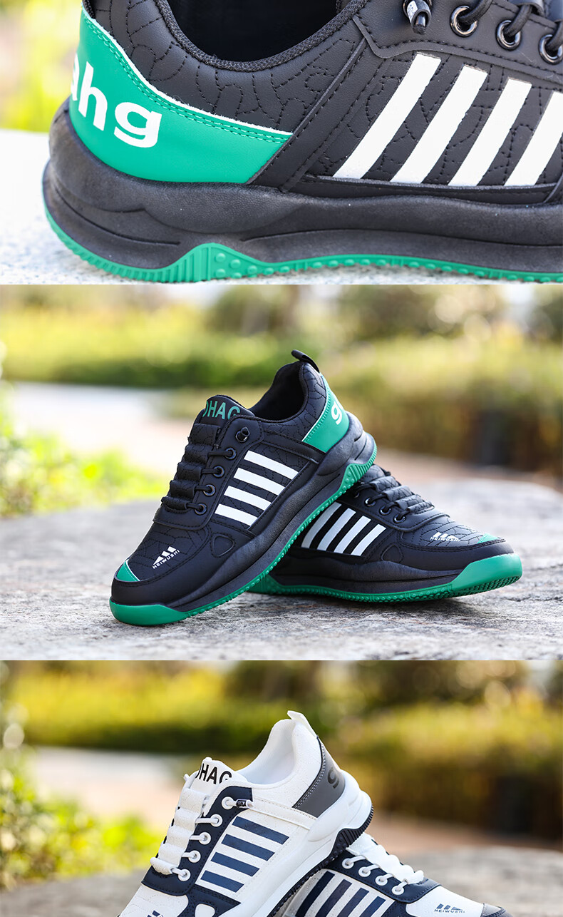 西域骆驼男鞋春季劳保鞋运动鞋男2025新款厚底休闲鞋皮面防水防滑工作鞋 AW898 墨绿 39
